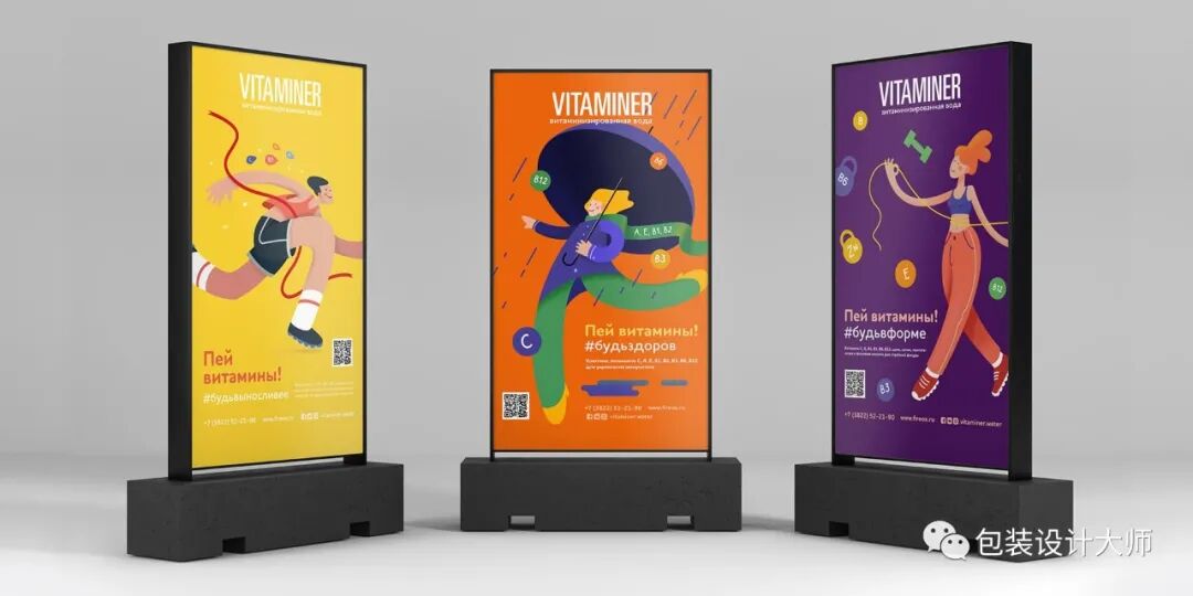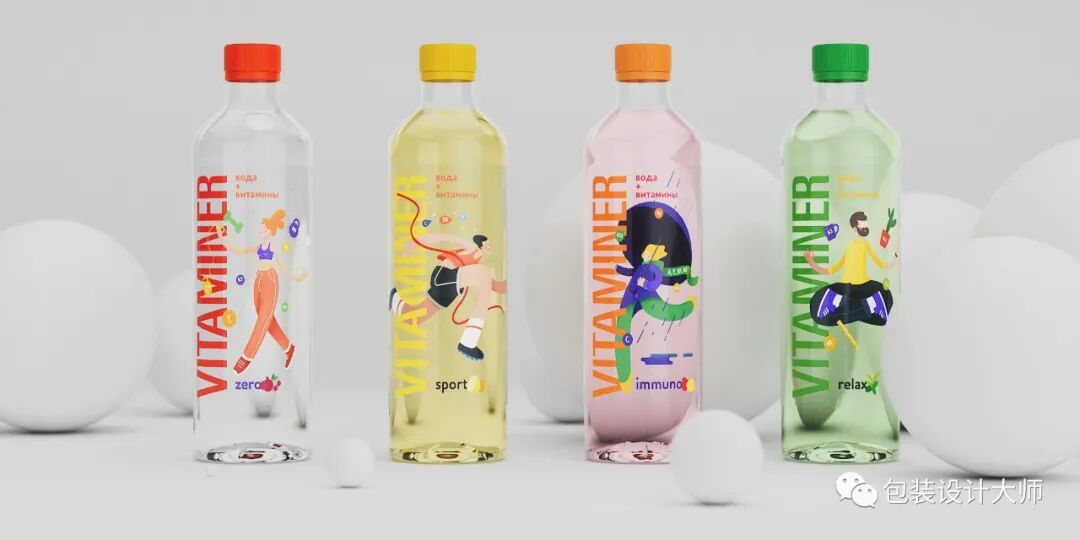 创意扁平化插画维生素运动饮料包装设计