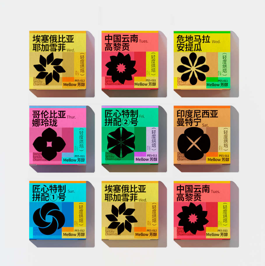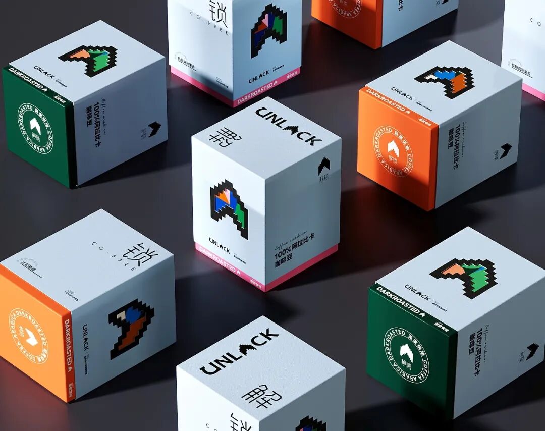 盒面以不同的色块栅格做视觉输出