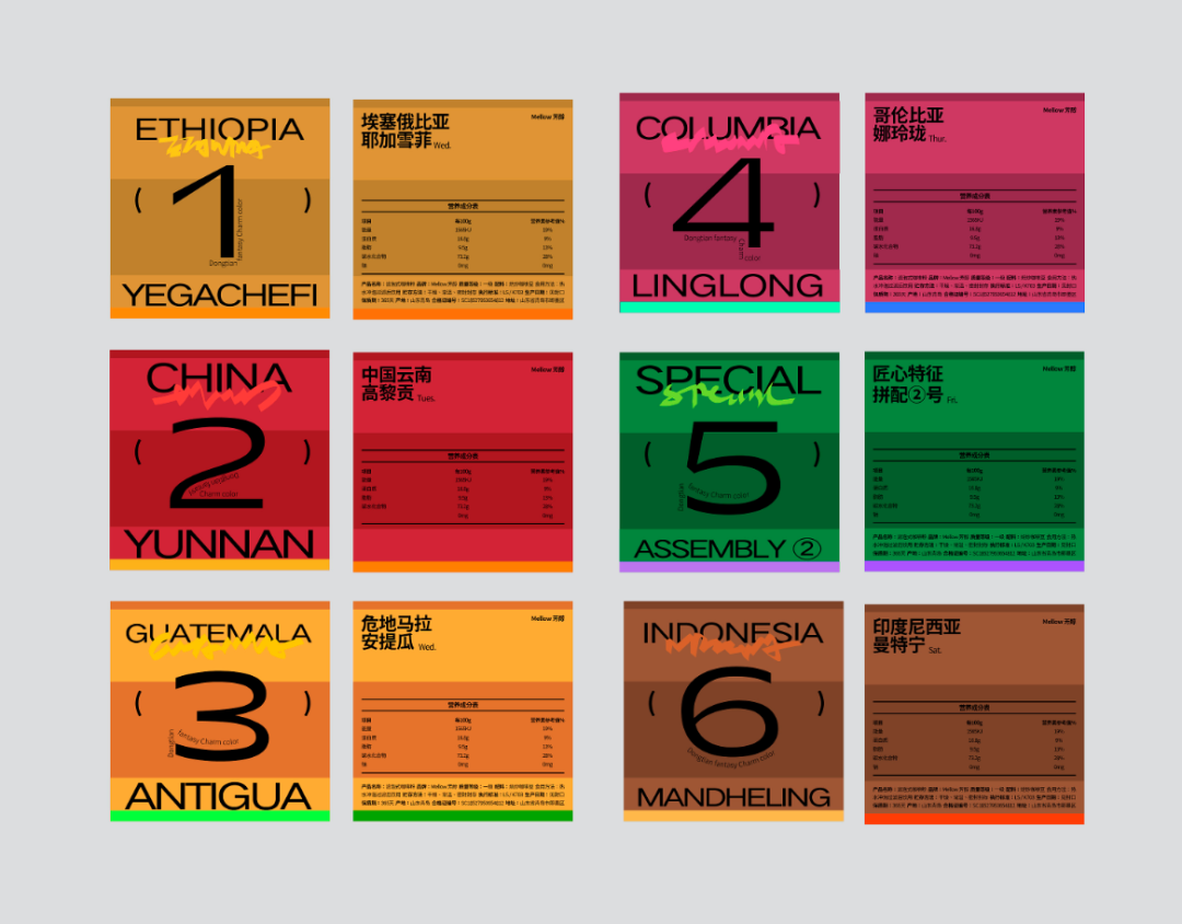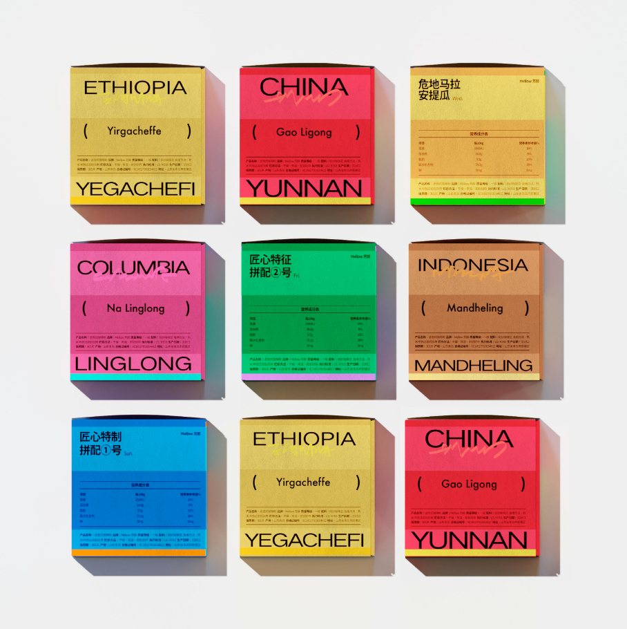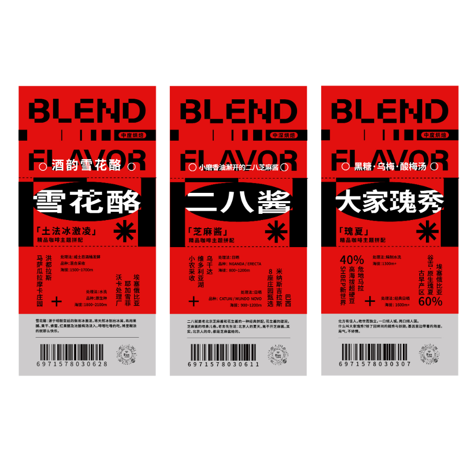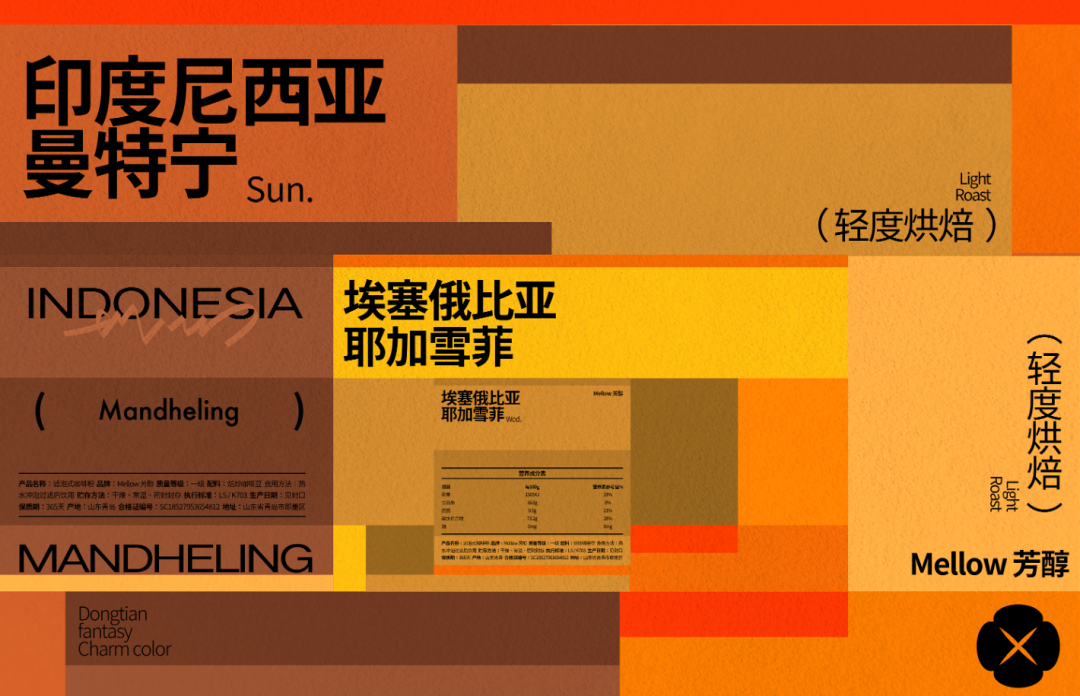 比如咖啡产地品名、烘焙程度、图形装饰等