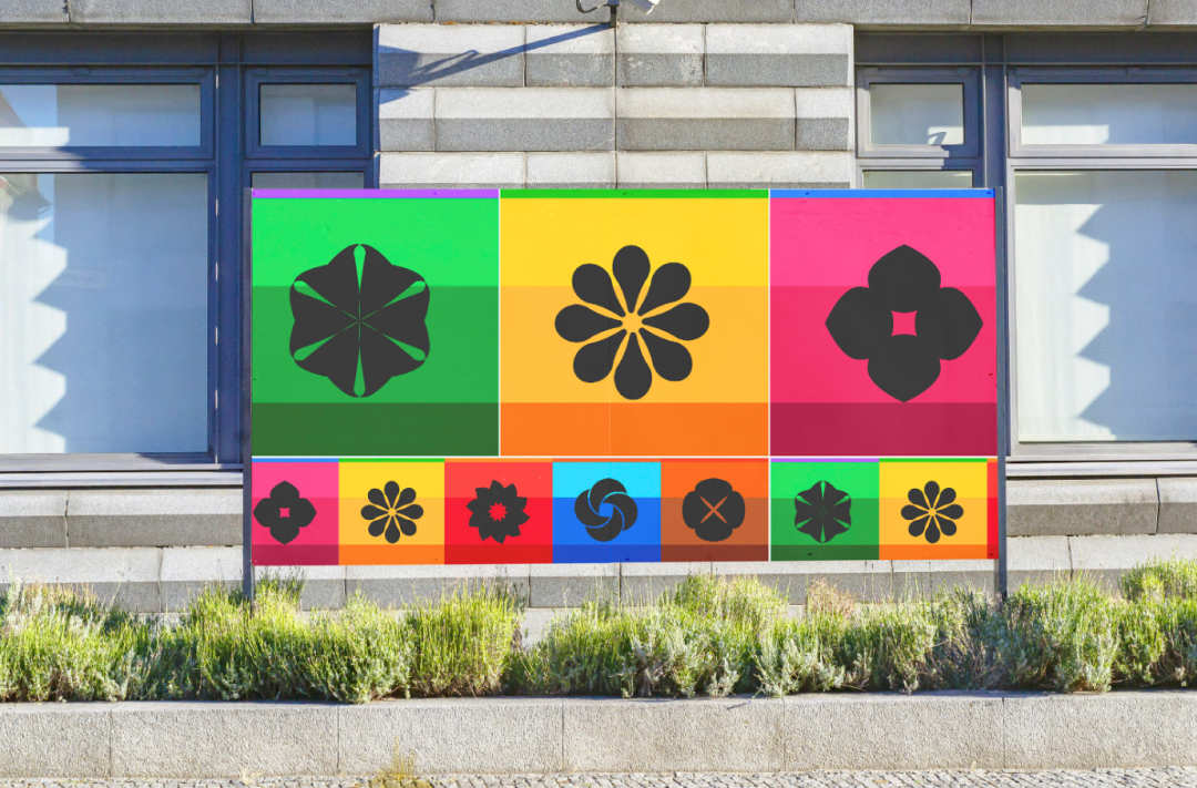 标贴以拼接色块面布局