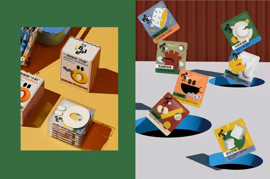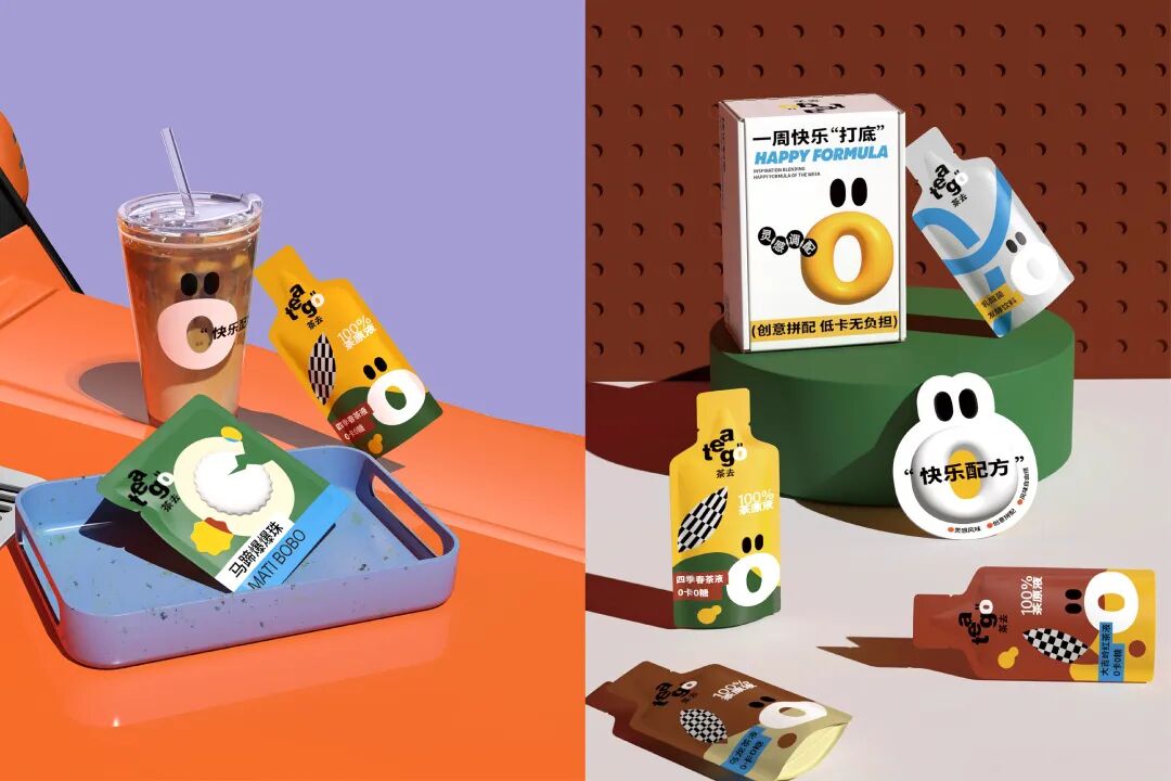 一些新式茶饮包装,通过年轻化、个性化的视觉语言打造品牌辨识度,并基于强包容性以及创意延展实现与消费者独有的趣味交互,加深用户对品牌的印象,建立好感与忠诚度