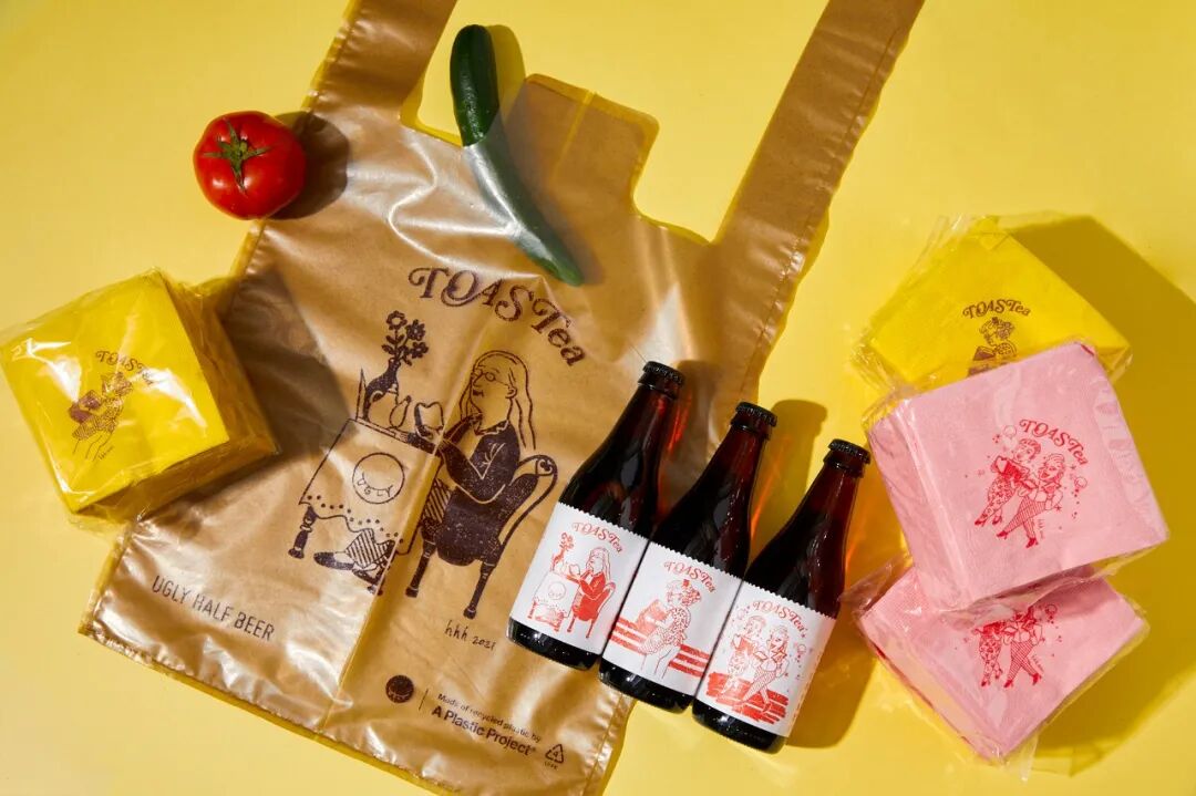 TOASTea is the brand's response and action to the problem of local food waste in everyday life in Taiwan. The material of the bottle, too, is made 100% from recycled plastic bags and recycled grain waste used to brew this beer.