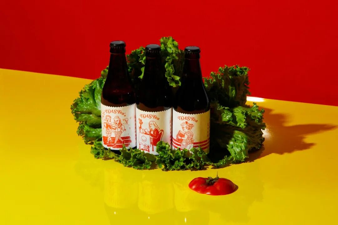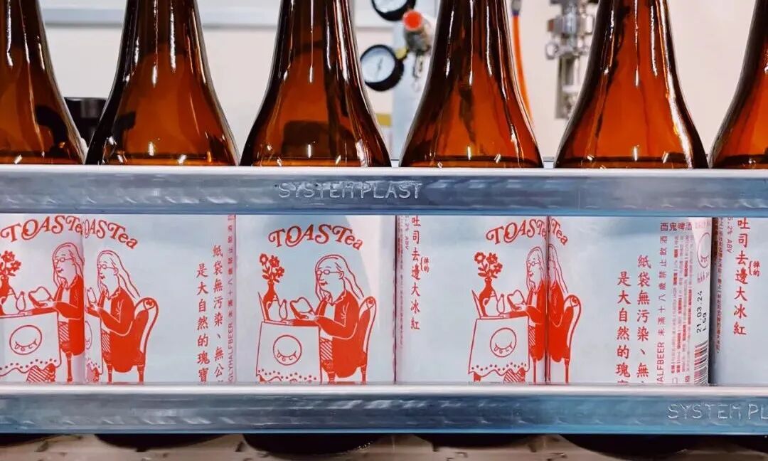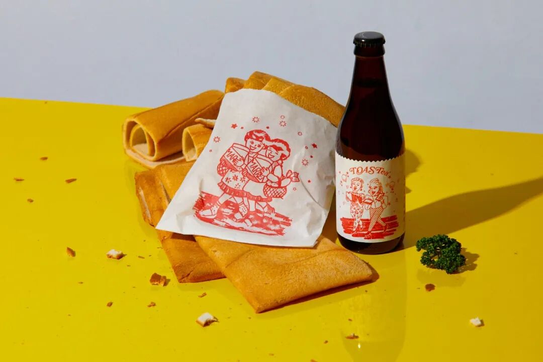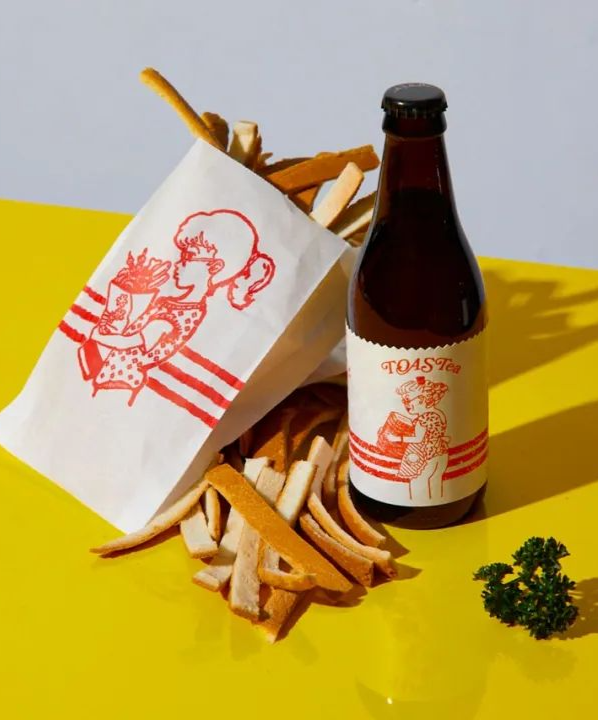 TOASTea 是品牌对台湾日常生活中当地食物浪费问题的一种回应和行动。瓶子的材料,也是 100% 由回收塑料袋和酿造这种啤酒的回收谷物废料制成。
