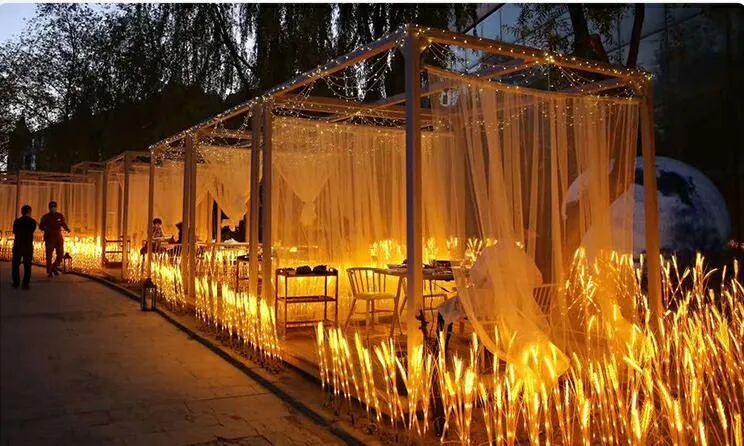麦穗造型的装饰灯在近些年特别流行,麦穗灯不仅是麦穗造型,还包含了气泡、圆柱、小灯泡灯造型,因为成片出现,如丛丛麦穗,故名“麦穗灯”。成片出现的麦穗灯适宜大多数场合,不管城市商业还是乡村旅游项目,都能营造浪漫的景观氛围。