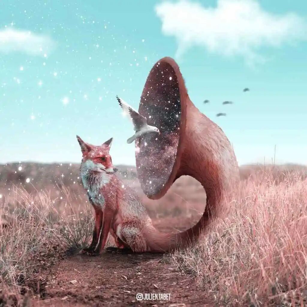 创意是这位数字艺术家最大特点,他也深知创意的重要性,在这位数字艺术家的个人主页上就写着这样一句话:Creative until I die. Or til you die.创意至死,直到死去。由此可见他对创意的热衷,从他的数字作品中也可以看出来,一张普通的照片,经过快速处理后,再添加上动物的形象,经过数字变形和创意加工后,一幅有趣的创意数字作品就完成了,整个过程就像是一场魔术表演。
