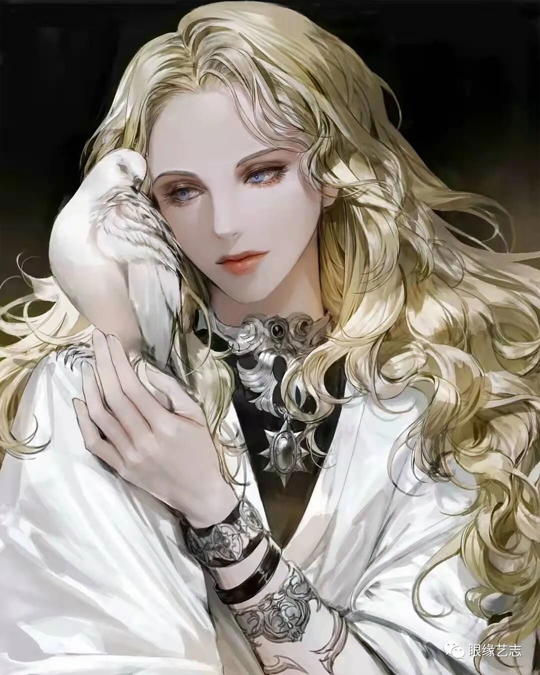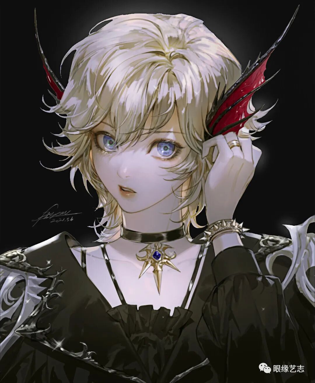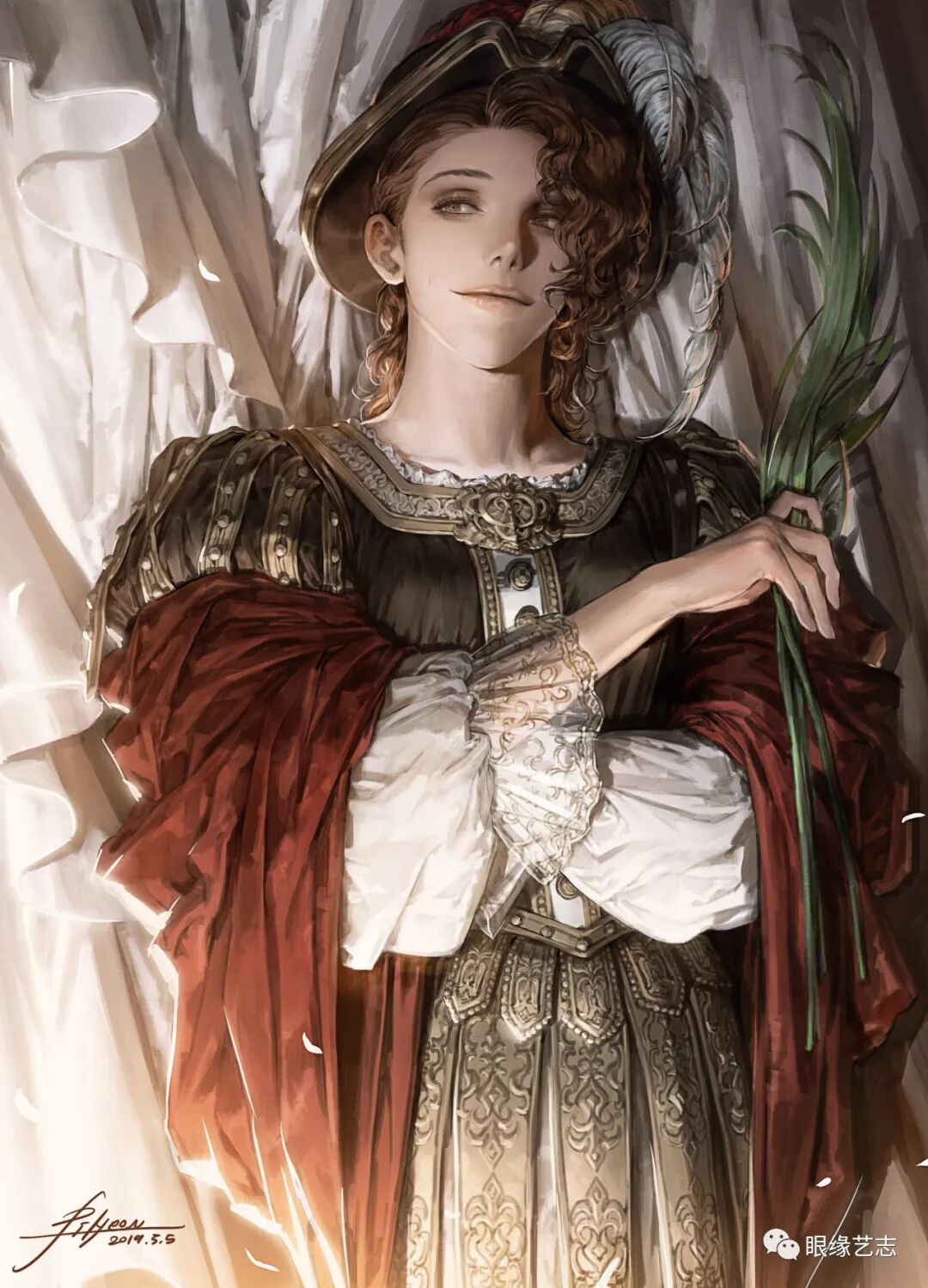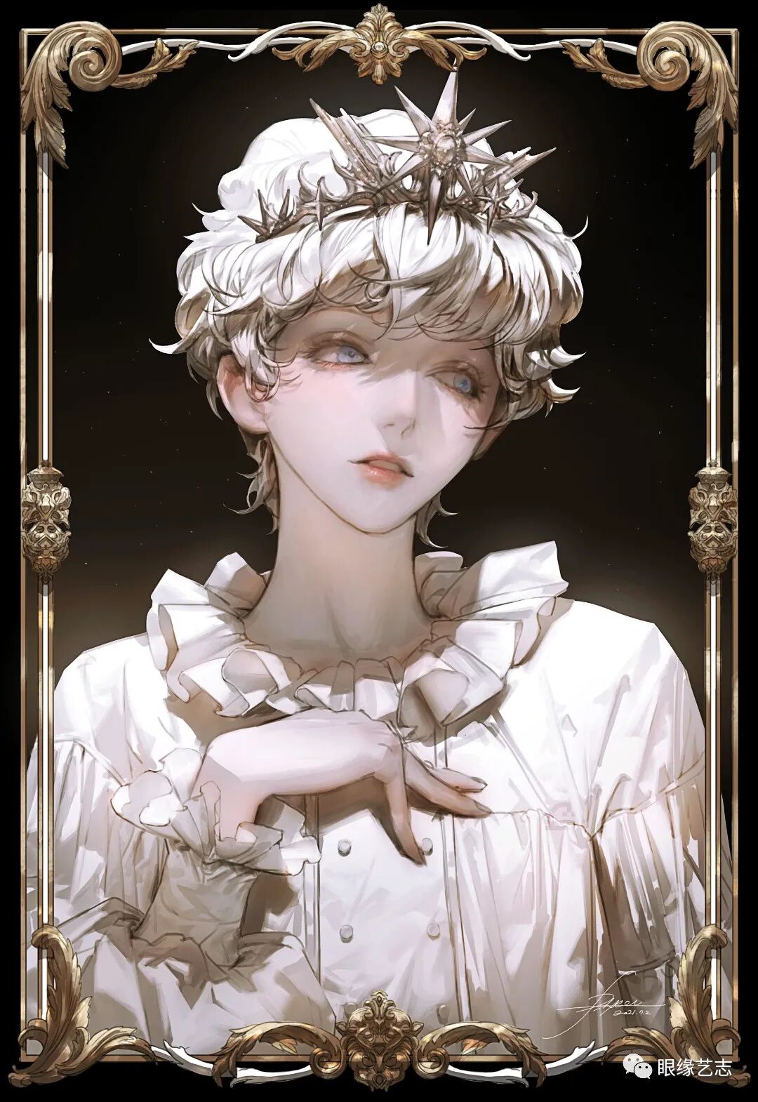 大学毕业后,Pilyeon如愿地成为了一名全职原画师,并于2021年在韩国首尔举办了自己的首次个展。他画中的人物冷艳而高贵,俊俏秀美的眉眼搭配灵动尖翘的嘴角,散发着神秘邪魅的魔幻气质。他常采用厚涂的方式上色,用色时而清新跳脱,时而厚重沉郁。蓬松的小卷发、古典的欧式宫廷服饰、自带情绪的动作与神情是他作品独特的魅力所在。画面虽称不上斑斓,但十足的贵族气息却赋予了作品奢华的质感。