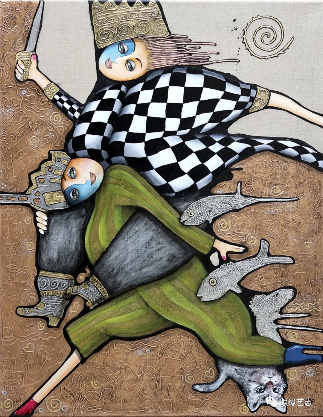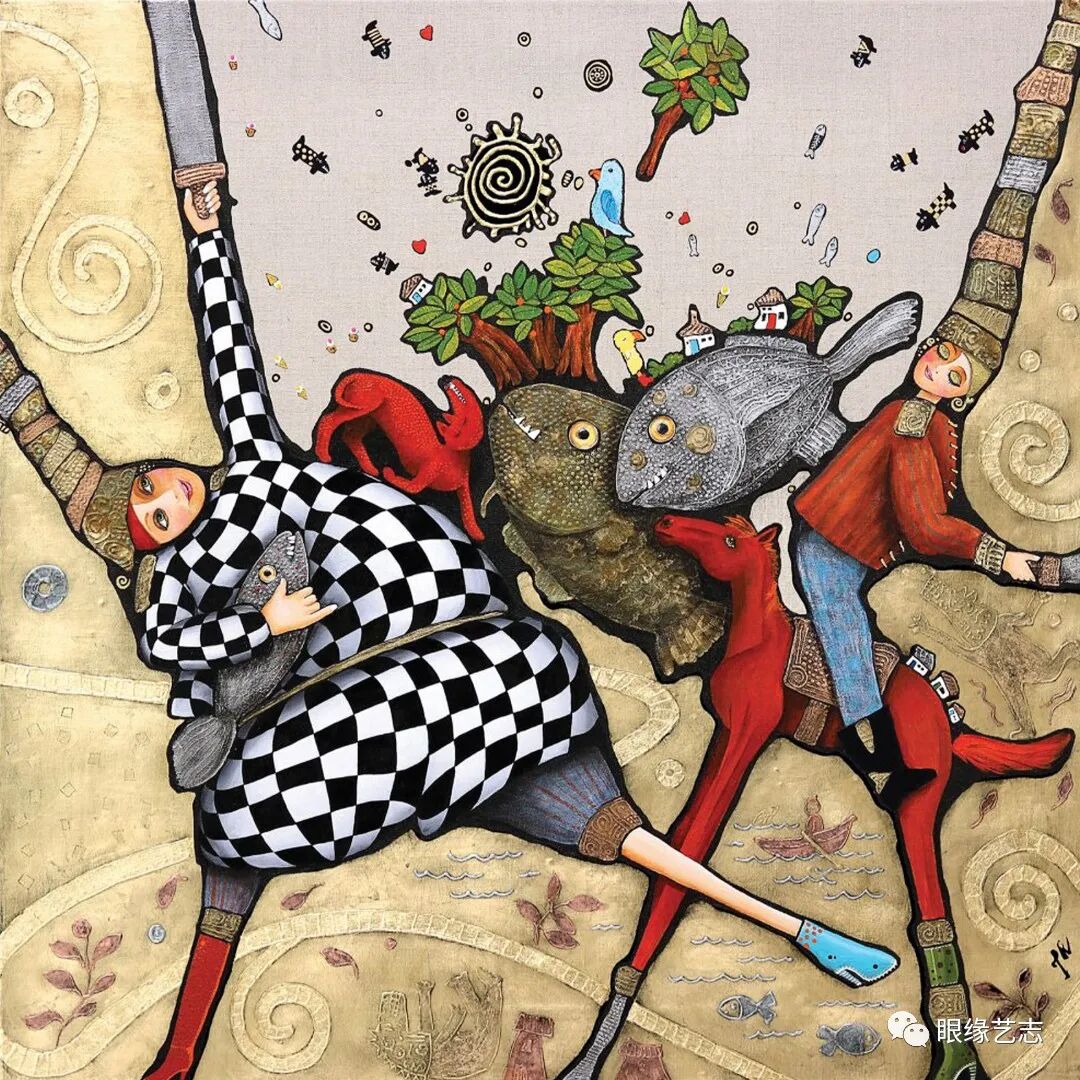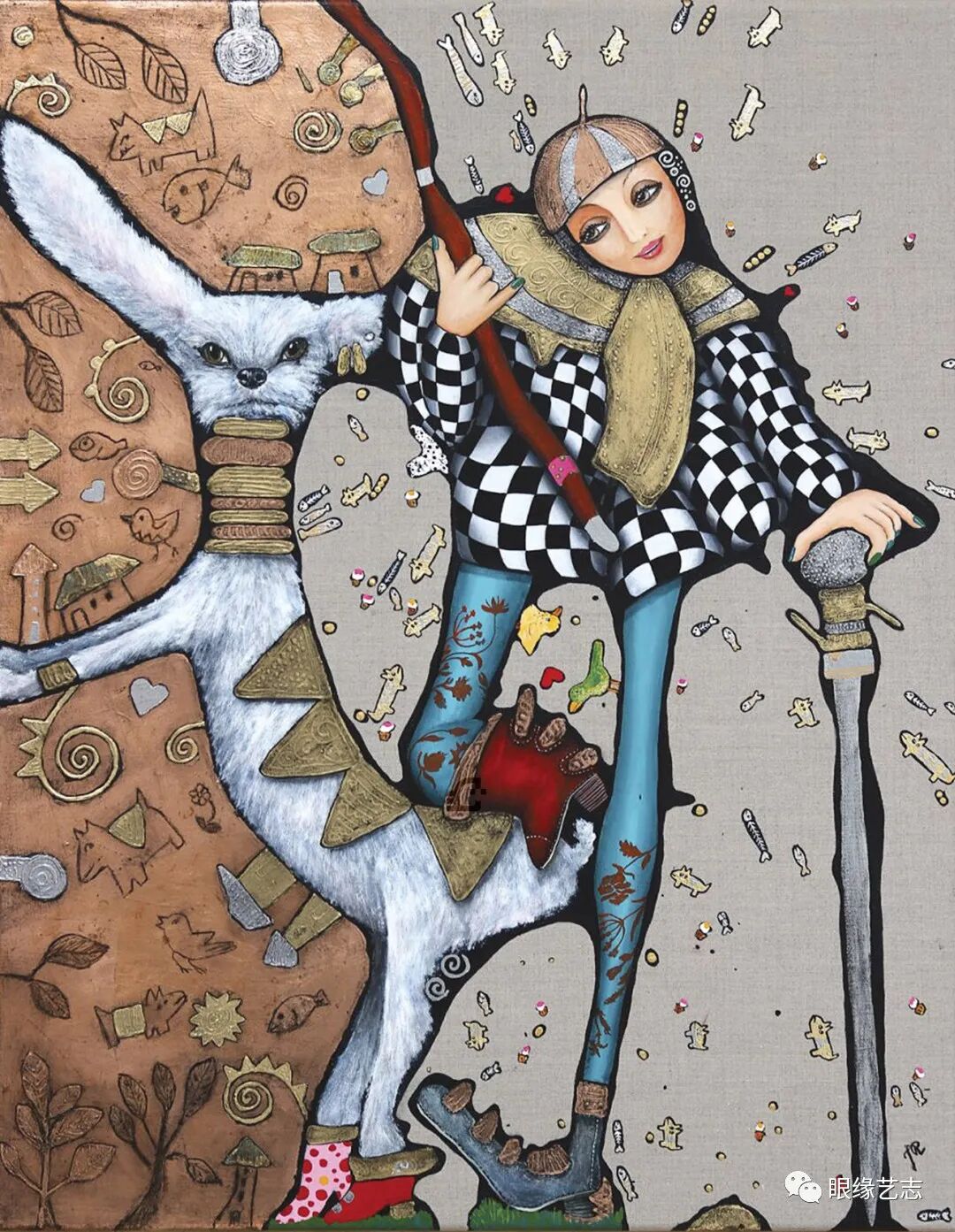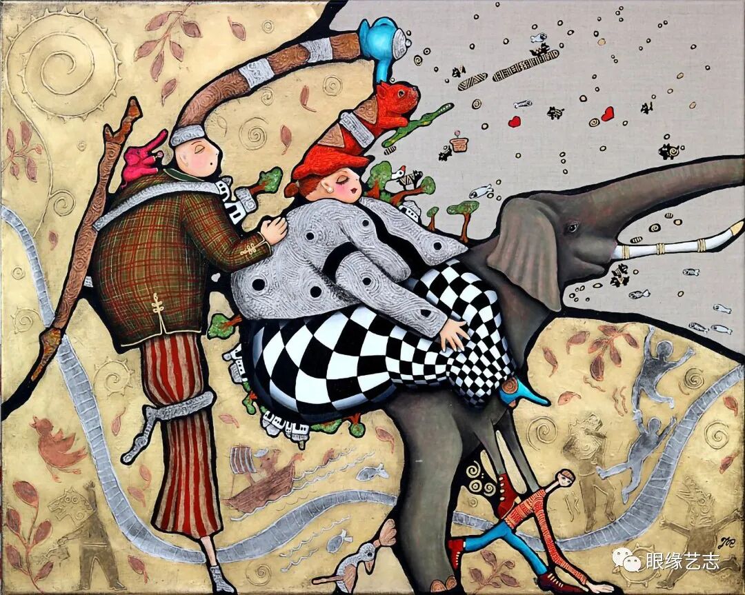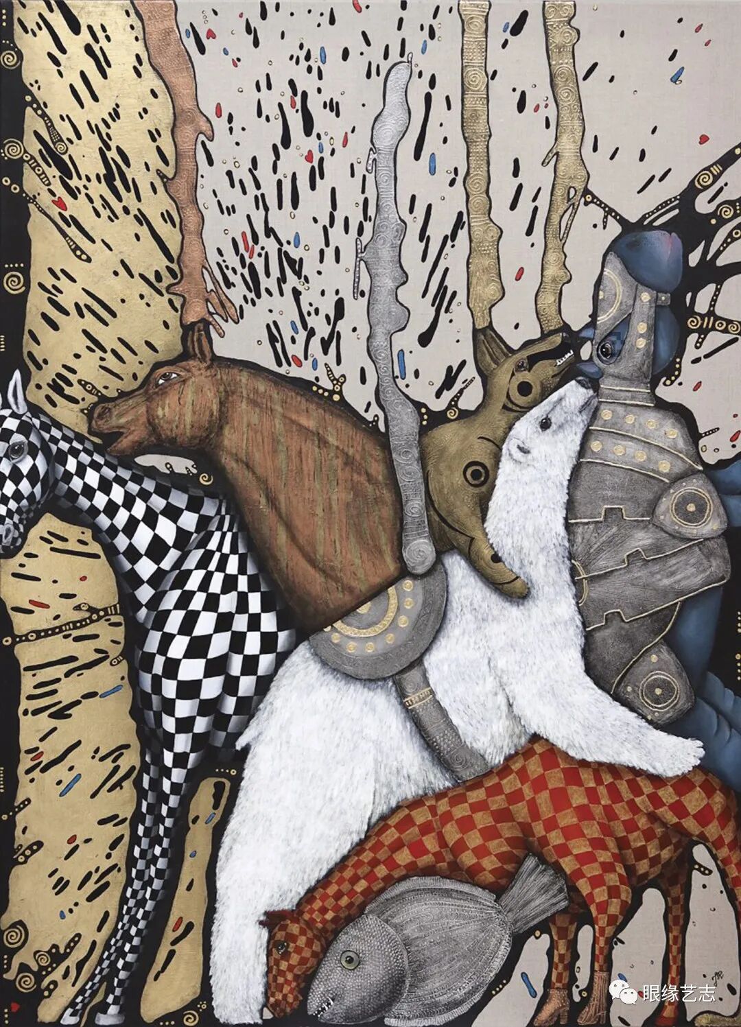 在柔软且富有生机的油彩中,出现了不完美的人类与动物,就像我们这个不完美的世界一样。所以,我的作品如同在混乱中构筑秩序,进而创造一种欢乐与惊奇的感觉,并最终在你的脑海中形成一个可爱的故事。