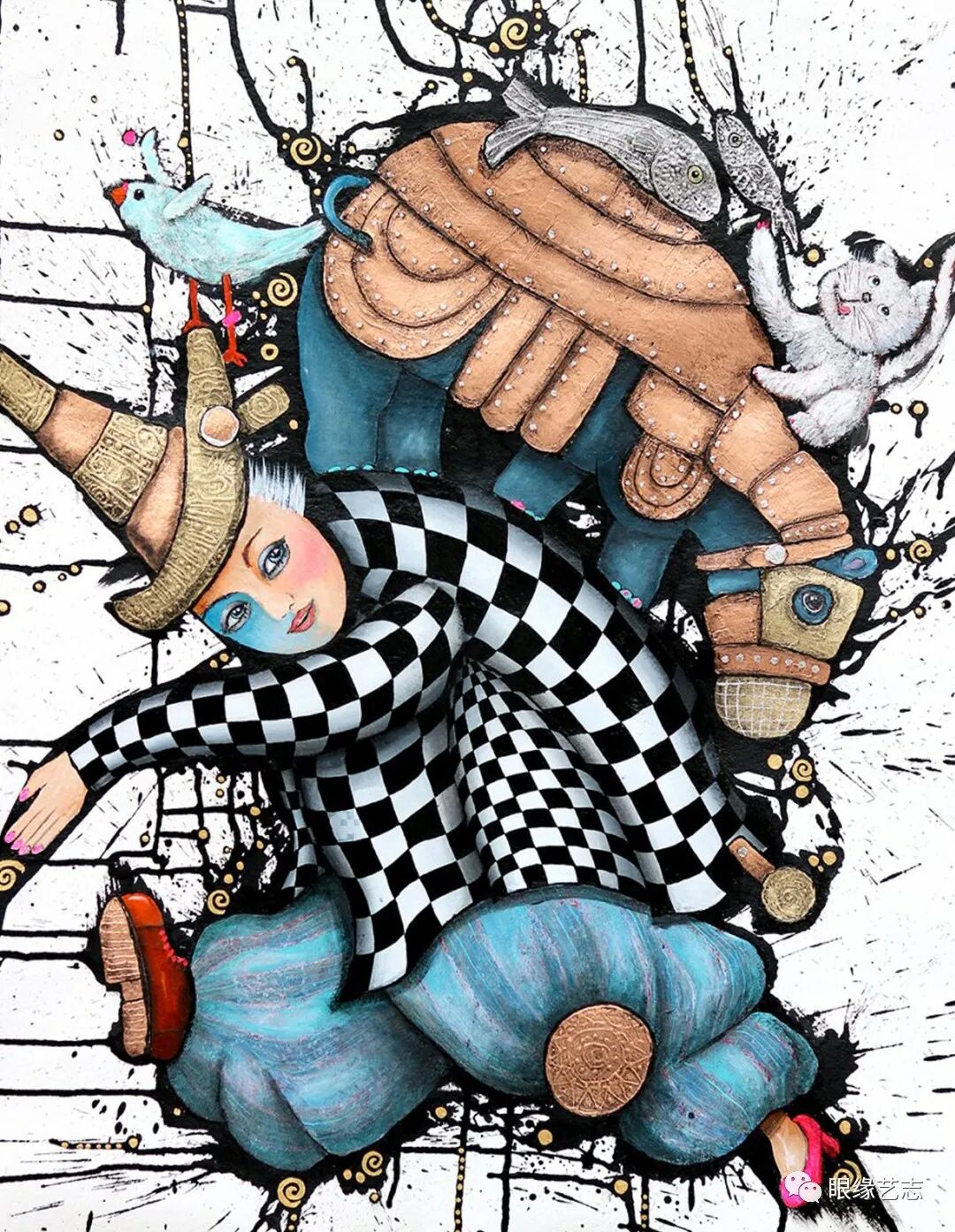 当你开始思考并怀疑眼前这幅画为什么会是这样的时候,你的想象力已经开始为你创建故事了。而当你注目已久然后开始微笑的时候,我会知道,用我的创作来传递微笑是一件无比正确的事情。