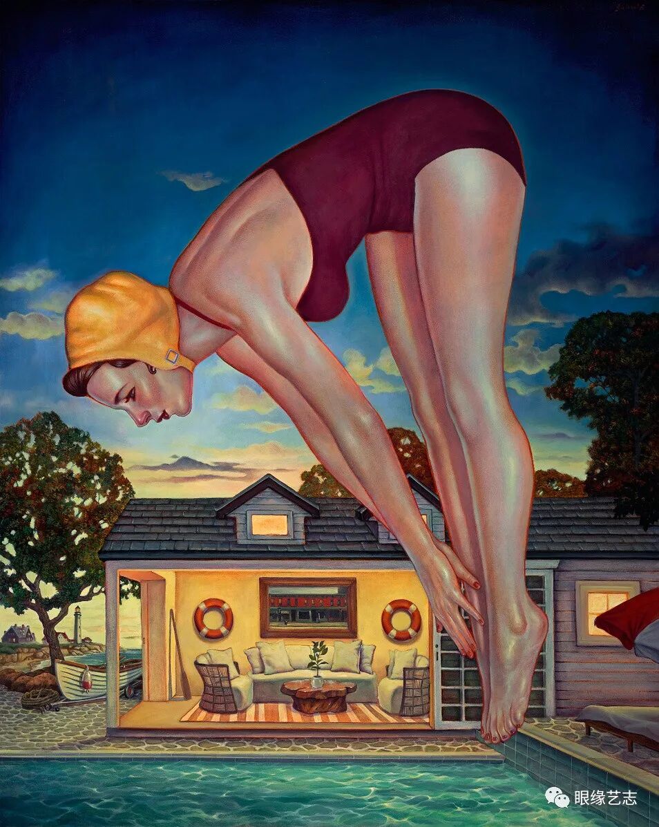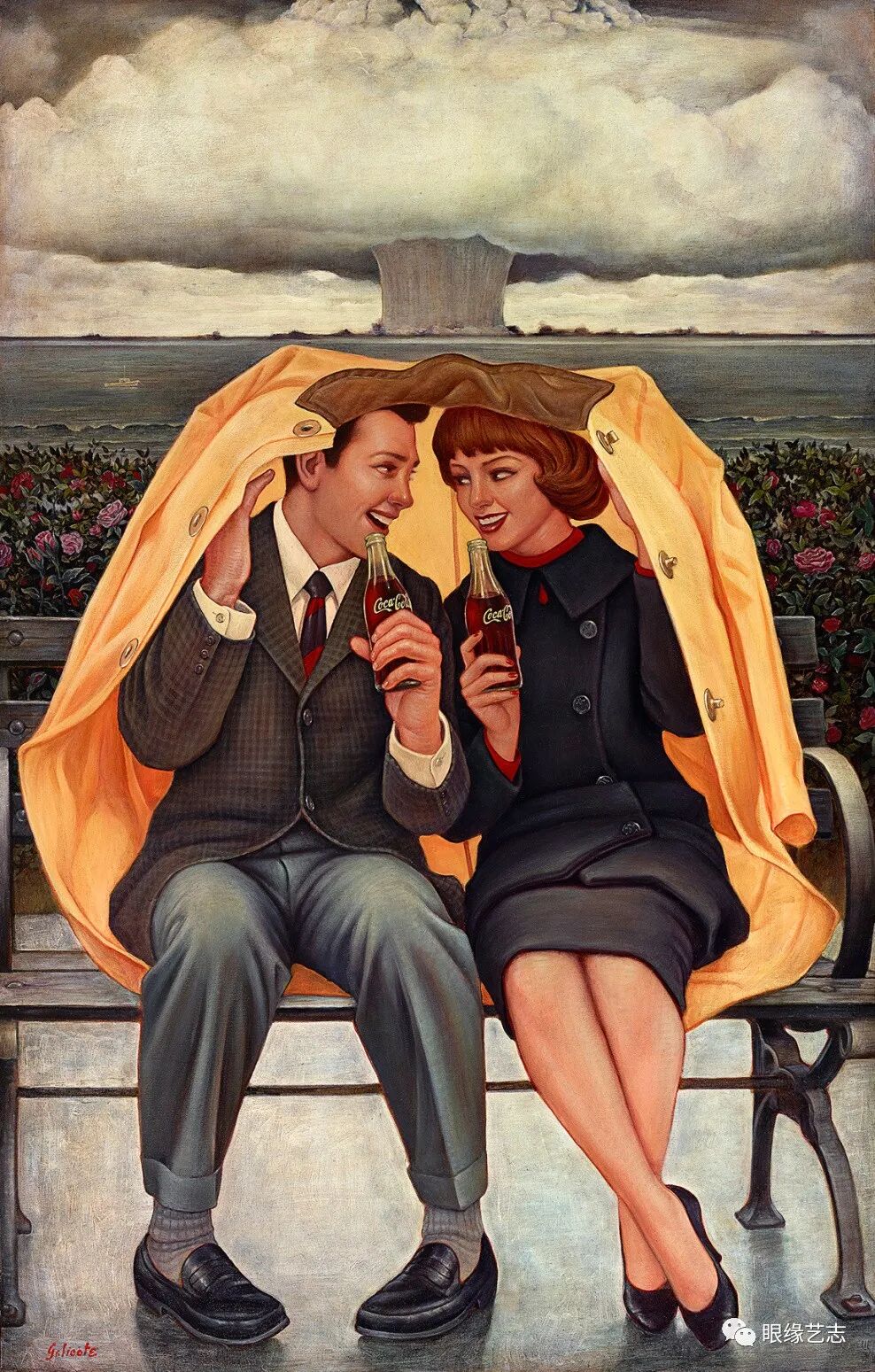 将战后美国意象中的流行元素与超现实主义气息并置,丹尼·加里奥特在他的画作中以一种柔和、微妙甚至有些不合时宜和黑色幽默调和了上世纪中叶的复古氛围,并以“新地域流行主义”的名义为那个时代的“美国梦”留下了戏剧性十足的标注,简单而又绚烂、奇特而又甜美。