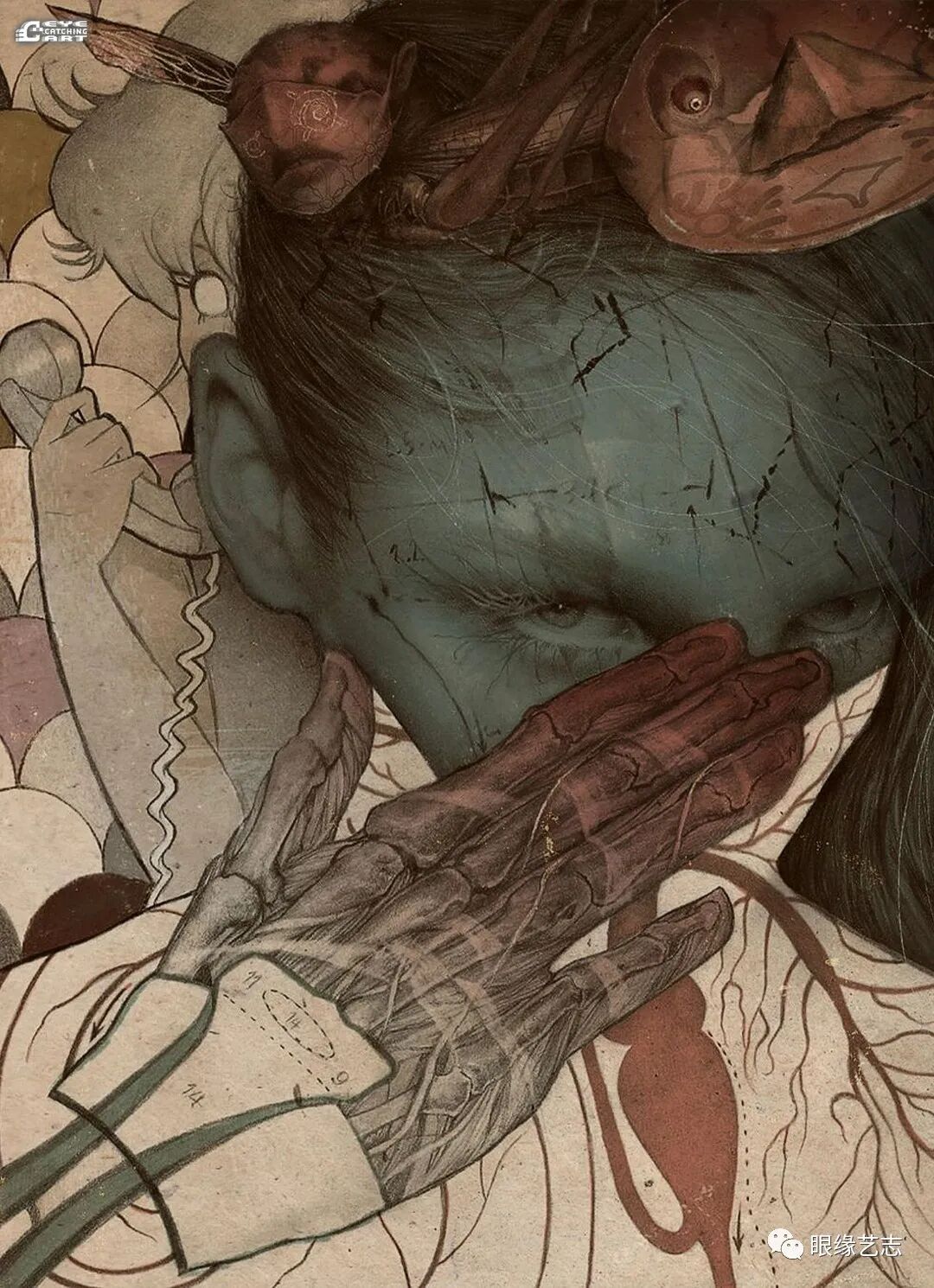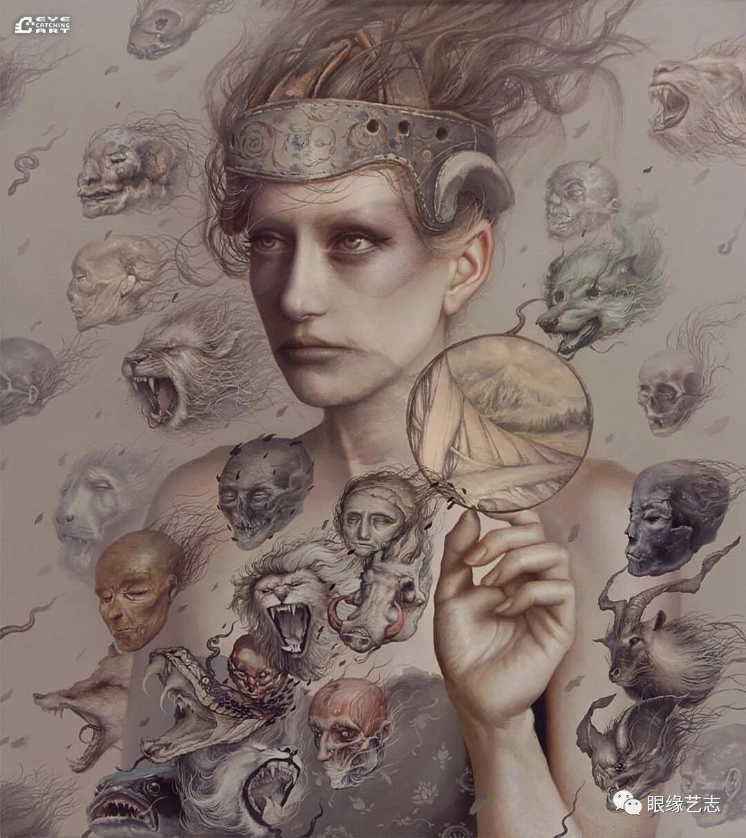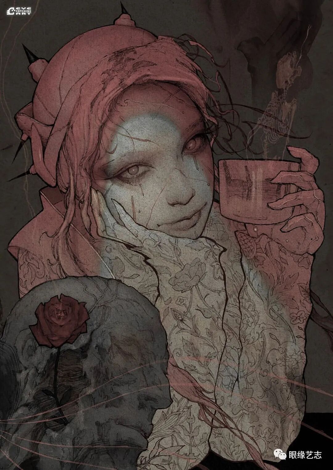 在我的视野里,我看到的是某种灵魂,这不一定是普遍意义上的灵魂,而更多的是对人物与角色本质的看法。很多时候,她们是缪斯、女神,或者一种被创造出来的意念机体,而我的画即是献给她们的一首怪异却和谐的摇篮曲。