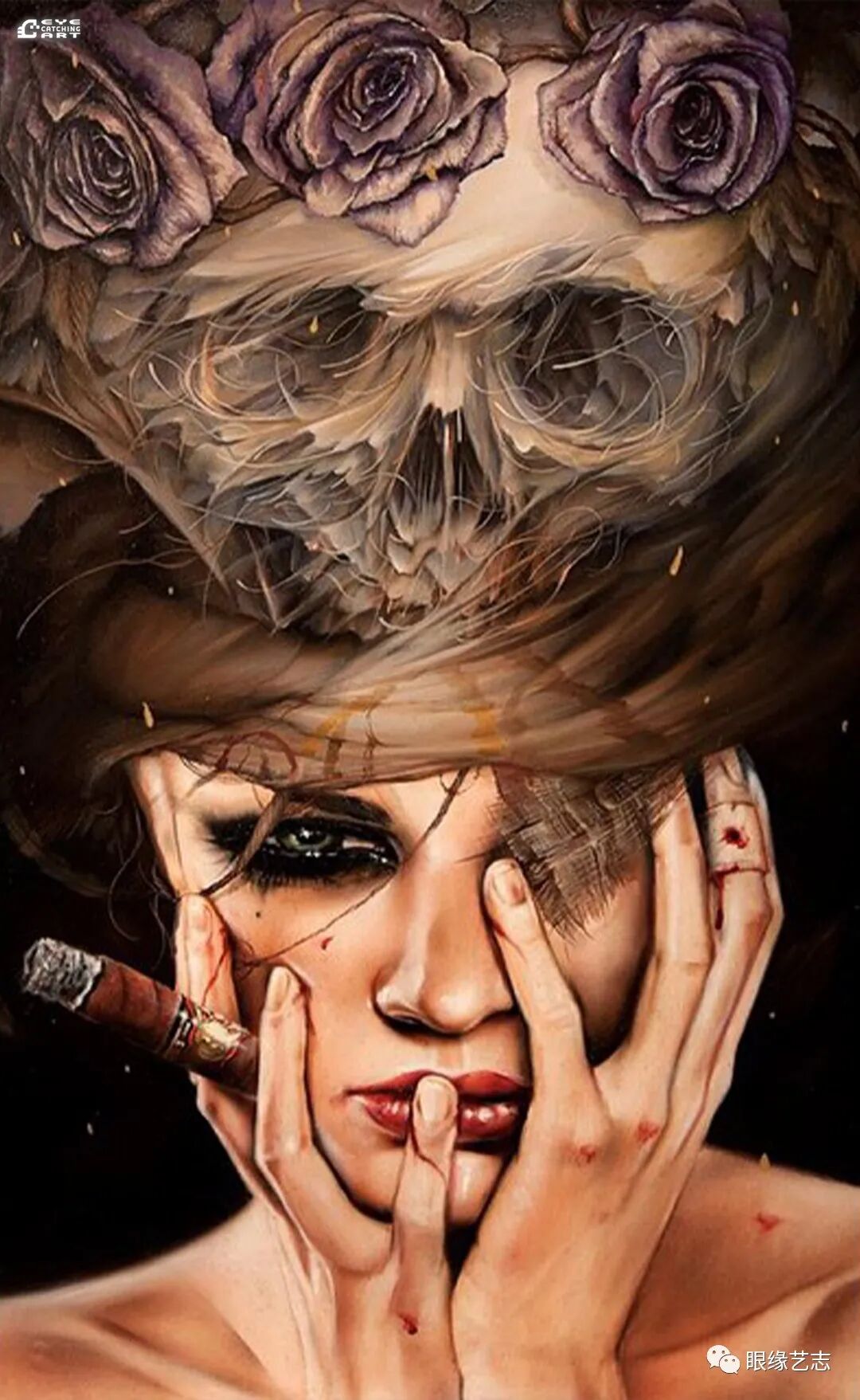 在被阴郁底色反弹的回声中,丹·金塔纳的肖像作品深入探讨了生命力量与死亡现实之间的平衡。如果你可以与她们深邃而炙烈的眼神对峙,便可以在浪漫与惊悚之间完成一次次情感充沛的游弋。