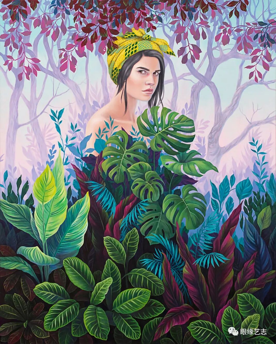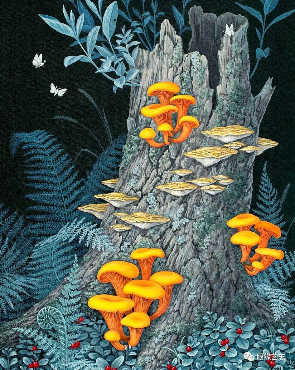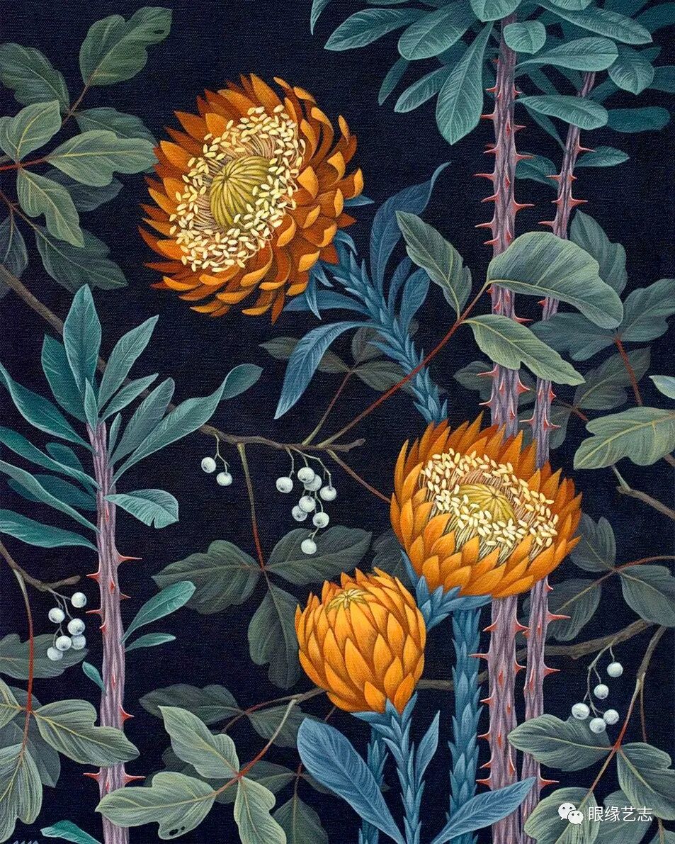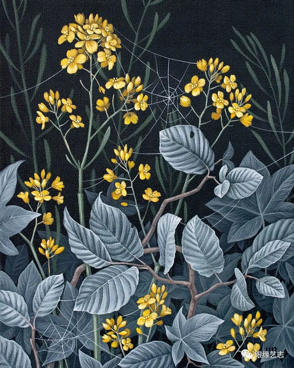 瓦西里萨以女性的视角观察世界,自然主义与超现实主义的结合,不仅解构了她对于自然的认知,也成就了其独特的绘画风格。当画面放大,那些精致雕琢的细节又成为连接现实与超现实的绝佳据点,让本就空灵的思维在色彩的碰撞中寻求到方向的指引,又在细密的笔触中觅得了归宿般的抚慰。