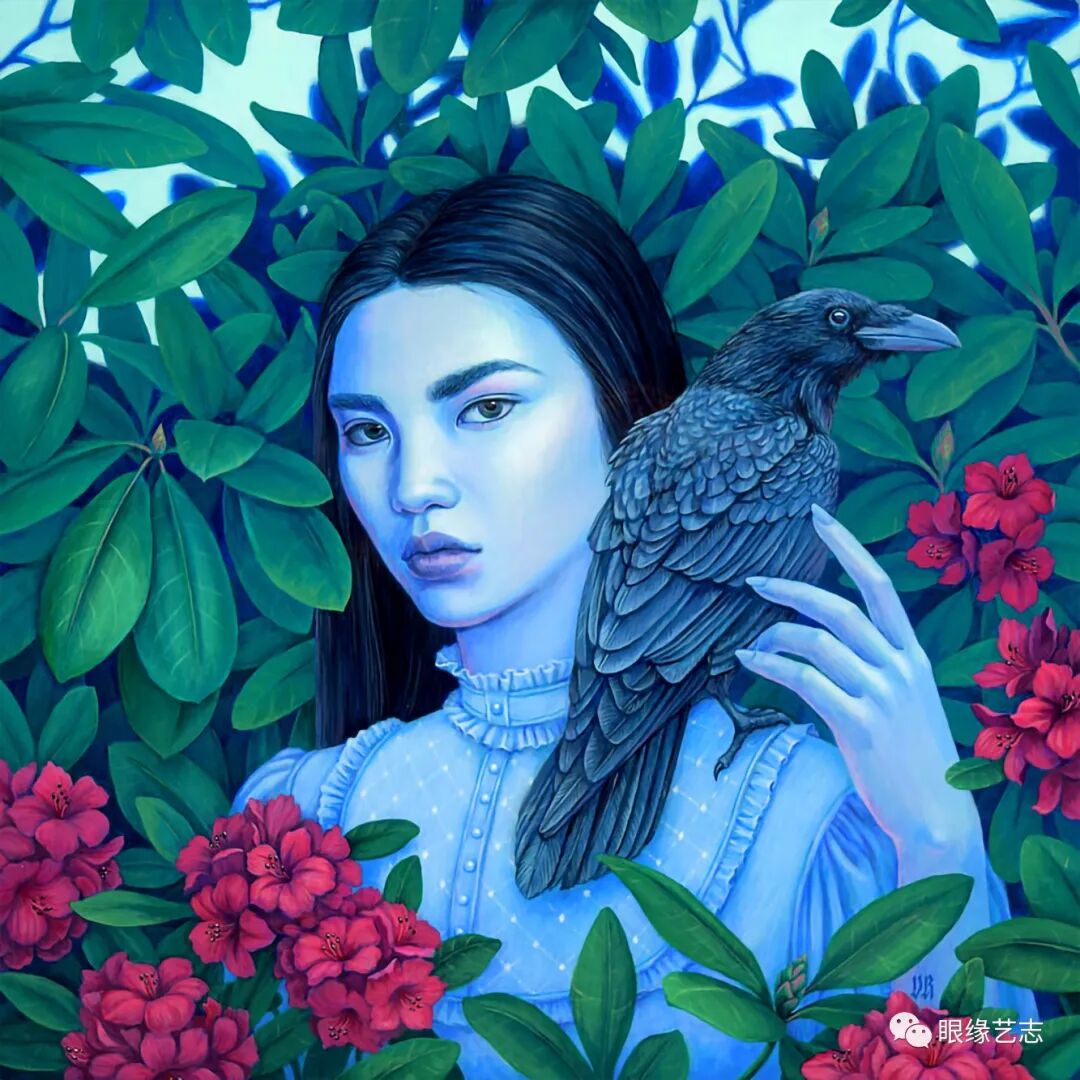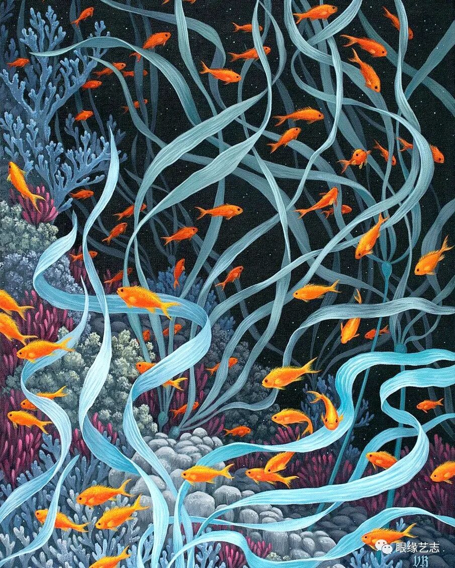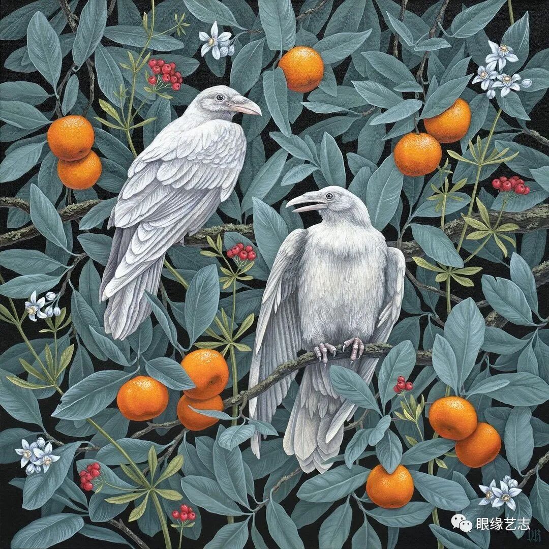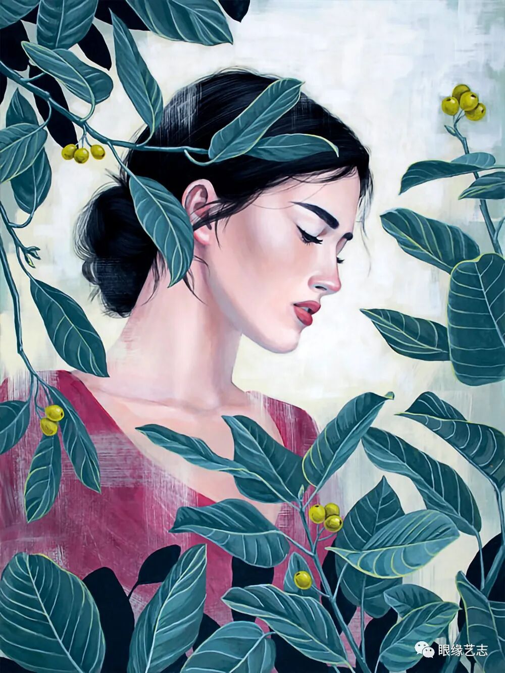 瓦西里萨以女性的视角观察世界,自然主义与超现实主义的结合,不仅解构了她对于自然的认知,也成就了其独特的绘画风格。当画面放大,那些精致雕琢的细节又成为连接现实与超现实的绝佳据点,让本就空灵的思维在色彩的碰撞中寻求到方向的指引,又在细密的笔触中觅得了归宿般的抚慰。