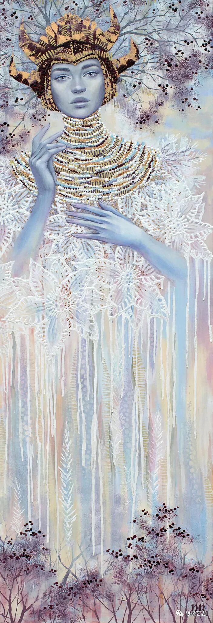 将自然主义和自己的魔幻信仰相结合,瓦西里萨形成了兼具装饰效果与时尚风格的复合媒介作品。其创作兴趣主要围绕自然万物及女性形象而展开,一幅幅色彩对比强烈极的画作似是一个个未经展开却又扣人心弦的传说,在唤起人们对故事情节百般向往的同时,也展现着瓦西里萨对于魔幻现实主义美学的独到阐述。