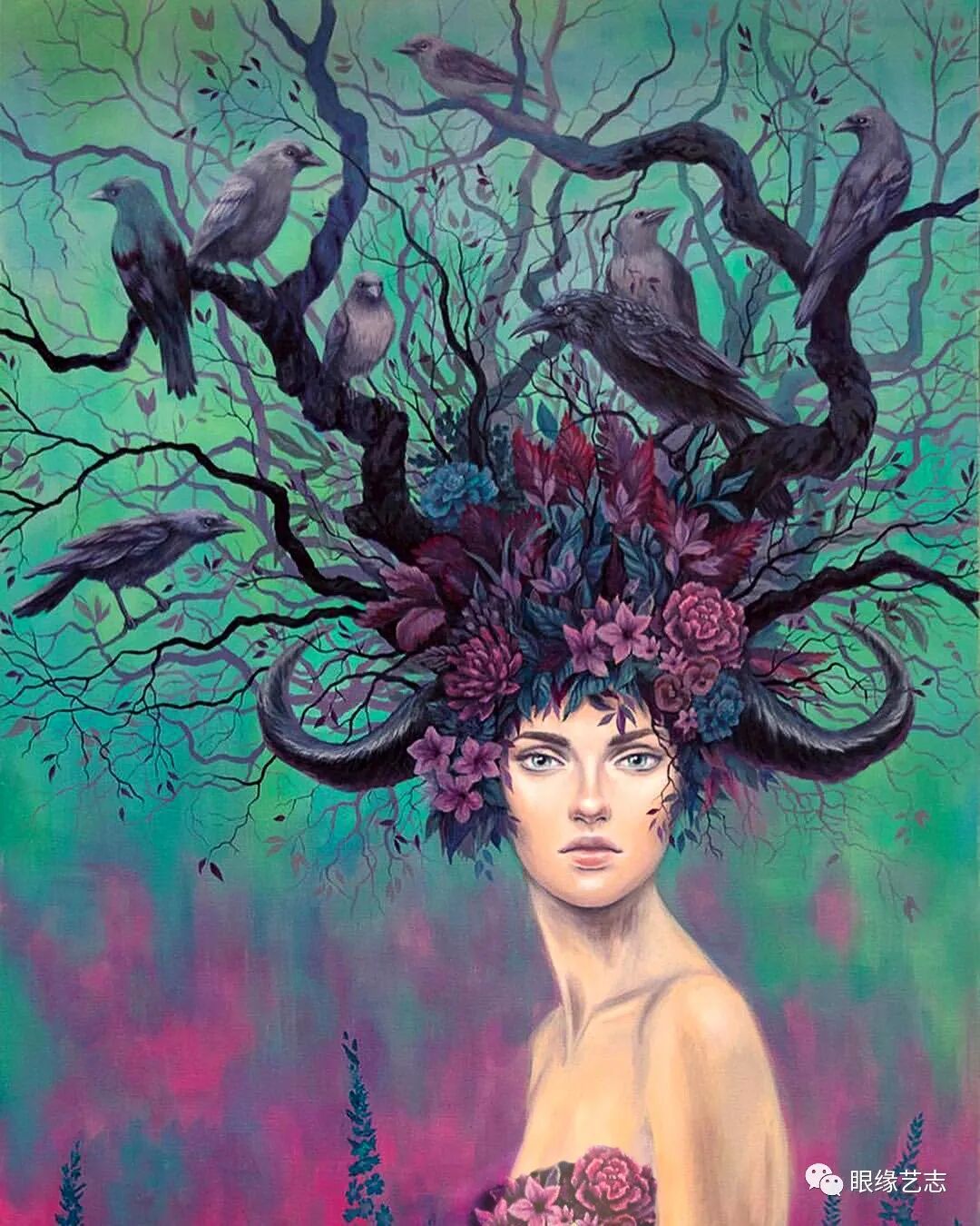 瓦西里萨毕业于纽约时装技术学院,拥有时装艺术和插画艺术学士学位。离开学校后,她被自然、神话和民间艺术所吸引,开始借助数字艺术和传统绘画相结合的方式专注于动植物、复杂纹样以及女性肖像的创作。瓦西里萨会把她的作品想象成一扇通往魔法世界的门户,在神秘且晦暗的背景里,即使一株平凡之花,在它盛开的时候,也会有着异界的诡谲之香弥漫开来。