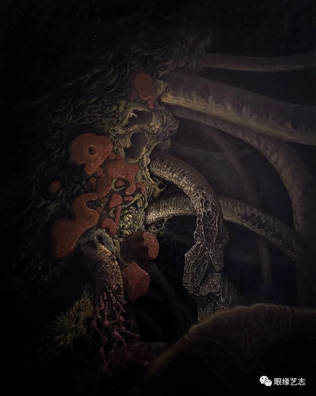 然而,你可能想不到的是,他不但是硬核金属乐队Infected Religion中的一员,也是当今全球诸多摇滚乐队的首席美学顾问,Fetid Zombie、Universally Estranged、Stench Collector等乐队的多张唱片封面都是他的杰作。在地下音乐的世界里,人们更愿意称他为Shoggoth Kinetics(中文译名:修格斯动力学。修格斯是美国小说家霍华德·菲利普·洛夫克拉夫特所创造的克苏鲁神话中的一种生物)。
