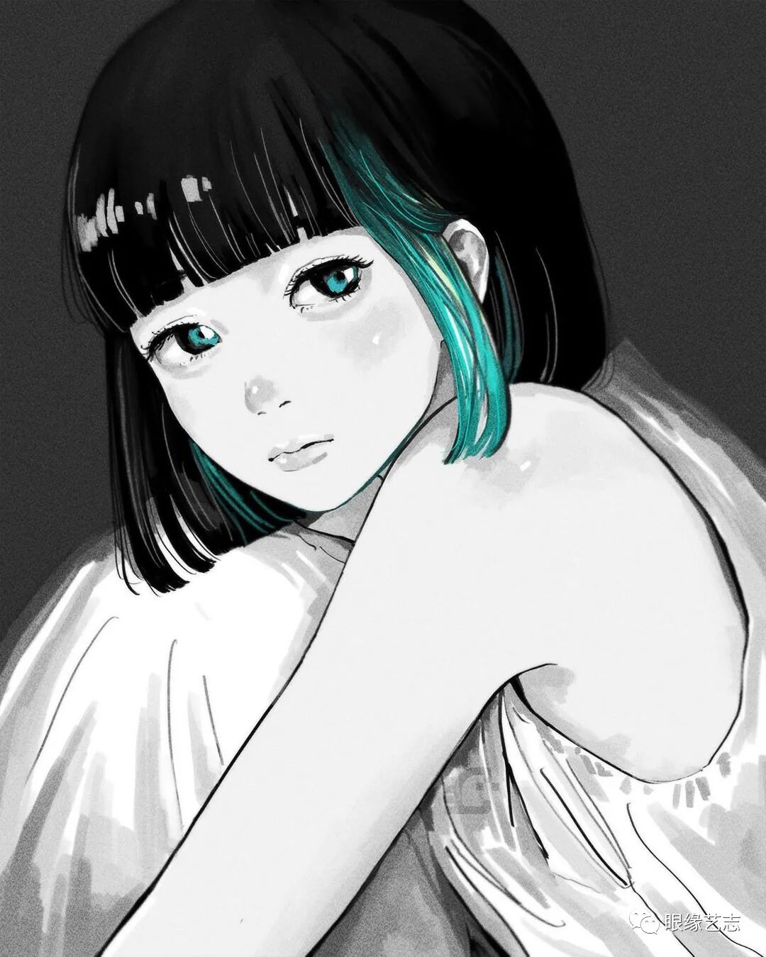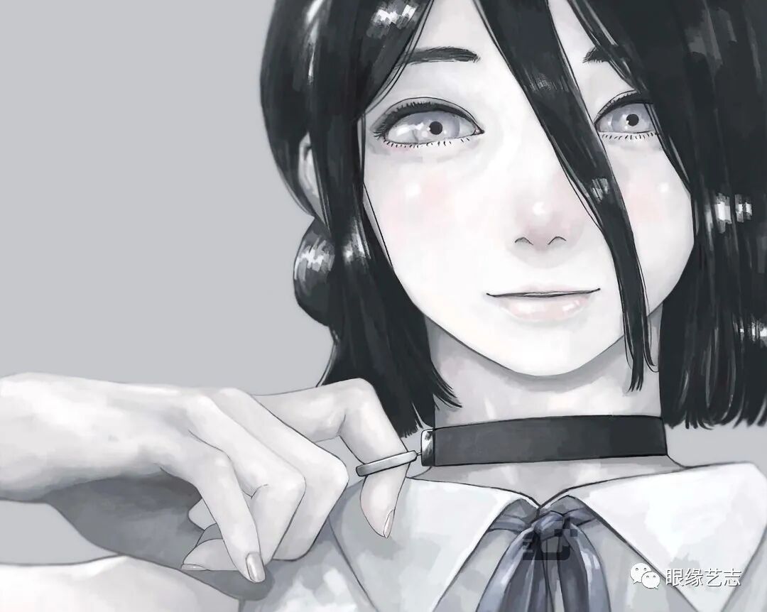 日本插画师荒木落花(Araki Rakka)的作品以黑白色调为主,大多数角色有着甜美的容貌,而眼神中却透着淡淡的幽怨。以独特的世界观剖析角色的负面情绪,荒木落花为自己开辟了一个黑白色的隐匿空间。而观者则通过这样的画作幻想着未画出的剧情,继而连接起自身的情感体验。因此,与其说荒木落花的作品刻画了一个个虚拟的二次元角色,不如说画者构筑了一面镜子,照出了每个与画对望之人心底的思绪。