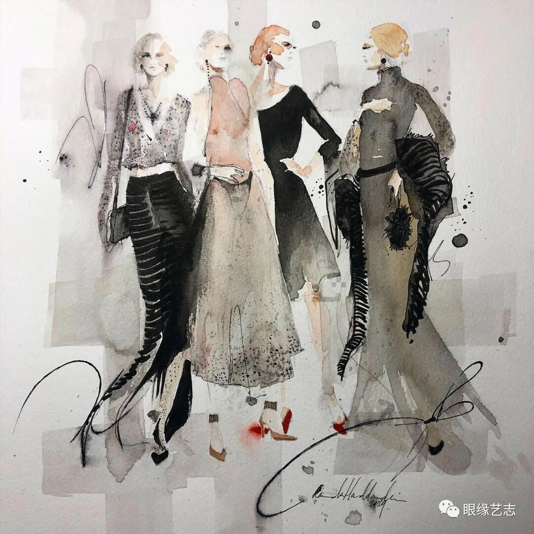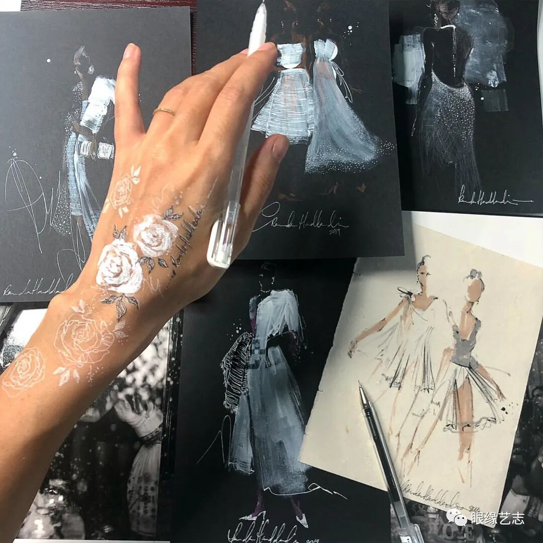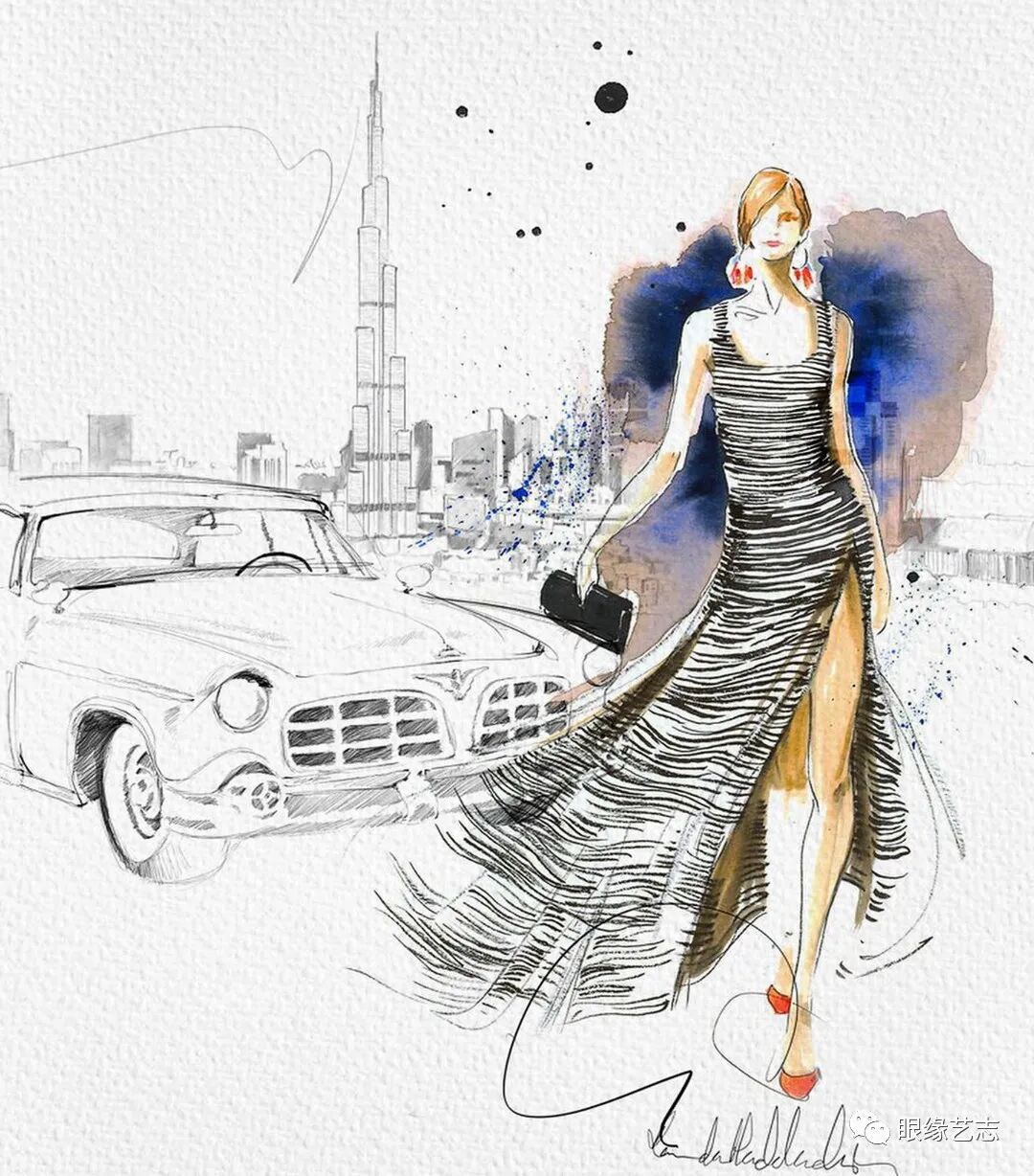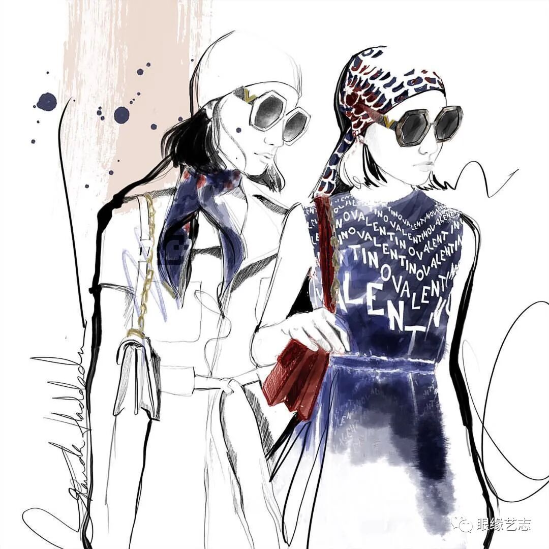 时间可以让人冷静,也可以迎来冷静之后的自在。当兰达·哈达丁发觉自己的线条与笔触开始变得舒展时,她知道自己等来了心之向往的那一刻。2013年,兰达·哈达丁偶然看到了华伦天奴最新的广告短片《back then》,瞬间让她有了创作的冲动。随后她在自己的社交媒体上分享了她的作品,在引起华伦天奴营销和公关团队关注的同时,也成功地将自己推入了时尚圈。