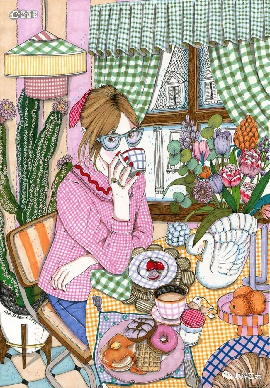 安娜·贾伦:我想,我是我艺术生涯里最大的批评家。我总是尽力做到最好,照顾好每一个细节,在作品质量和商务合作方面坚持自律。我希望看到这些插画的人会能够感受到作品中的关怀和感情,尽管有手工绘制的瑕疵感,但它所传达的,更多的则是生活的温度。