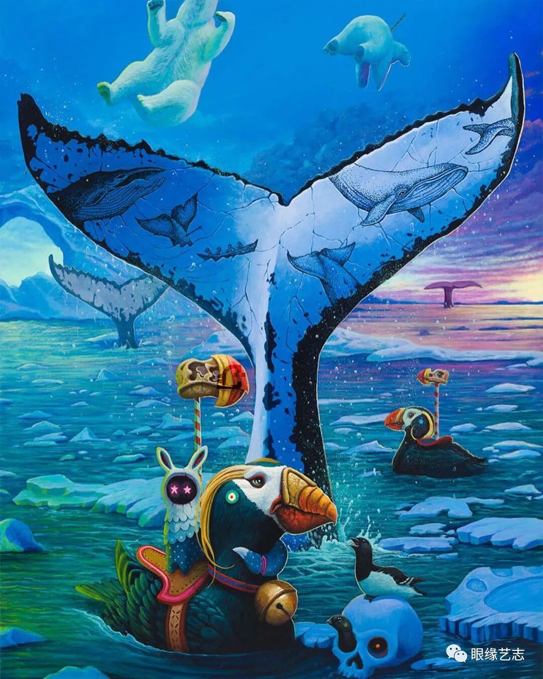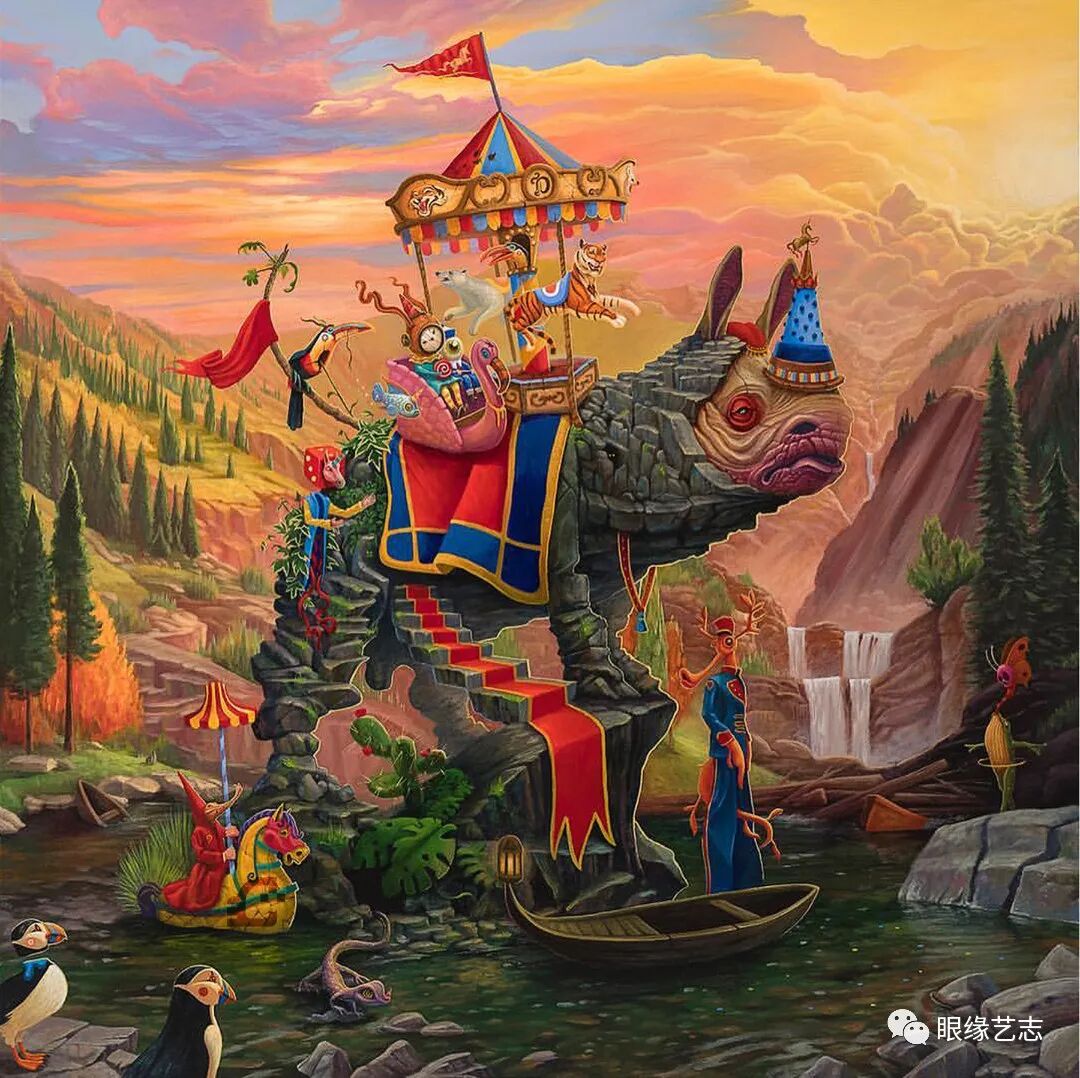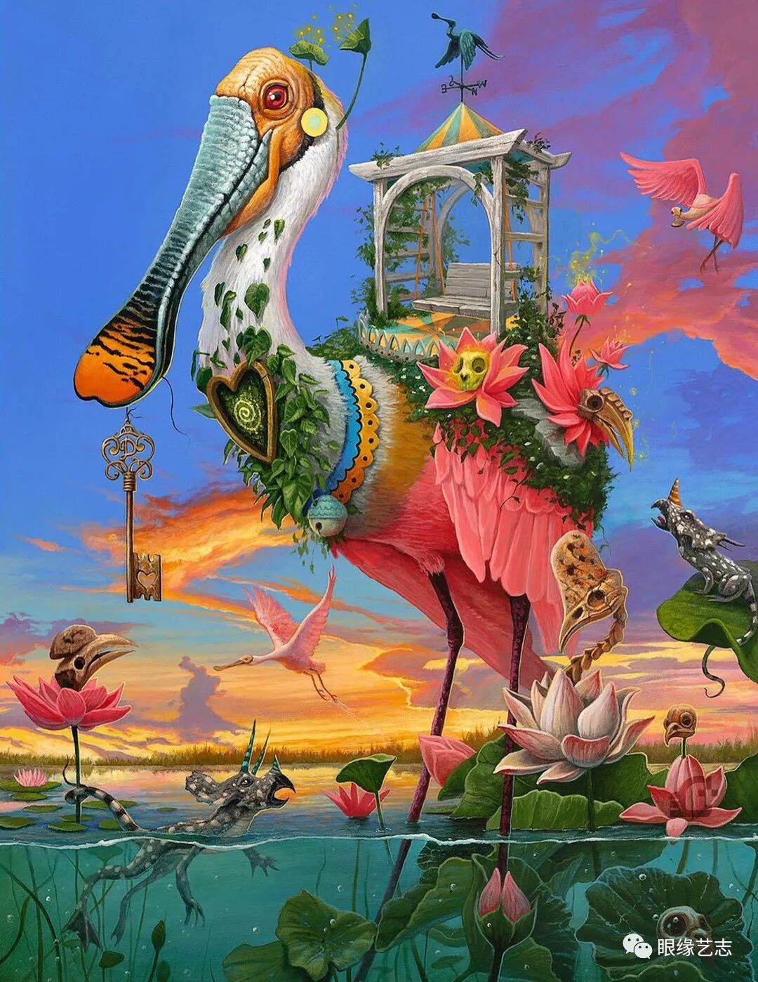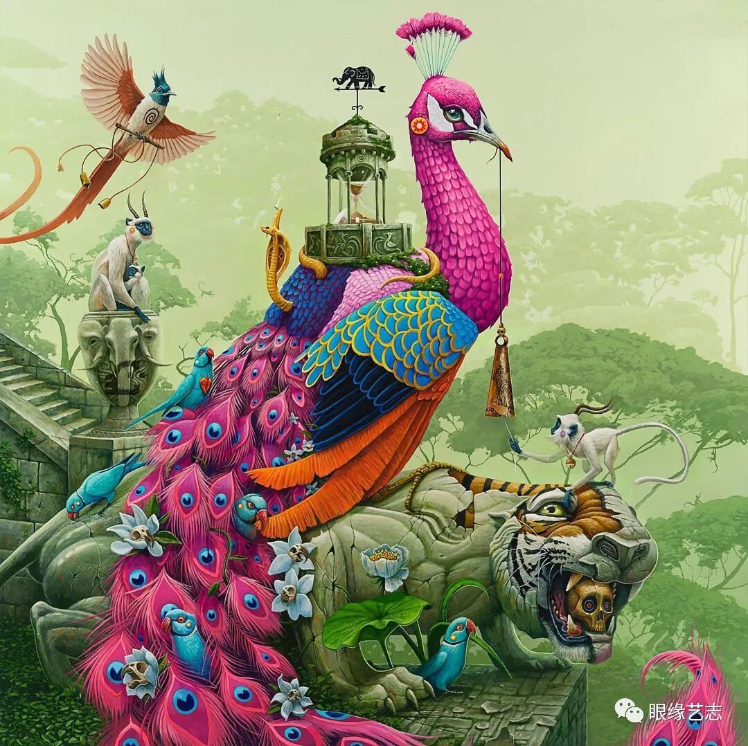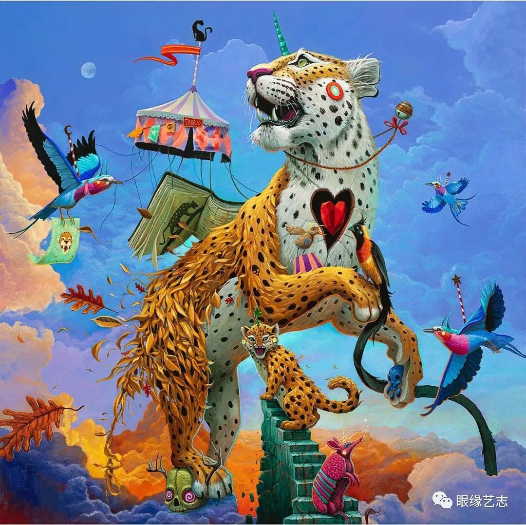 以孩子般天真烂漫的视角去描述世界,再以极富活力的色彩谱写一篇篇生命的悲喜剧——表象上,他的视野是一幅满含幻想细节的超现实主义生态景观画作,而在幻想的背后,真相却可能没有那么的轻快与欢愉……