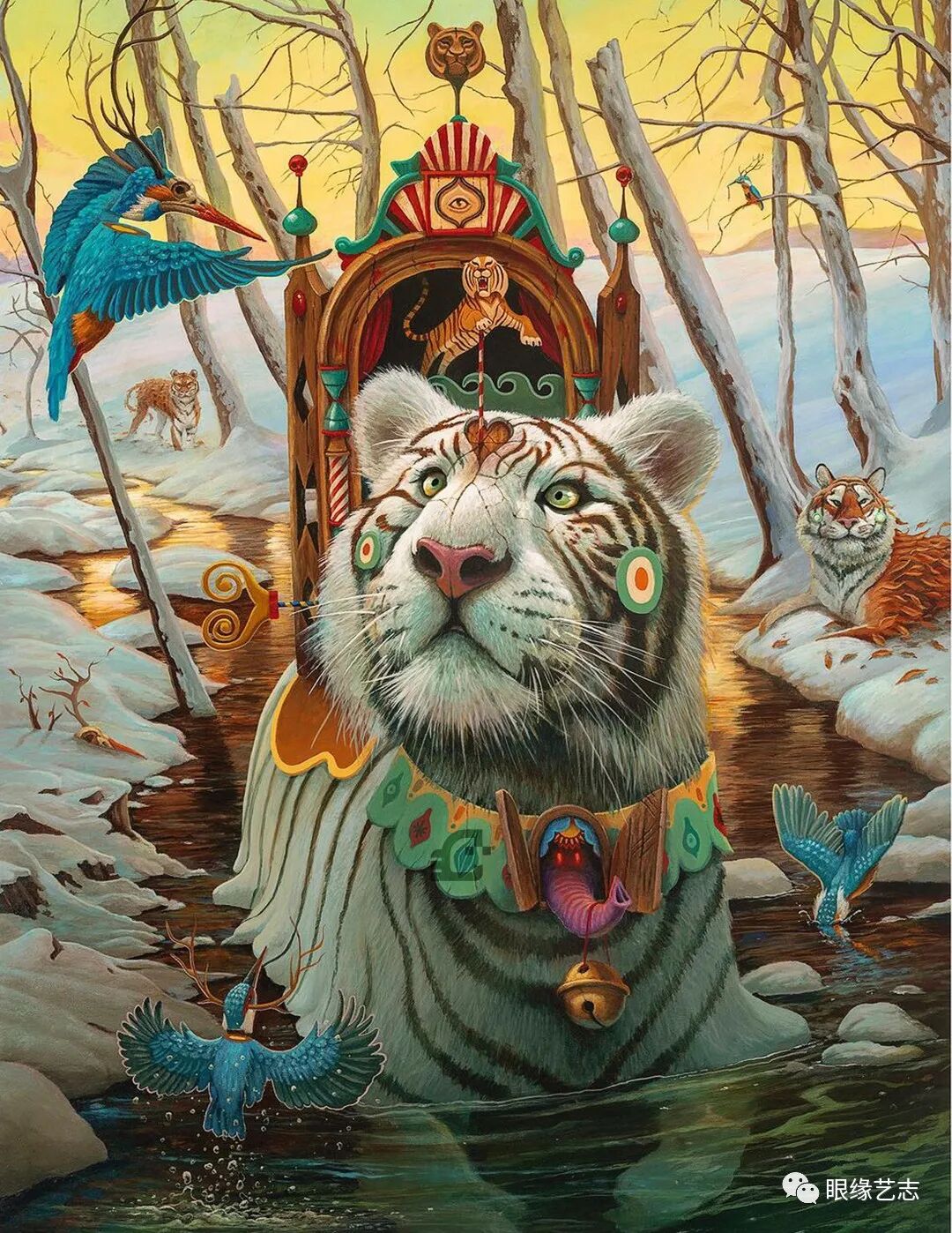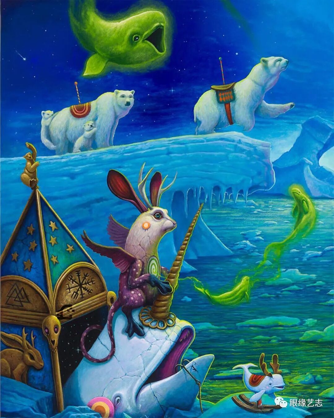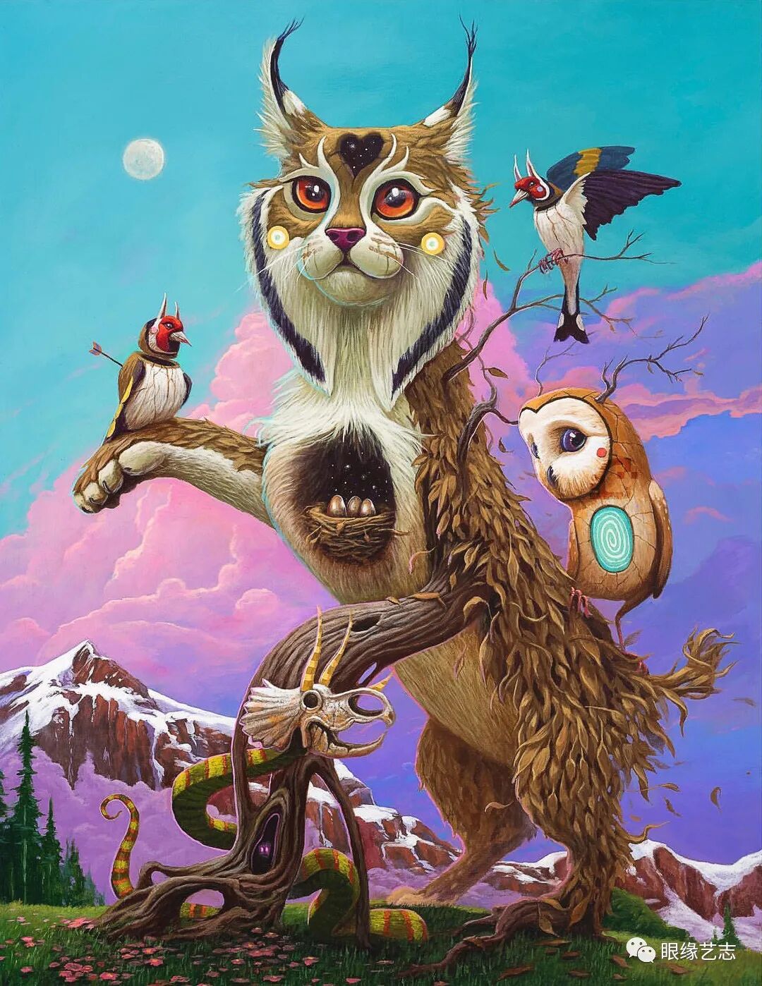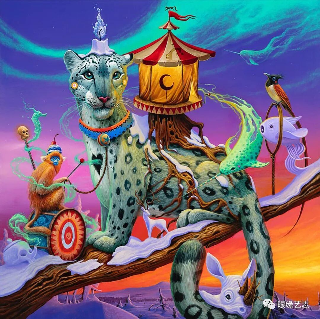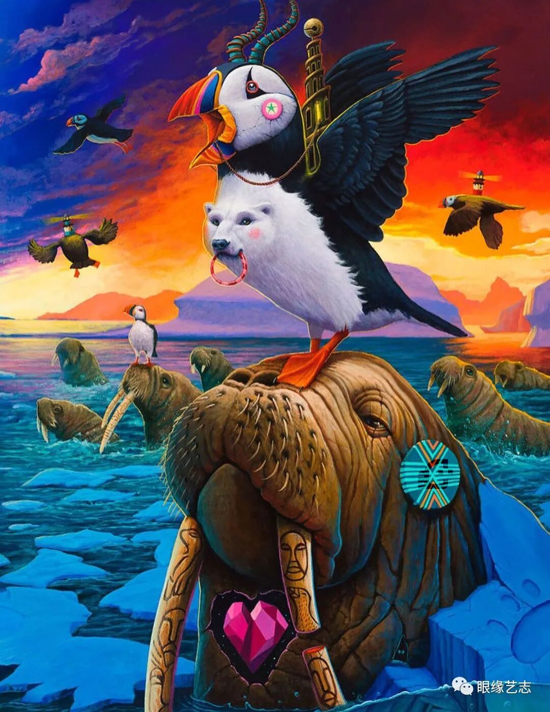 以孩子般天真烂漫的视角去描述世界,再以极富活力的色彩谱写一篇篇生命的悲喜剧——表象上,他的视野是一幅满含幻想细节的超现实主义生态景观画作,而在幻想的背后,真相却可能没有那么的轻快与欢愉……