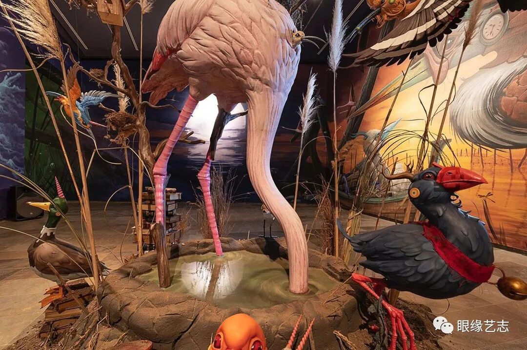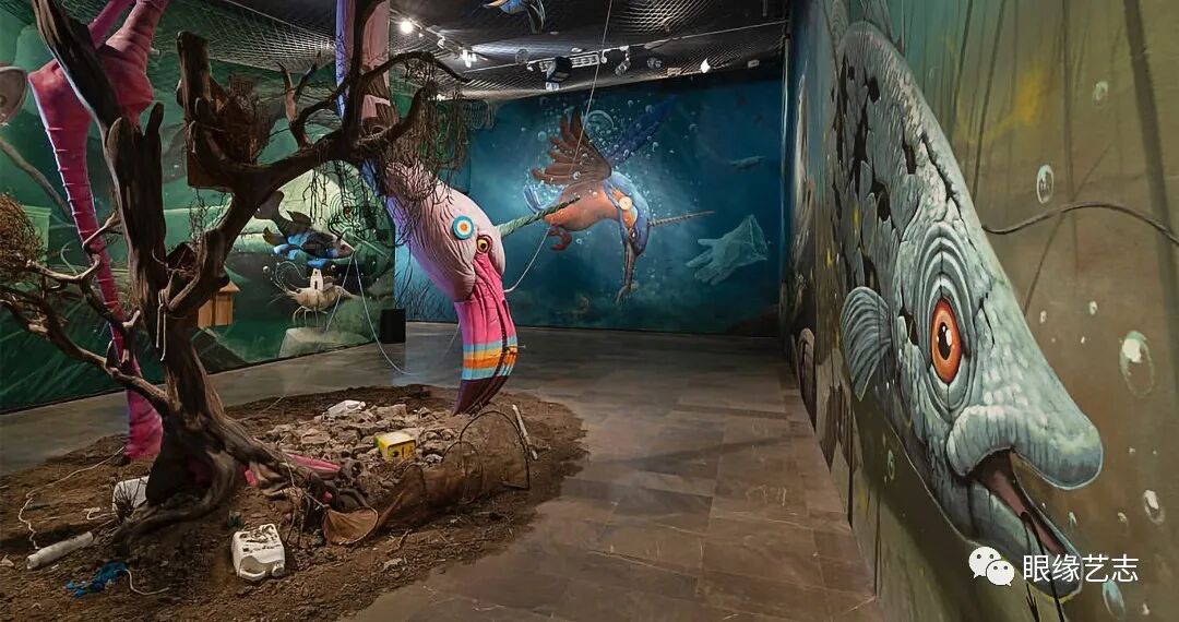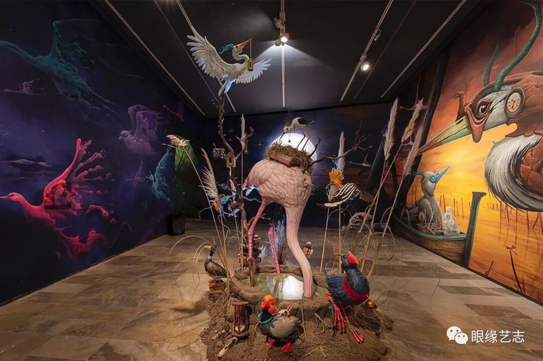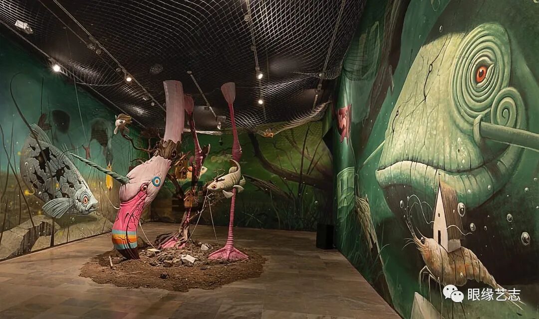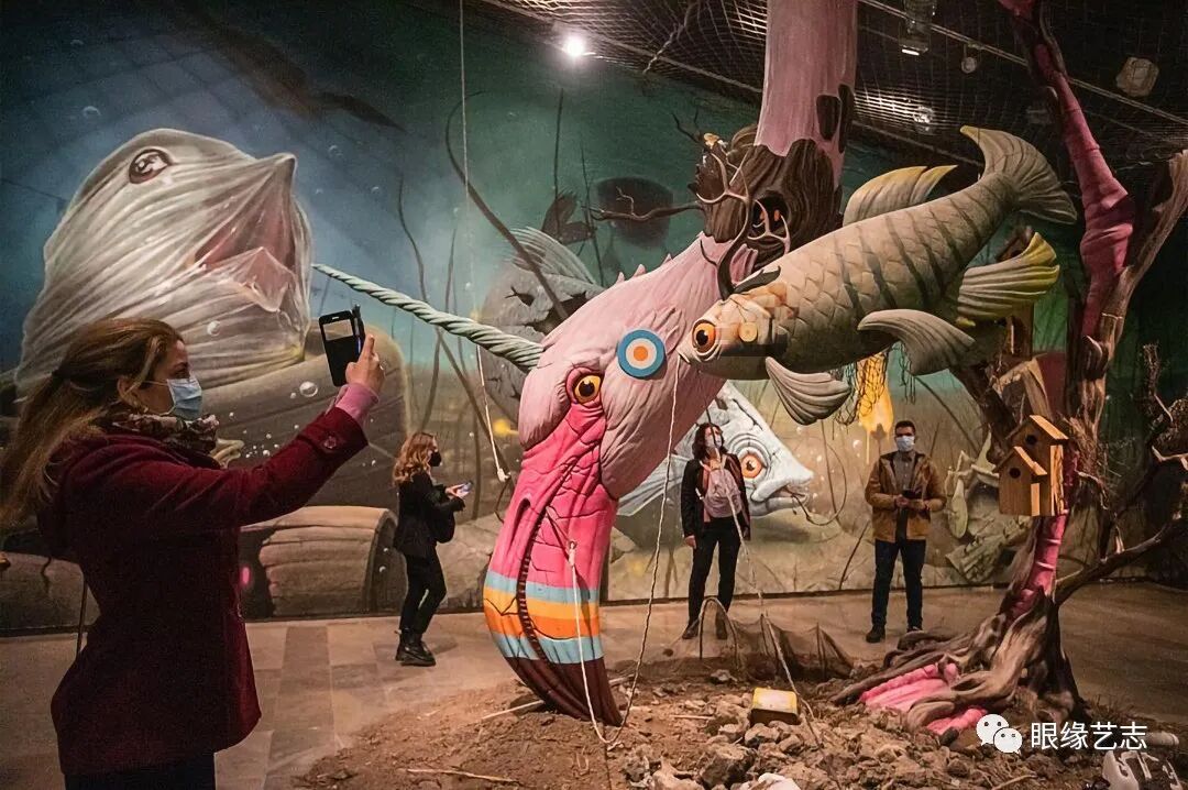 与此同时,在西班牙,同一艺术家的另外一场名为“Rondalla del Fang(泥地环游)”的个展一直从3月12日持续到了10月17日。沉浸式的展览,从壁画到装置、从视觉到听觉,俨然一个只存在于幻想国度的湿地乐园,在新冠疫情肆虐之后的巴伦西亚,成为一道无与伦比的亮丽风景线。