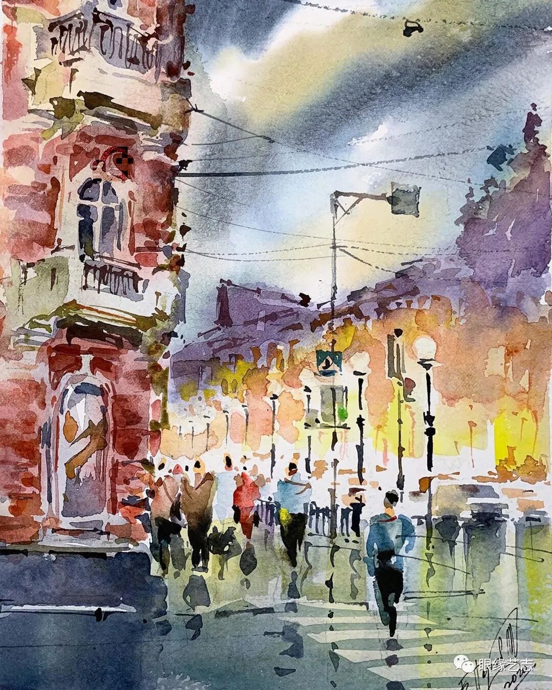 鲍里斯的水彩城市,以令人惊艳的绘制方式,探索了一种沉浸在光与色中的平衡与优雅。那是一种“维度”与“方向”全然坦白的自由交融,它引领着观者的目光,在表现主义与现代印象主义的笔触中碰撞出全新的视觉体验。