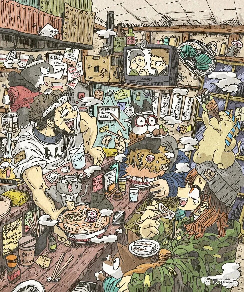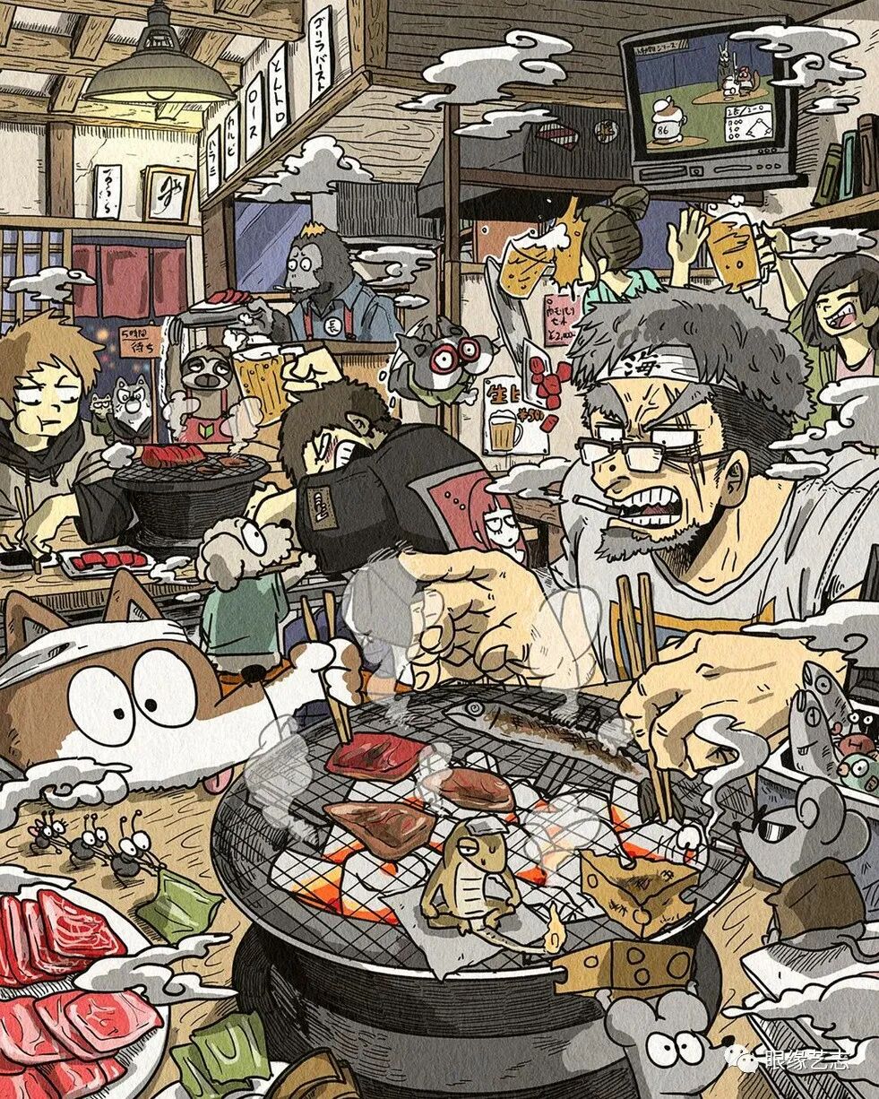 从一个不起眼的原点出发,他的作品是故事、是漫画、也是繁杂日常的缩影。在日本插画师大垣一树的系列作品中,任何普通的生活都会变得热闹非凡,似乎也只有他的想象力才能为其越来越杂乱的画面设定一个极限,而在这个极限之内,幽默与狼藉无处不在。