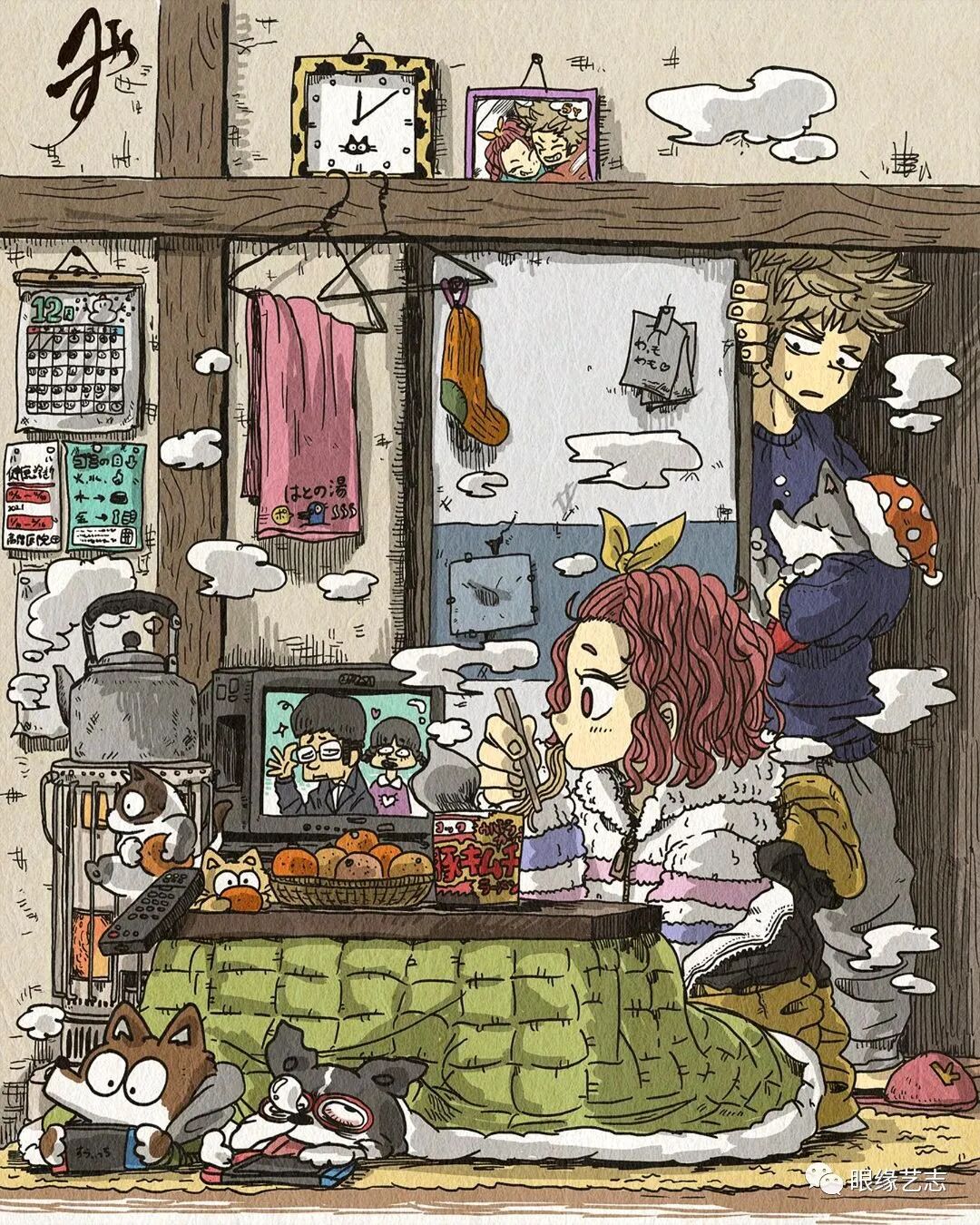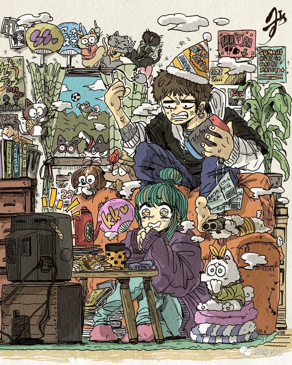 大垣一树住在日本关西地区的大阪,学生时代曾在《Jump》实习,毕业后以箱包设计师为职业,并兼顾MV插图动画的设计工作。网络上关于大垣一树的资料并不多,但这组关于宠物与男女主角的日常插画作品,却极为精准地抓住了那些曾经手捧漫画的“老读者”的眼球。
