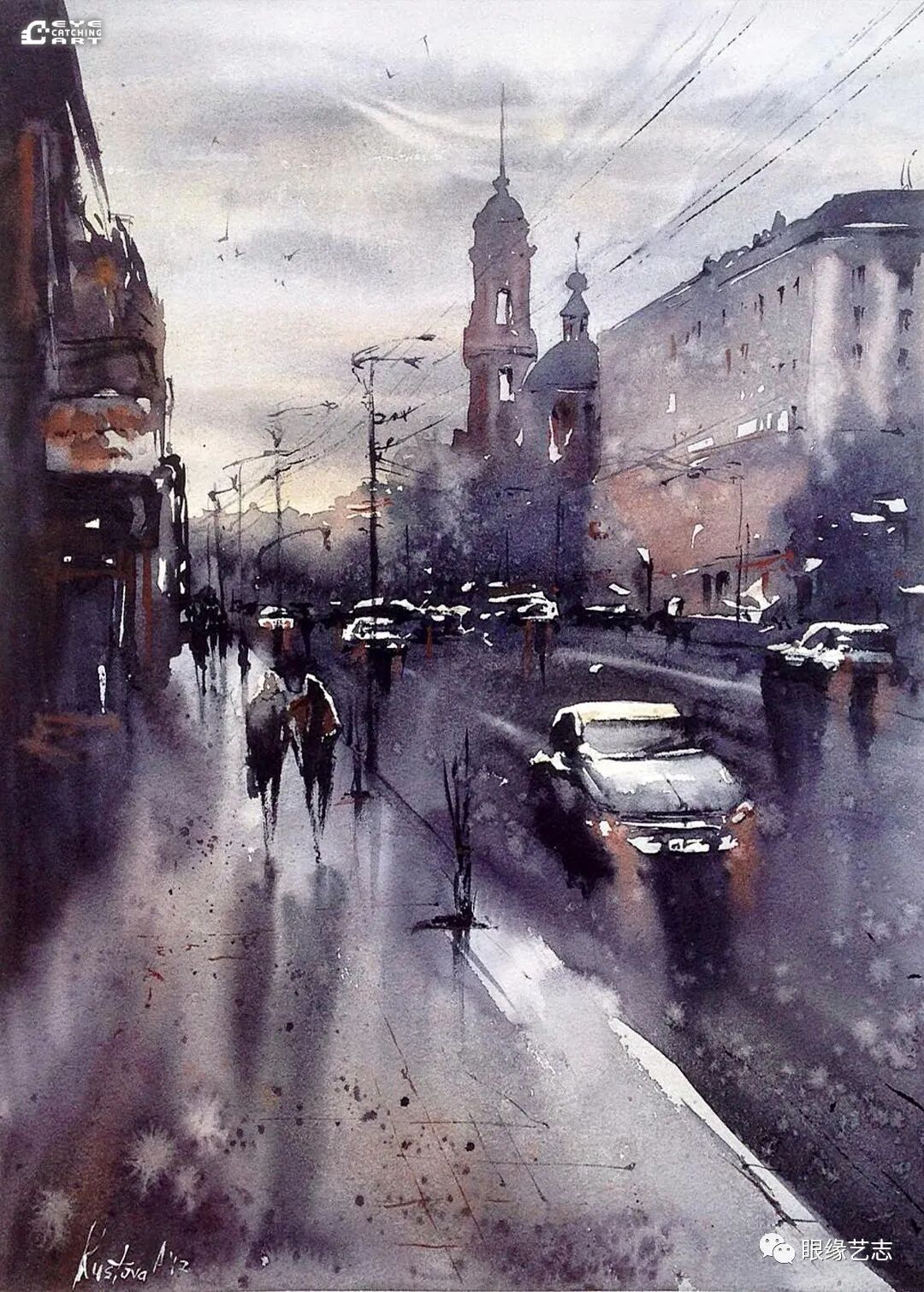 很难用一个职业名词去严格界定阿纳斯塔西娅·库斯托娃的身份,因为除去“水彩画家”之外,她还是库斯托娃艺术学校的创始人、教师,多部水彩旅行传记的作者。对她来说,创作是一场不会终结的马拉松,她要做的,仅仅是备好颜料、追逐光影。今天,我们将以访谈的形式去接近库斯托娃、接近她的水彩、接近那种一直在路上的轻盈。