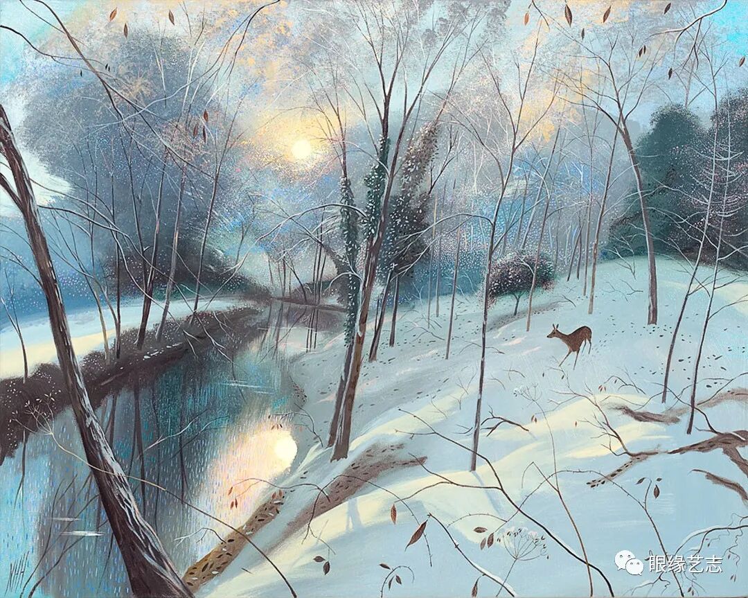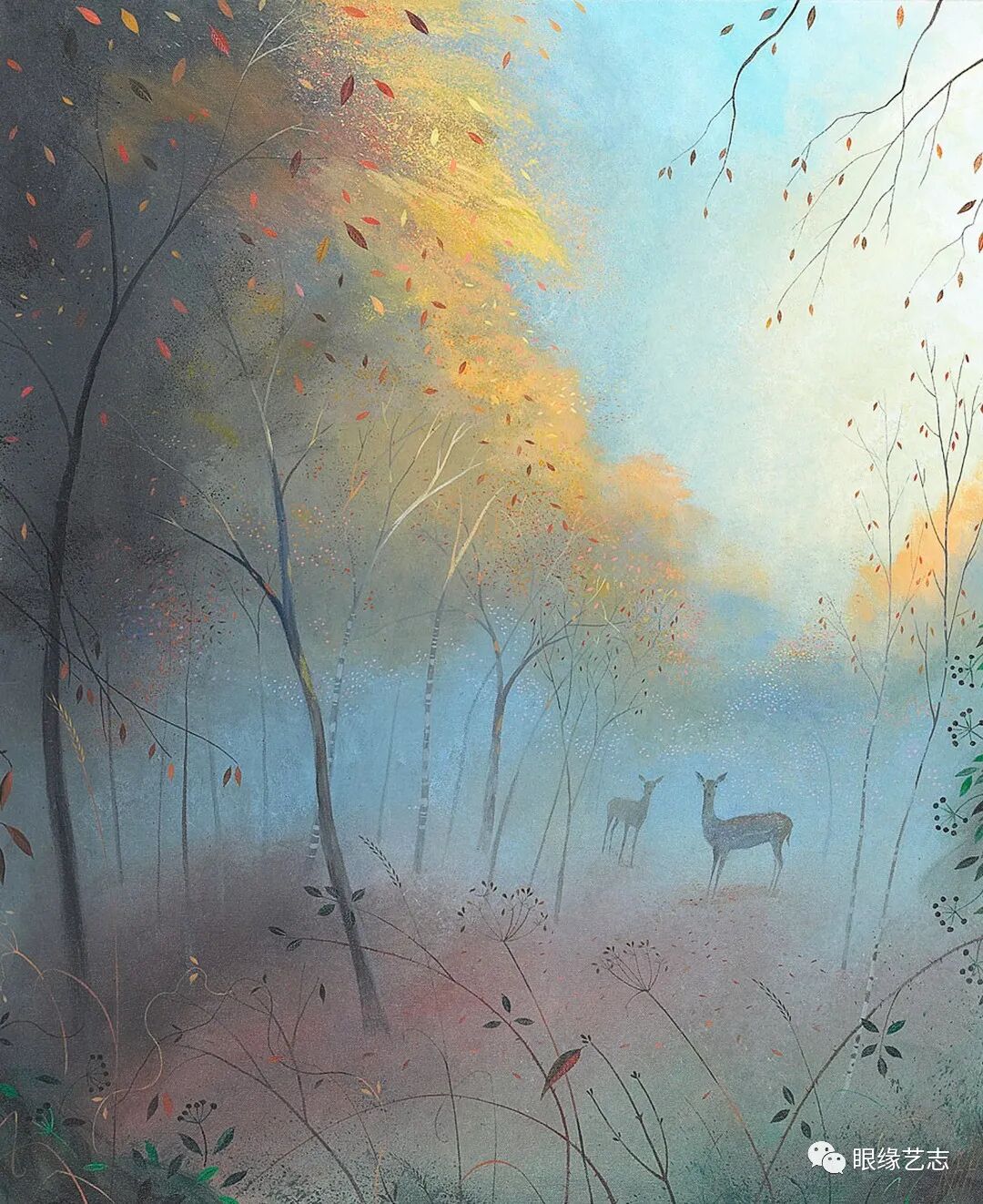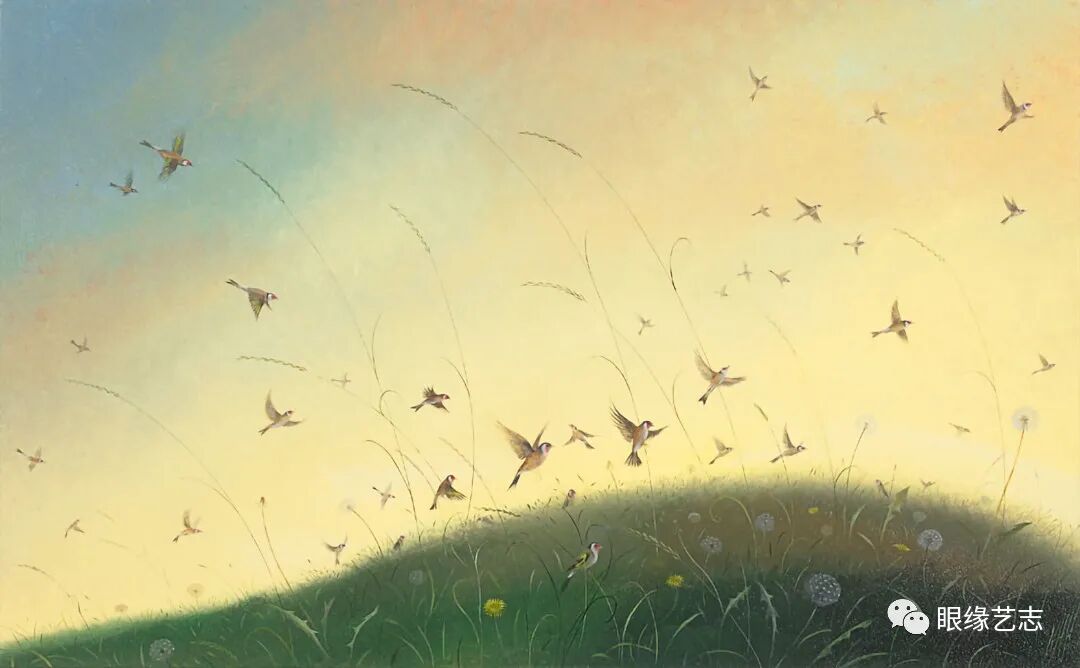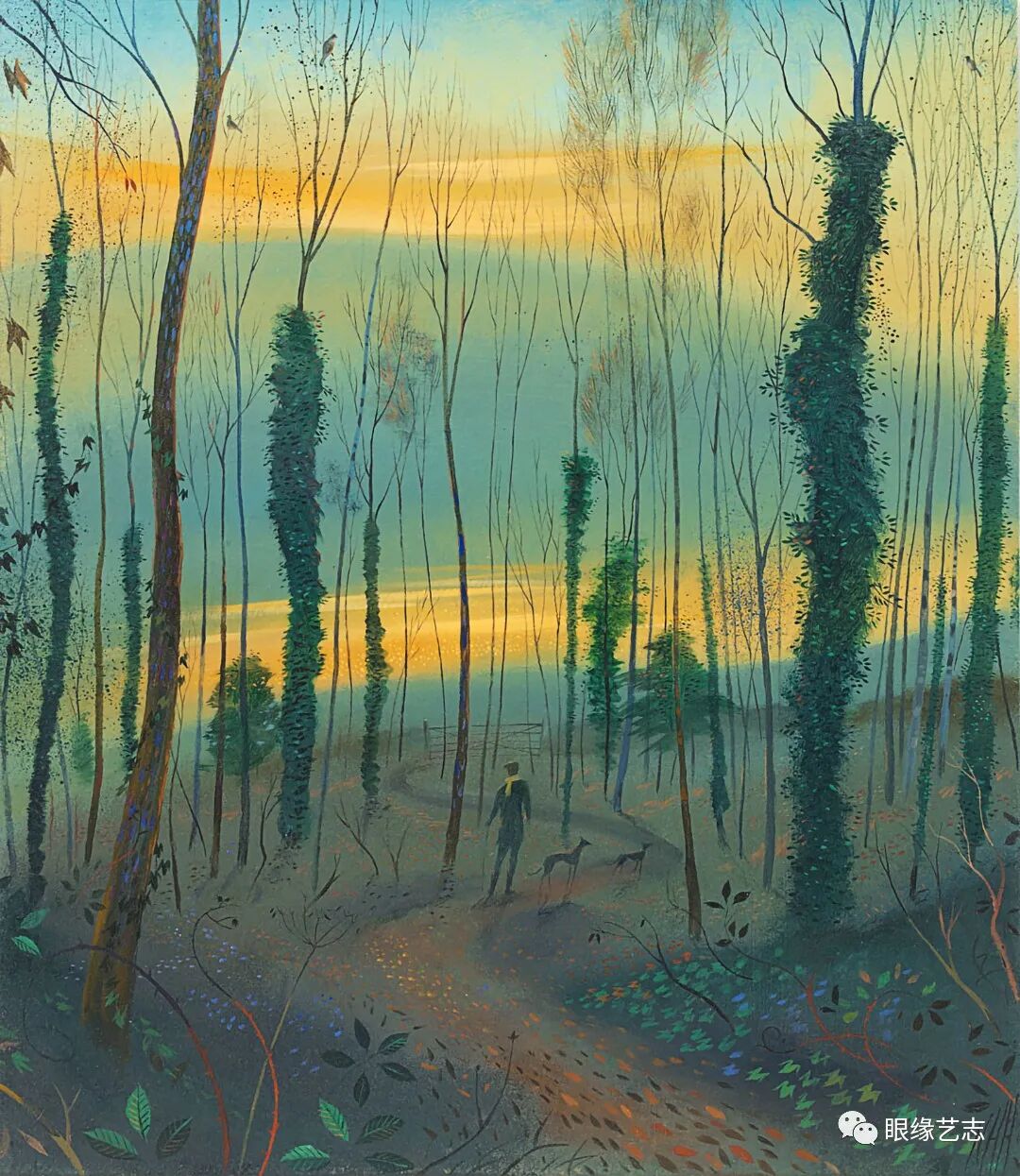 每个季节都有自己的情绪,而我,只是一个在风景中记录情绪的画家。我很幸运,能够在30年前决定远离灰色的人行道,和妻子、孩子住在多塞特郡的乡下。这里离海不远,多变的气候往往会形成巨大的戏剧性景观。飞驰的云层下,人和动物看起来都很小,小到就像是寒冷冬日里天空中的一只鸟,尽管如此,但却足以成为那一刹那,我的全部世界。