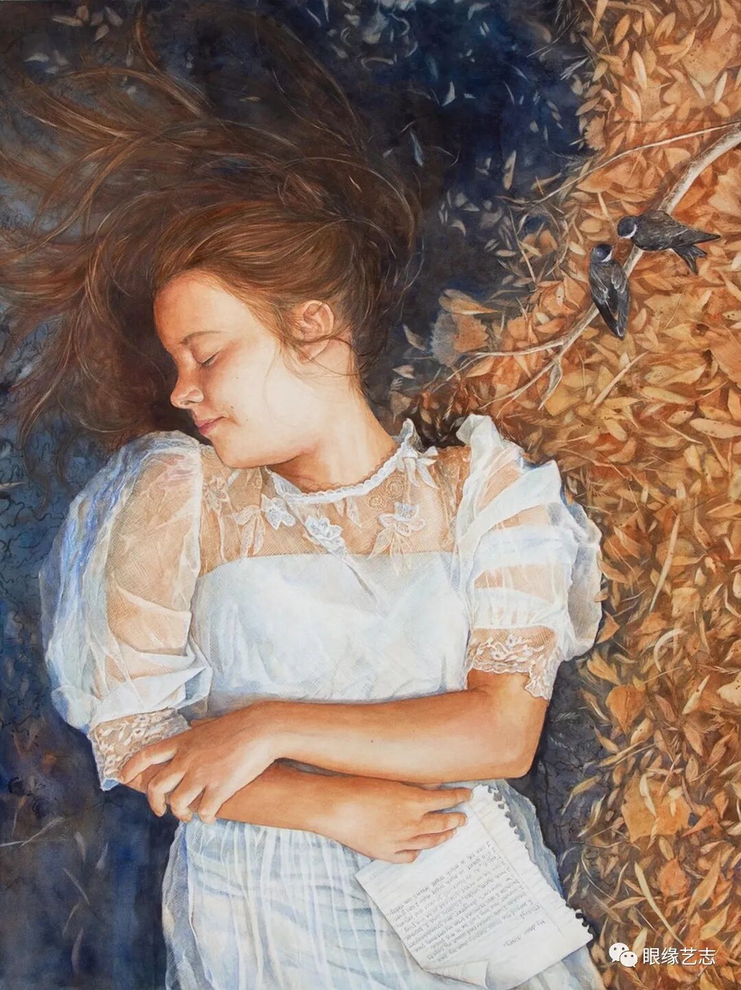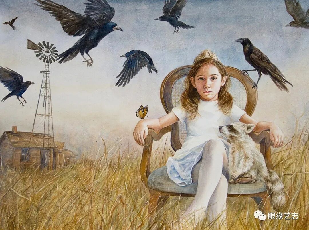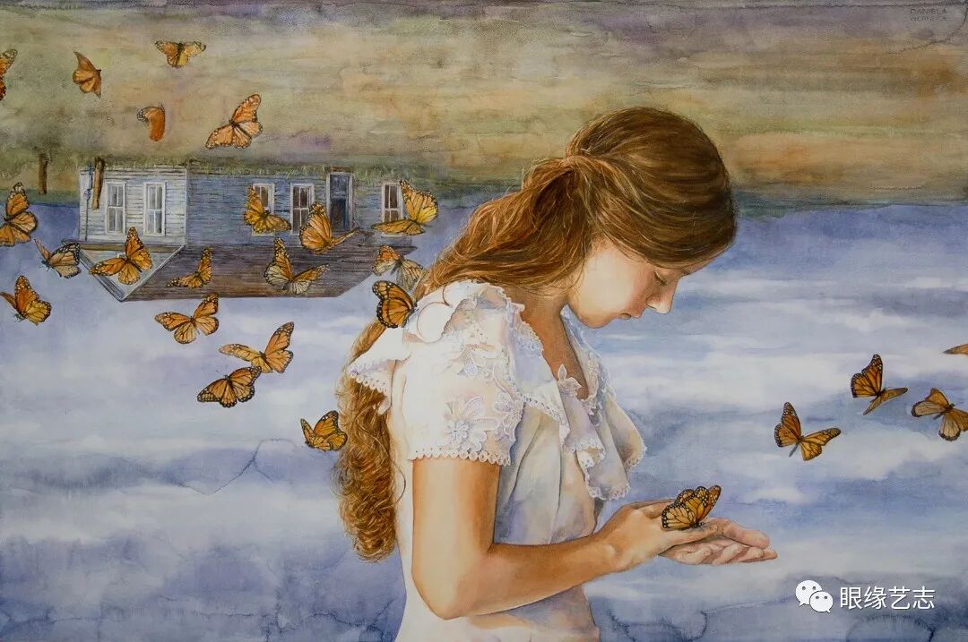 她的水彩甜美、深邃、透彻感官,会带着纯洁的新鲜空气沁入心胸,将你包裹在一个没有约束、没有荒谬的童话故事中,尽管这样的童话并不总是欢欣与完满的,更多的时候,故事中浸满了无奈、酸楚、漫长的沉默以及悄然的泪水。