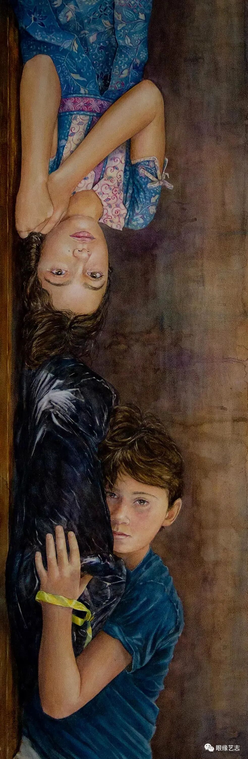 对于没有父母或者稳定家庭的孩子来说,他们的世界是“颠倒”的,或者说是完全无序和混乱的。他们的生存环境、思维方式以及随之而来的成长历程往往会受到这些剧烈的、完全颠倒的生活的负面影响。在一些画作中,背景是颠倒的,表示生活在一个不稳定的、不安全的环境中所感受到的情绪动荡。
