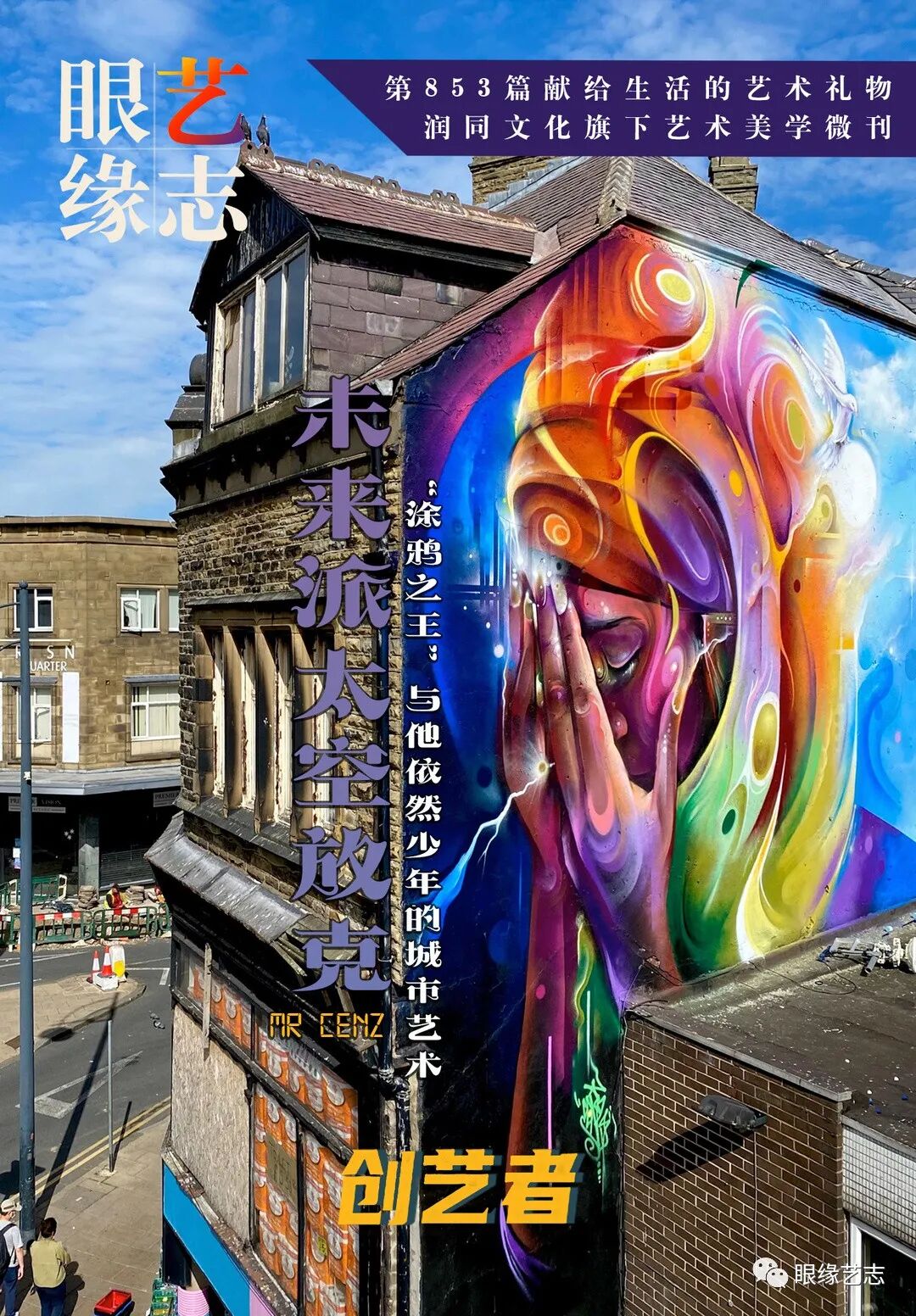 从1993年伦敦贝肯汉姆工作室的首次个展,到2019年美国纽约的“Soul Searching”个展,从1998年伦敦当代艺术博览会到2017年巴黎城市艺术博览会,Mr Cenz将他的艺术带到了全球更多的城市。在万众瞩目的聚光灯下,昔日流窜涂鸦的少年已成为城市艺术的大师。而在每一处可以喷涂的墙面上,这位1975年出生、现年46的英国人,仍然是一个激情四射的男孩,手握涂鸦喷雾,装点着城市的景观,装点着他依旧年轻的梦想。