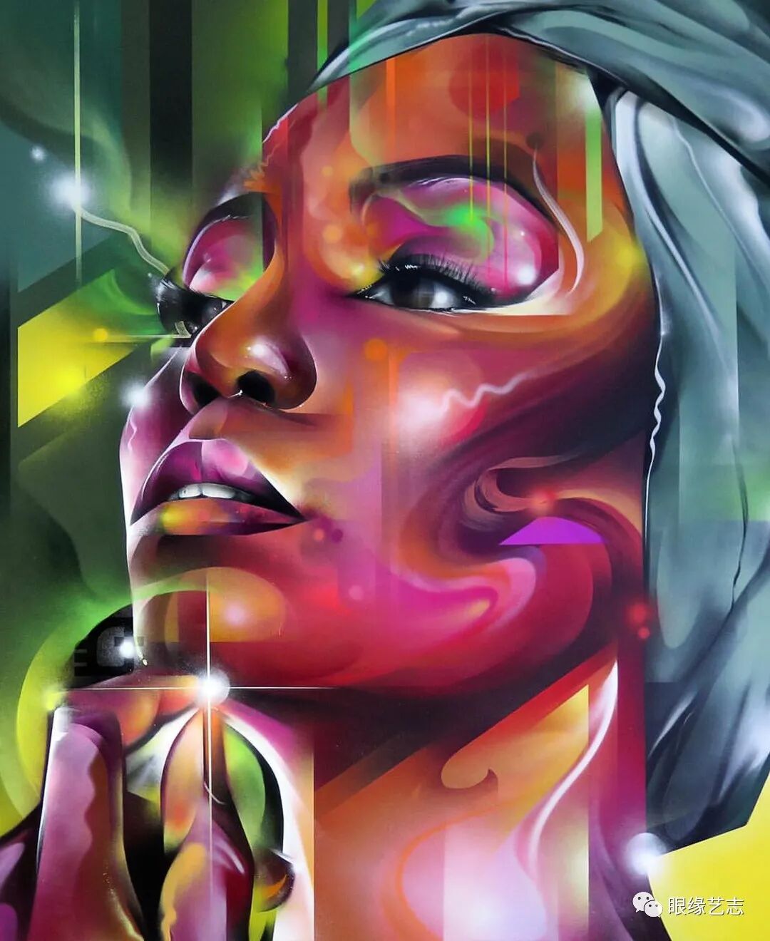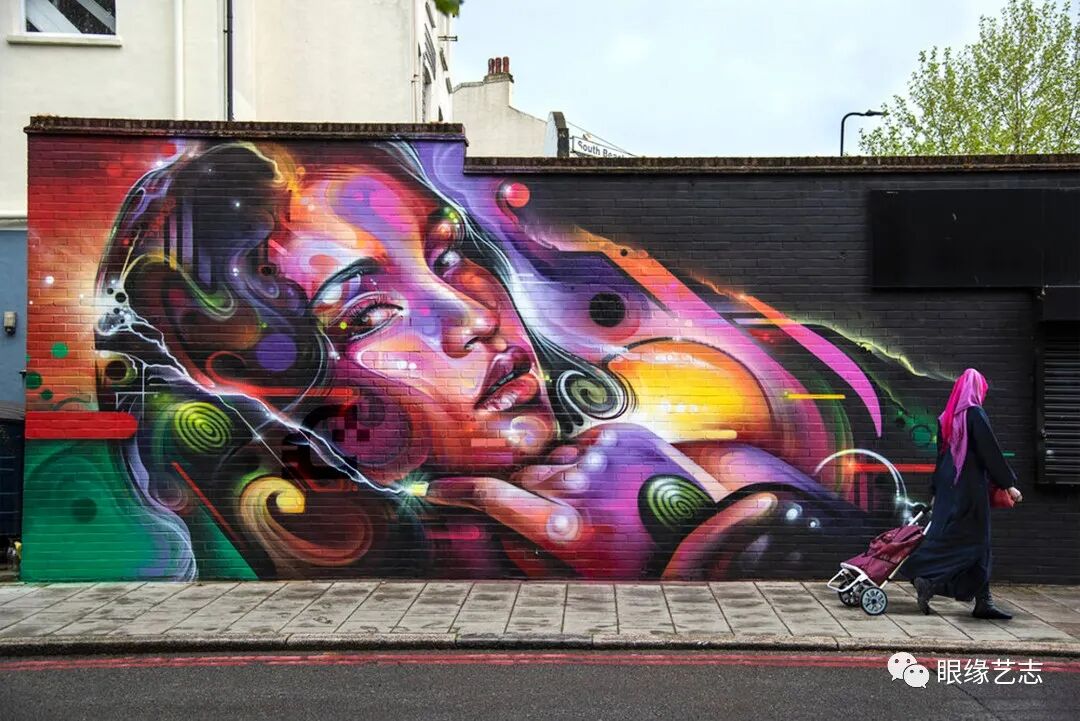 解构面部特征、绘制图层和纹理、协调并平衡色彩——涂鸦是一个能量释放的过程,它拥有自己的生命与存在形式。每一次在城市的一隅画下它们都是一次全新的冒险,这总会让我迷醉在一个充满无限可能的超现实世界里,欣然且兴奋着。