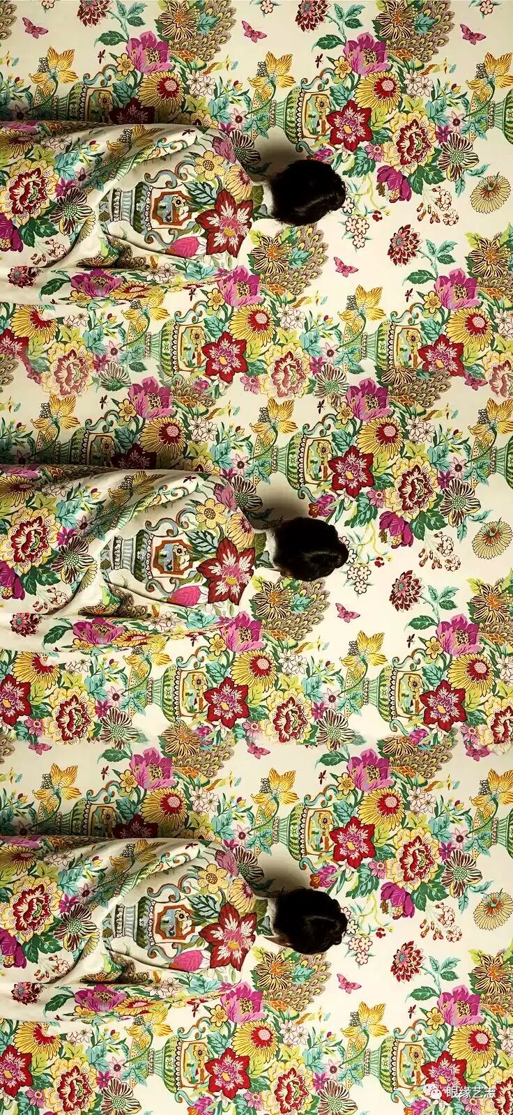 创作这样的系列作品不仅需要华美的服装、道具以及出色的化妆技术,更需要在镜头前找到那个正确且完美的姿态。我常常会在这个时候泪流满面,但我知道,泪水不只源自身体的疲劳,还来自一种迫切的渴求。那是一种与每种具象图案沟通的渴求,在这种渴求中,我必须超越物质形态与自我意识的束缚,在一次次静谧的低语中,成为它们。