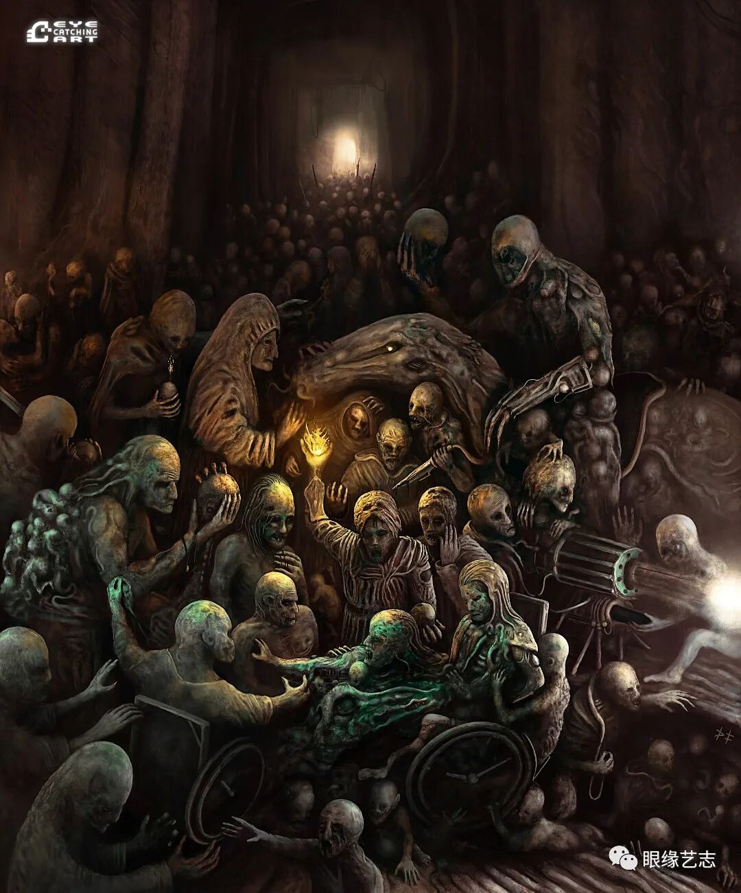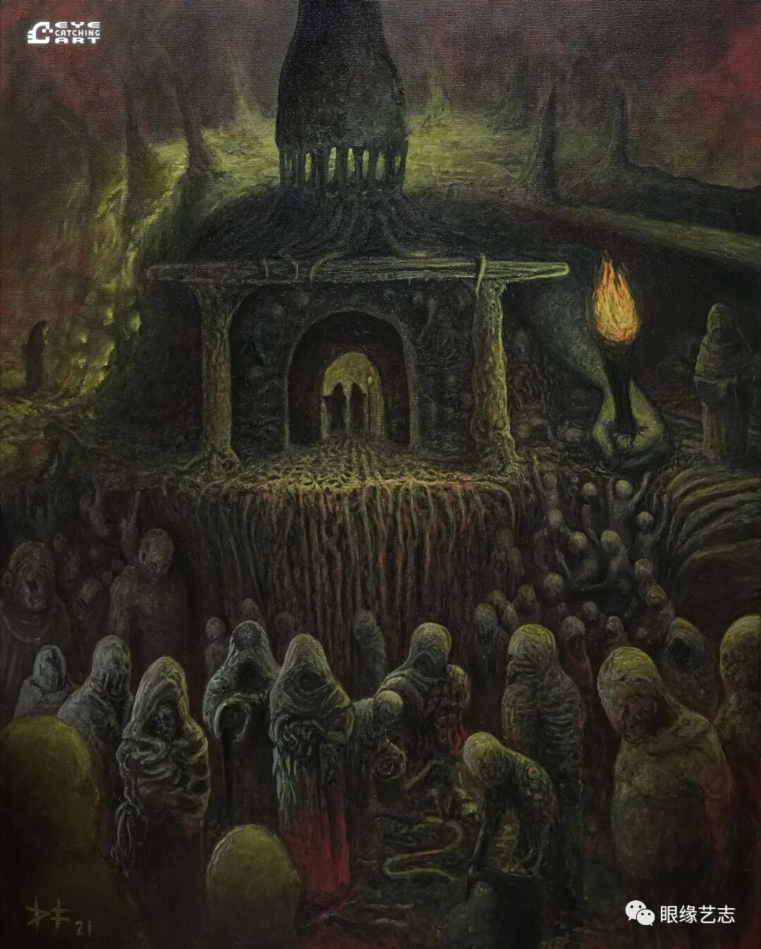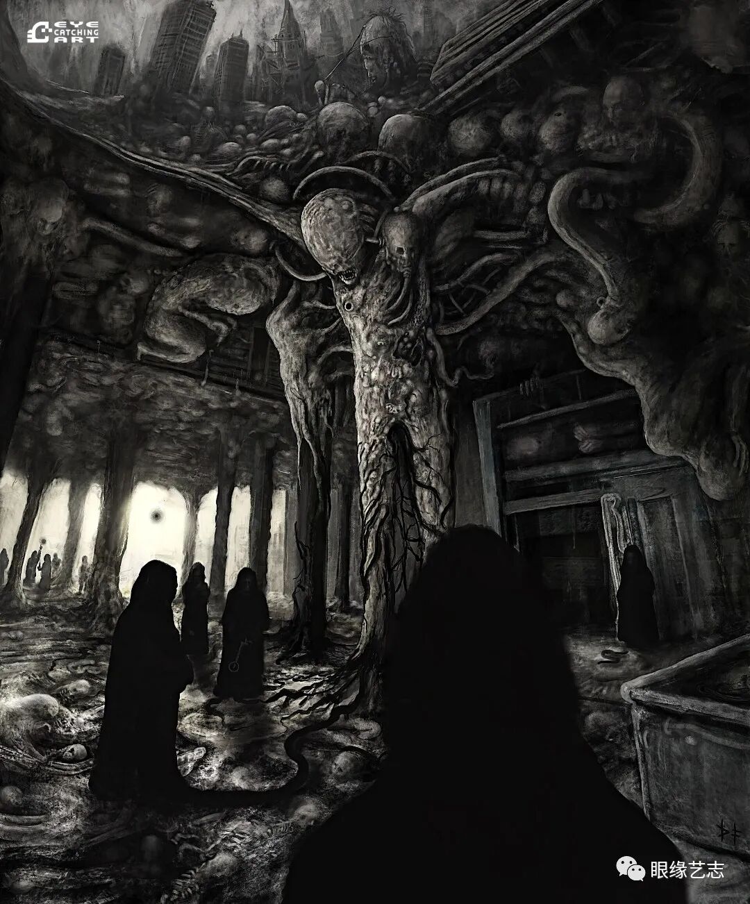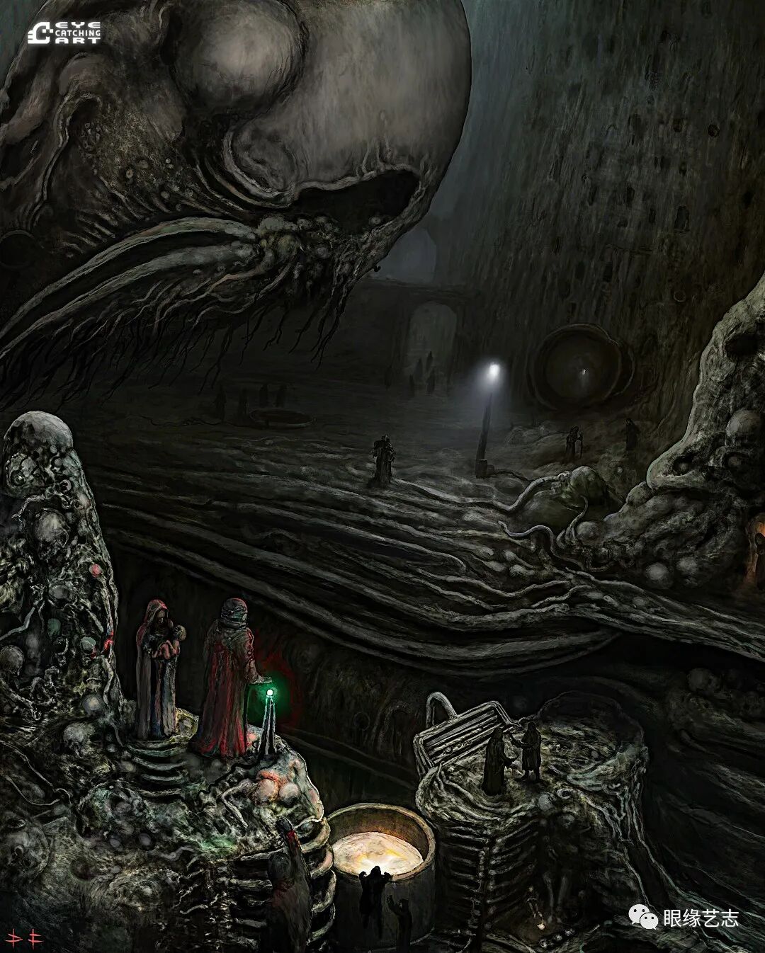 丹尼尔·弗朗西斯科:是的,你可以在我的作品里看到洛夫克拉夫特(Howard Phillips Lovecraft,美国恐怖、科幻小说作家,代表作品有《克苏鲁的呼唤》《疯狂山脉》等)和贝克辛斯基(Zdzisław Beksiński,波兰著名超现实主义画家、摄影师,其作品多以表现主义描绘末世场景)的某些元素,除此之外,我的创作还深受黑暗环境音乐、恐怖电影以及视频游戏的影响,比如《寂静岭》。