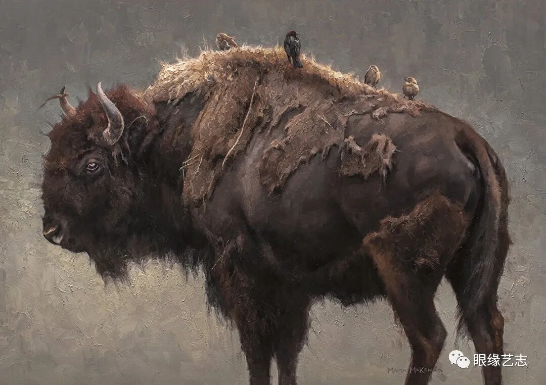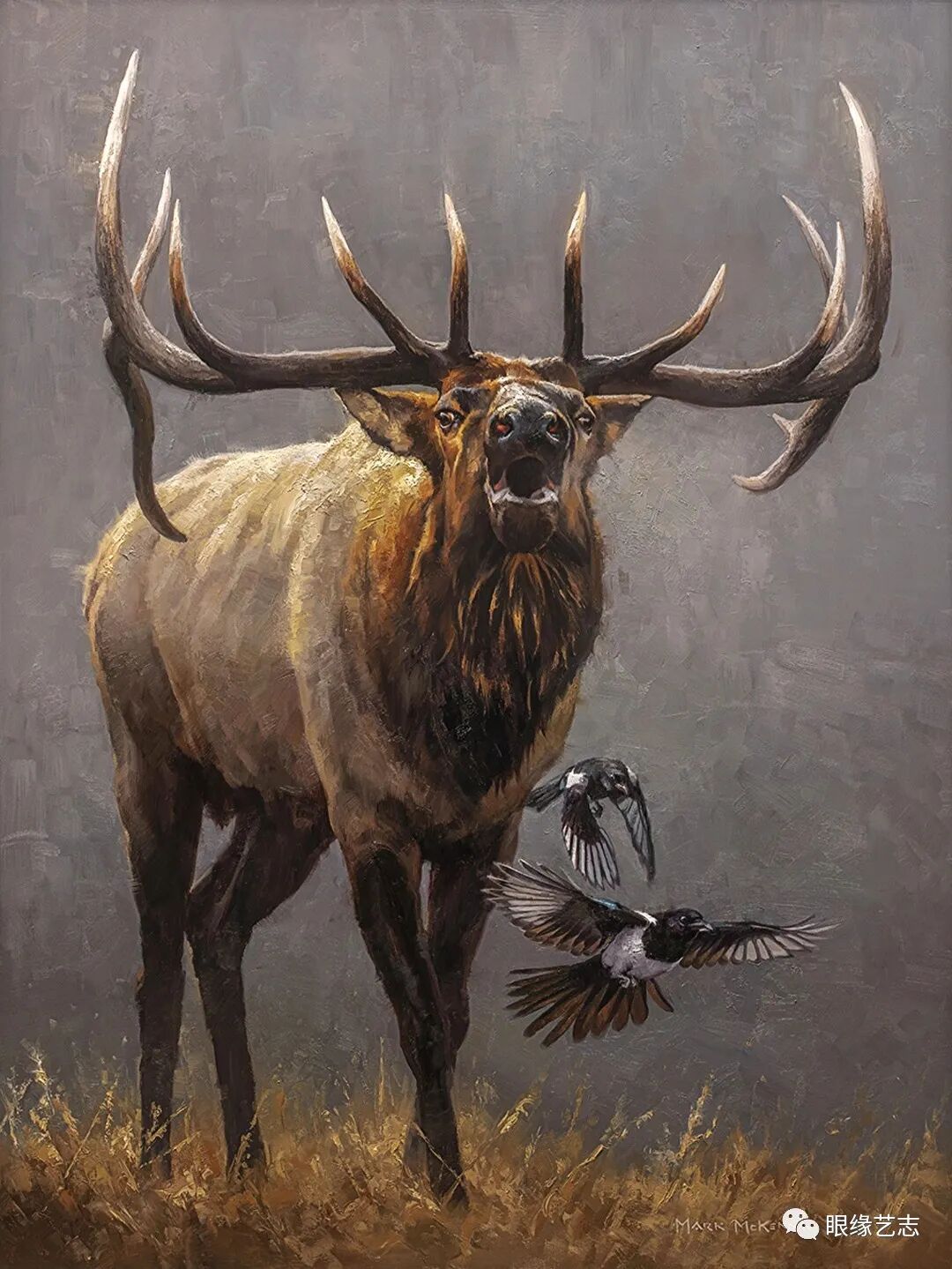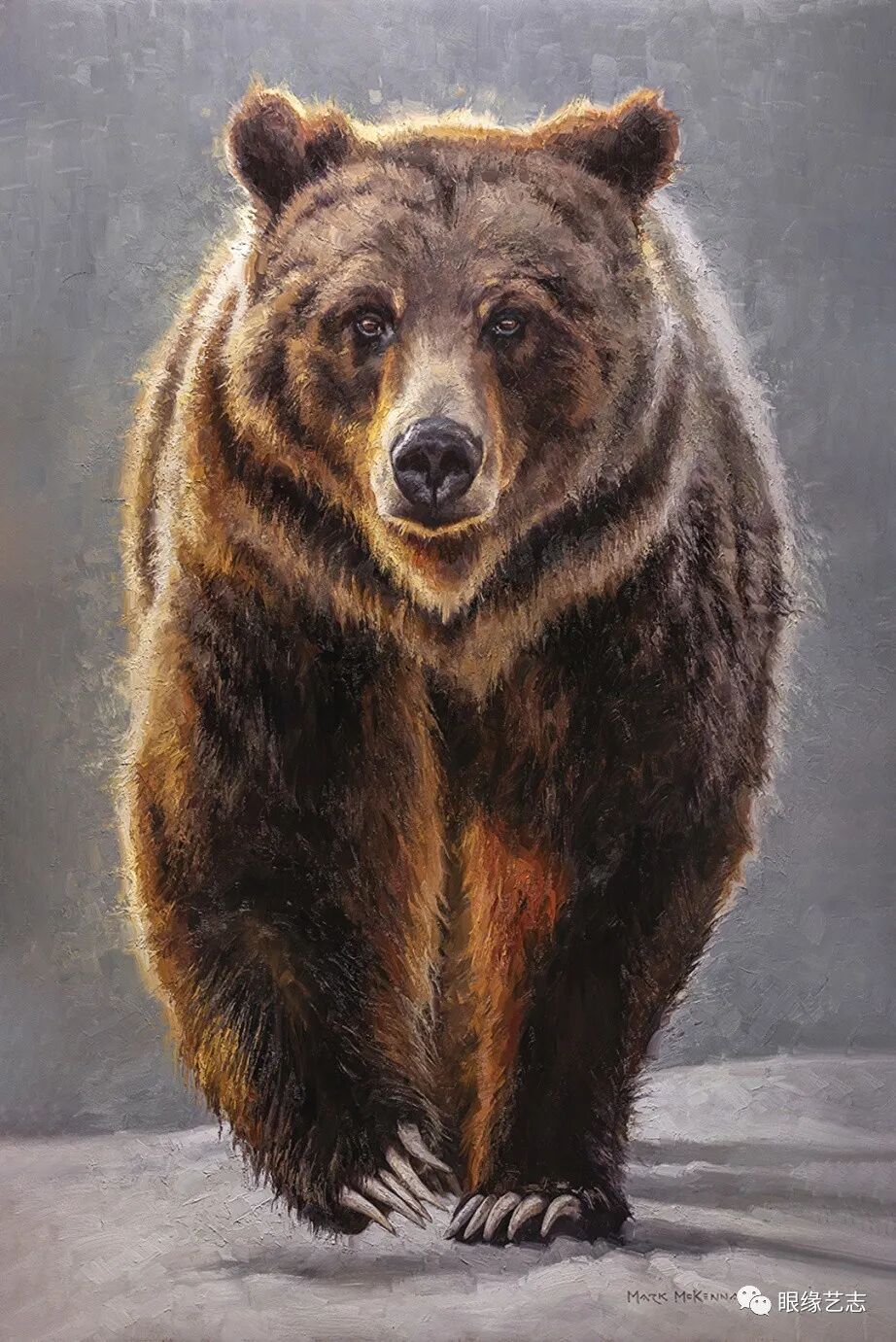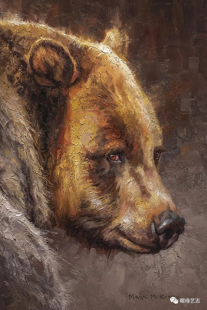 马克·麦肯纳坦承,他的作品受到了很多东、西方艺术家的影响,比如美国当代油画家克莱德.阿斯佩维格(Clyde Aspevig)、“用颜料雕刻”的野生动物画家格雷格·比查姆(Greg Beecham)以及华裔旅美画家ZS Liang。但麦肯纳更渴望于这些大师的肩膀上走向自己的风格,就像在危机四伏却又生机勃勃的黄石国家公园中他勇敢的独行背影一样。