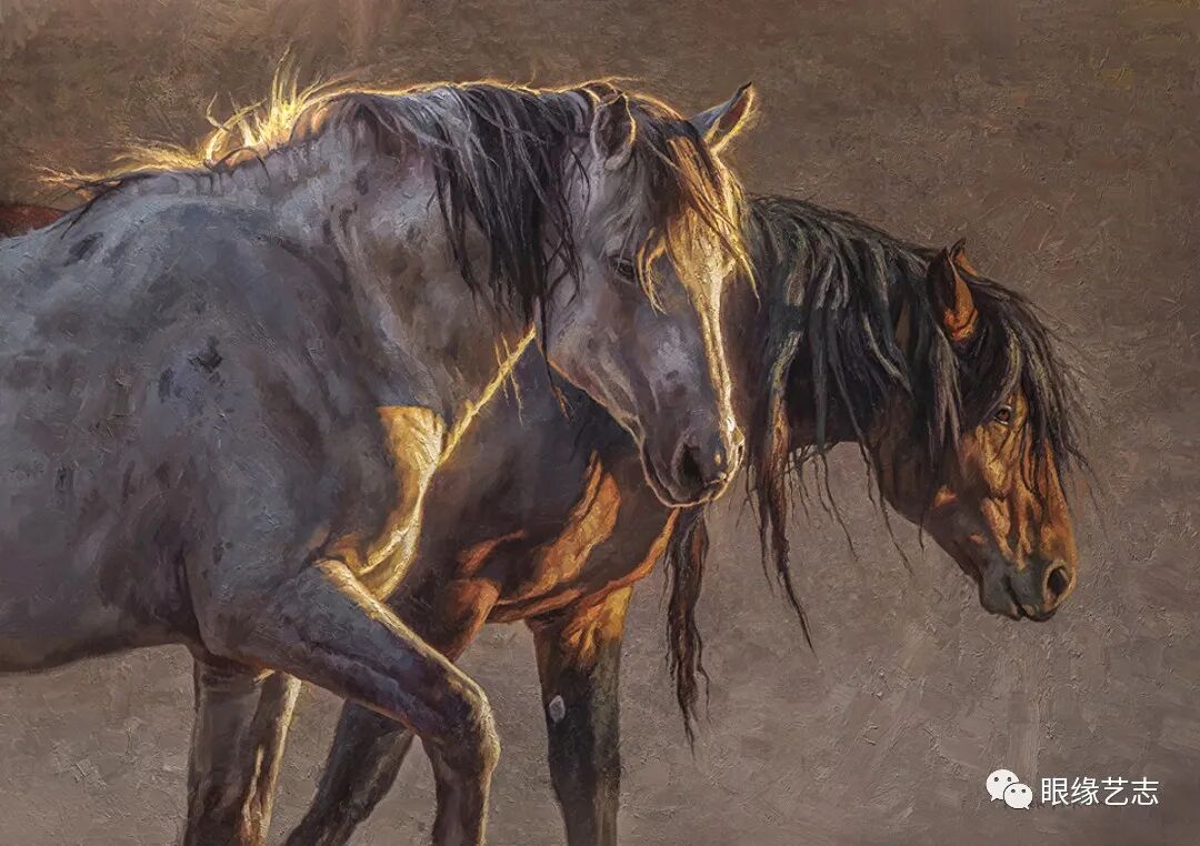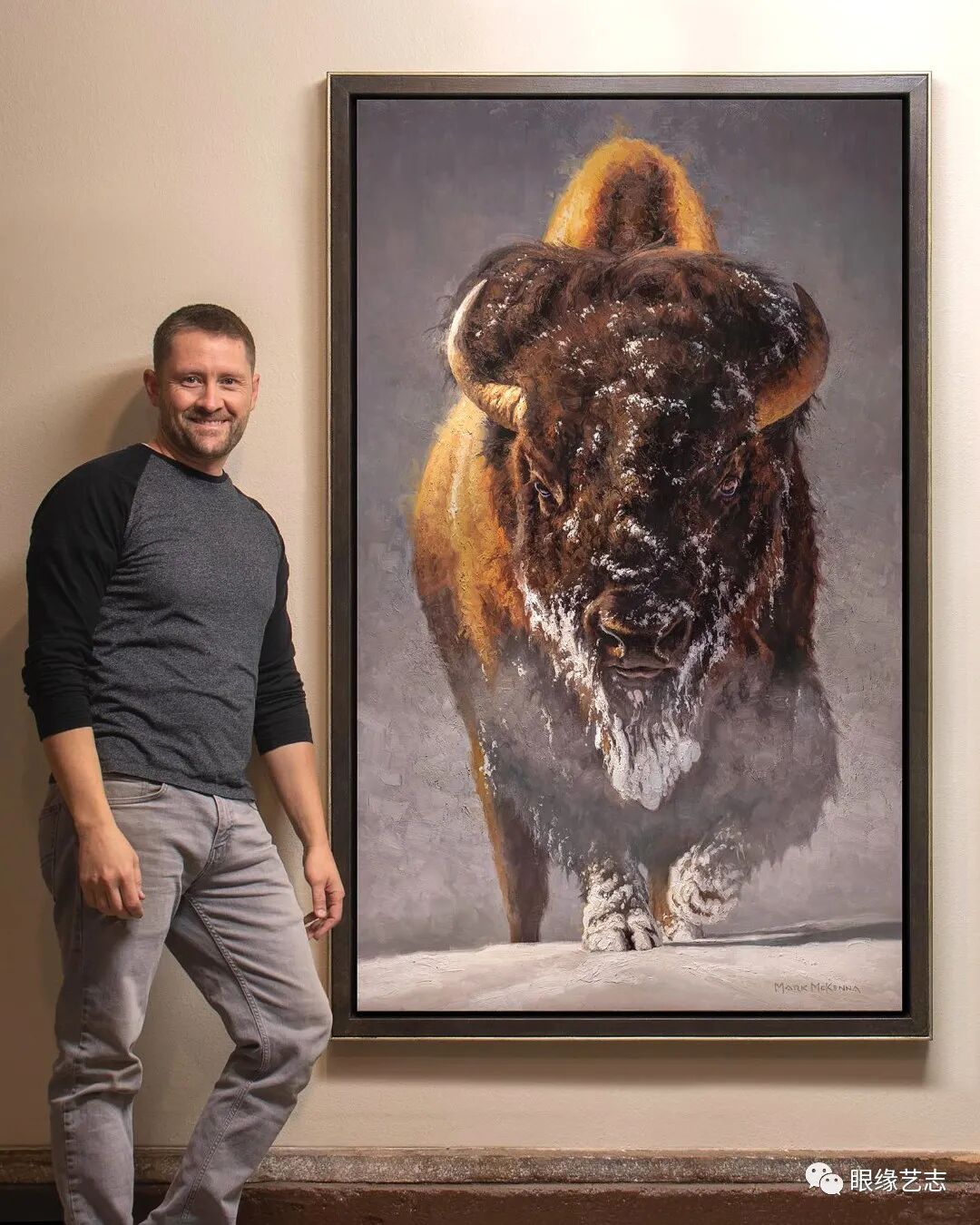 生于西部、长于西部,38岁的马克·麦肯纳几乎没有离开过美国西部这片广袤而狂野的区域。在狩猎、钓鱼、徒步旅行和实地考察中,他走遍了黄石国家公园的每个角落。与狼对视、与马为伴,目睹过天鹅展翅,也沾染过野牛的鼻息,马克·麦肯纳喜欢以一种看得到笔触、纹理以及颜料涂抹方向的方式进行绘画,他相信所有的美都与自然有关,都需要亲自去发现、去表达。