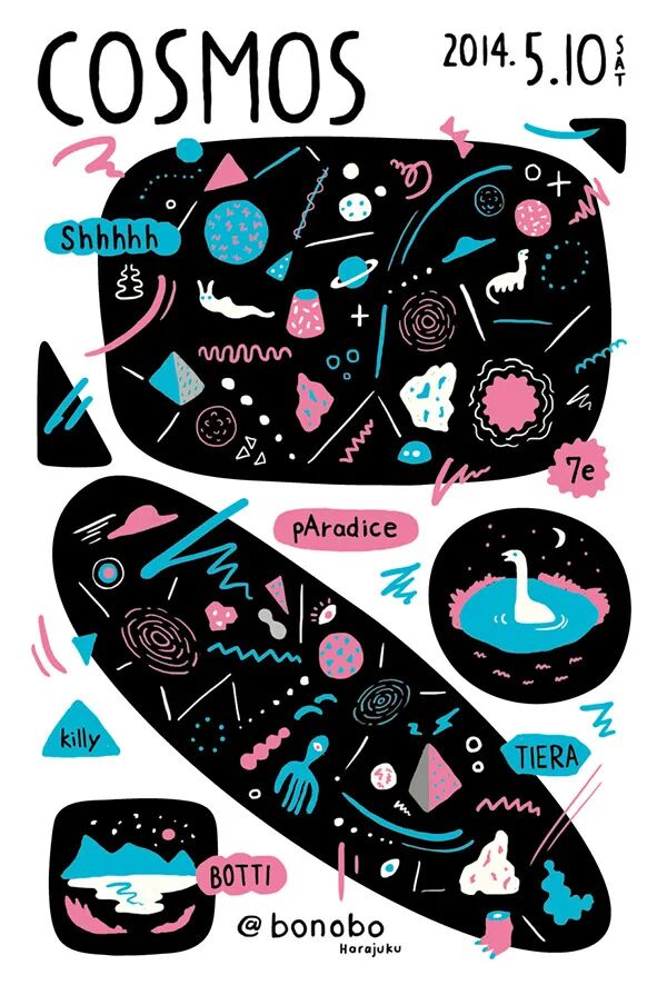 渡边明日香的作品有相当一部分是为各种音乐活动创作的,她从小就喜欢音乐,也曾组建过乐队,这种发自内心的喜欢和对创作过程的享受,是她创作音乐视觉设计源源不断的动力。