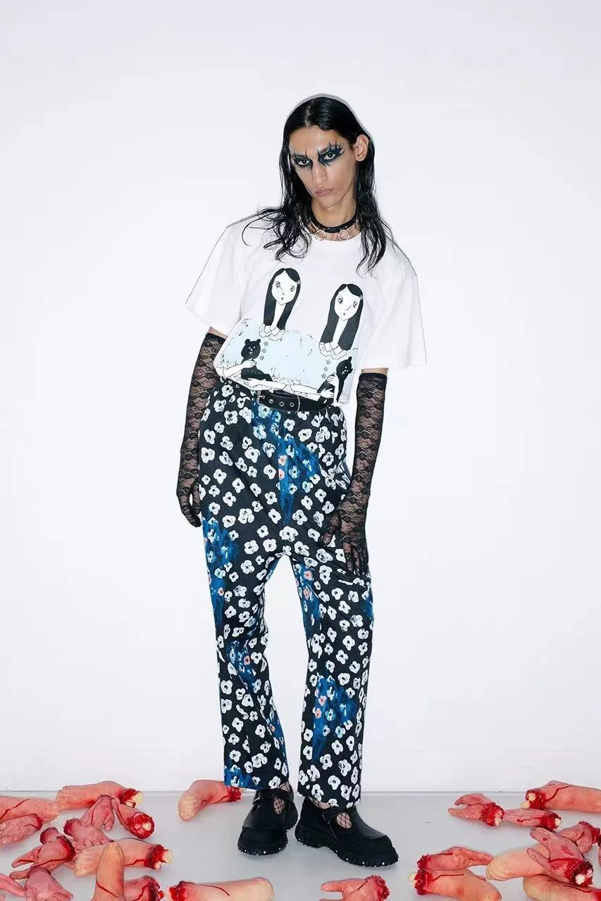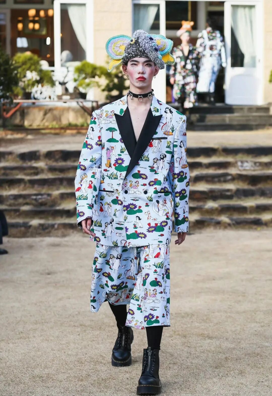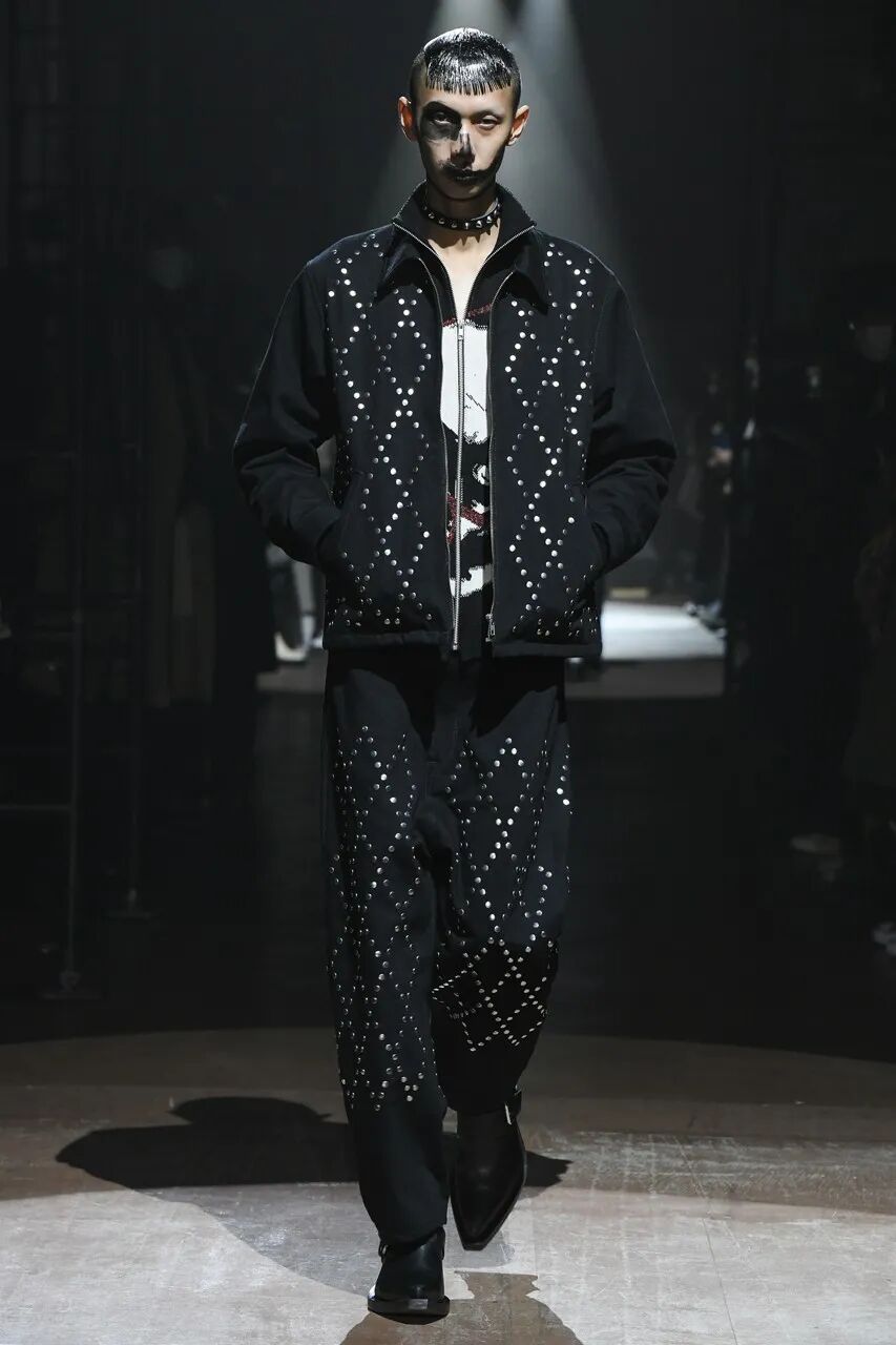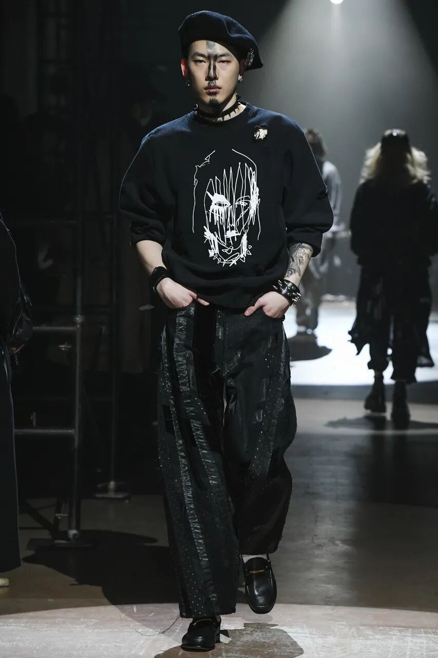 末安弘明深受 Dead Kennedys 乐团等硬核朋克文化影响,将亚文化特征和日式设计相融合,打造出独具反叛精神与冲突美学的成衣系列。