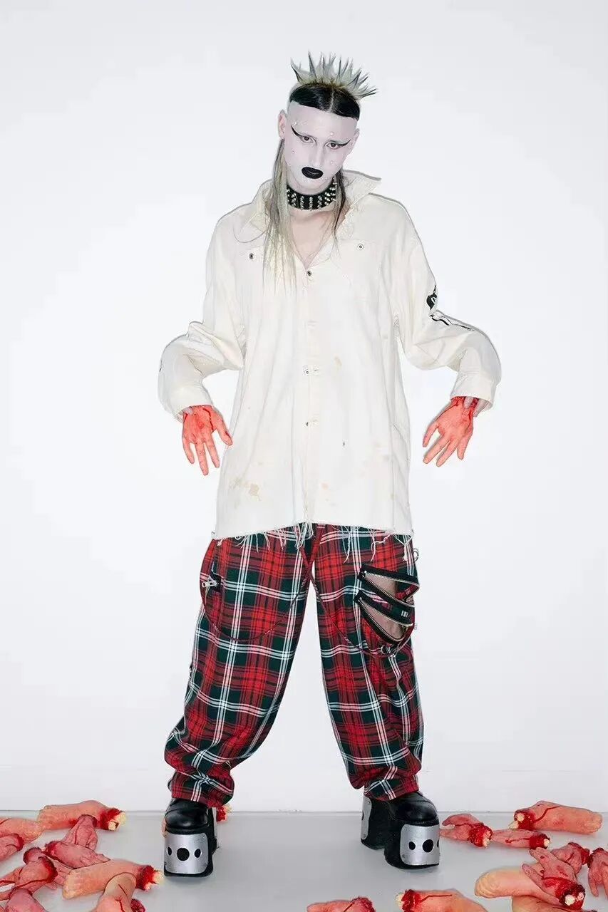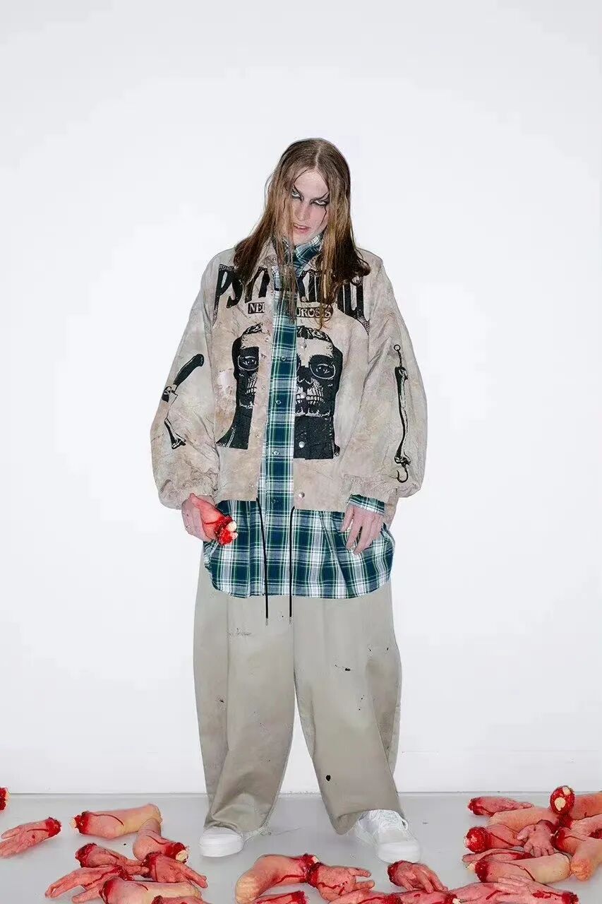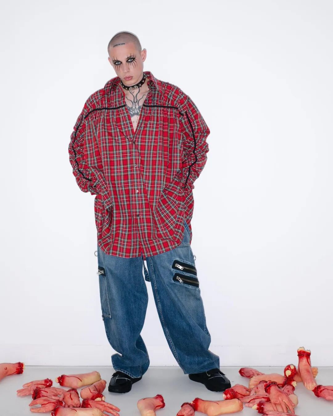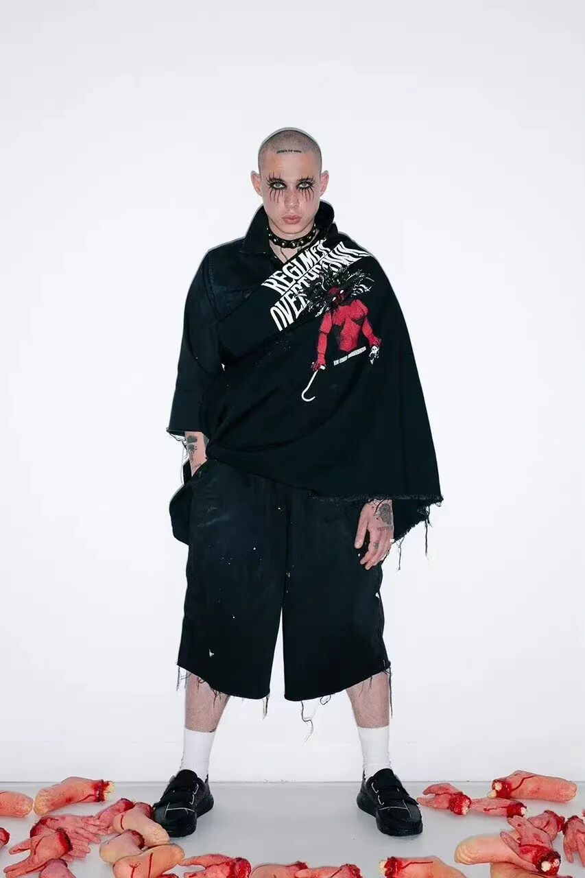 末安弘明深受 Dead Kennedys 乐团等硬核朋克文化影响,将亚文化特征和日式设计相融合,打造出独具反叛精神与冲突美学的成衣系列。