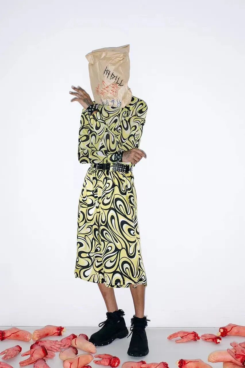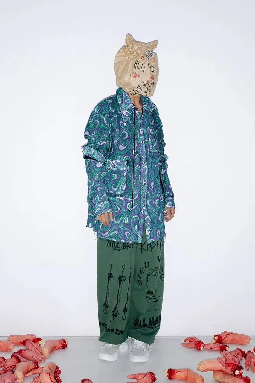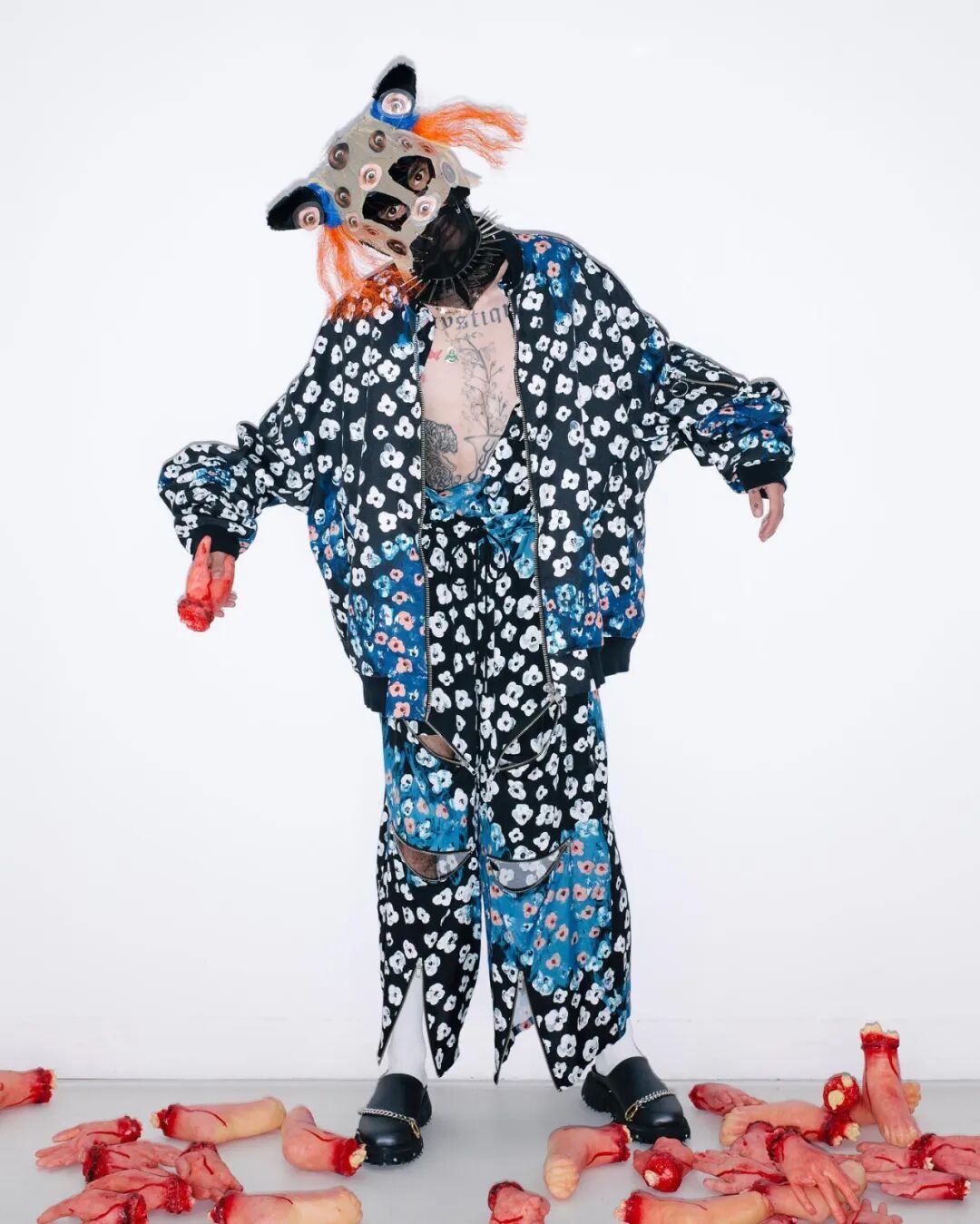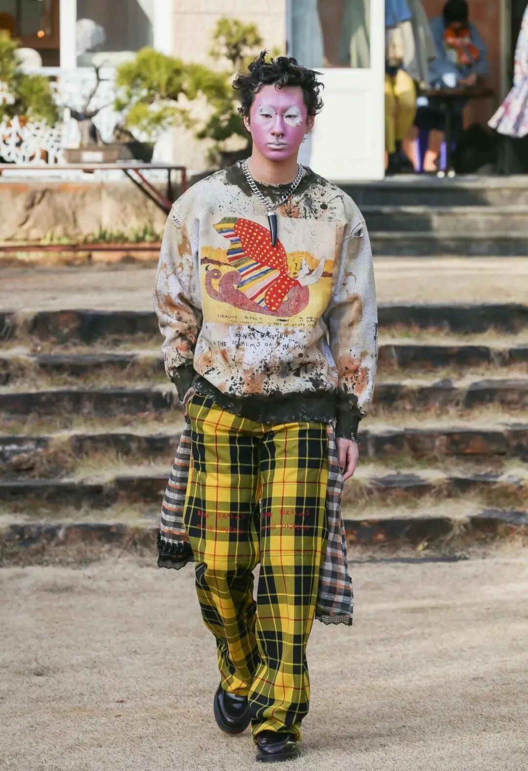 KIDILL 2023 春夏系列,特定处理反映在面料的选择上,直接表现在染色的制作上,遵循品牌一贯强烈庞克精神外,末安弘明更为本季加入一种独特迷幻情绪。