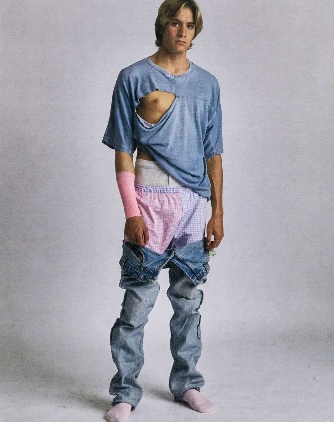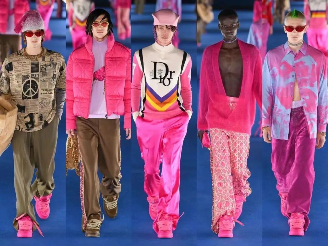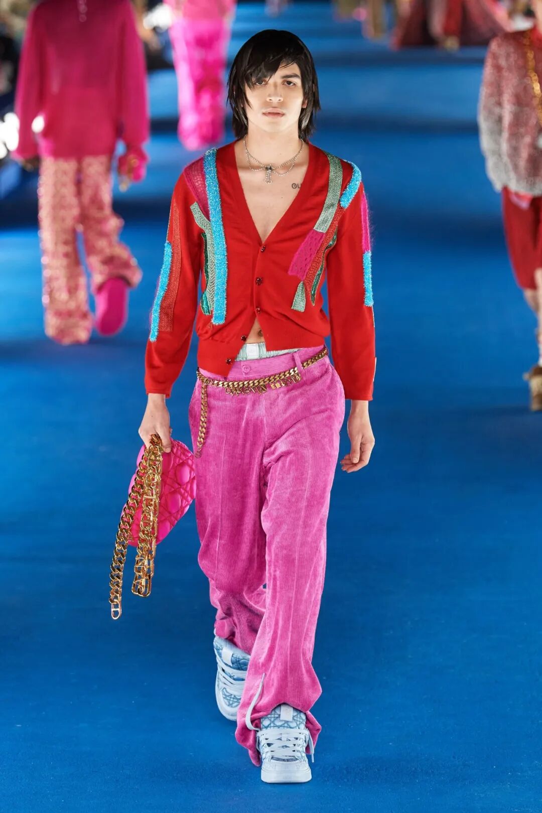 配件上也大玩无性别创意,Saddle马鞍包缩小到如颈链般系在脖子上,女装系列的经典网纱帽,以及粉色调的使用让这个男装系列更加丰富多元,毋庸置疑,ERL 将 Dior 提升到了一个全新的水平,连配饰都”玩“出了新高度。