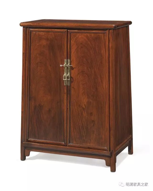 投资与收藏现代硬木家具或其他珍稀木材所新制的家具,除了了解与掌握其造型规律之外,型也是通过具体的尺寸来得以完全表现的。“远可看型”,即站在适当的距离可以观察到器型的好与坏。器型美与人体美有相似之处,人的脸型如果方圆适当,则五官位置、大小也要均匀合理,否则是很难看的。在一定的距离内,看人的美丑除了脸蛋以外,关键是人各个部位的比例,上身长、下身短或下身长、上身短,手长腿短,均谓“比例失调”。只有“五官匀称,身材比例协调”才能吸引人的眼球。一件好的器物也是如此。“黄金分割定律”在明清家具的设计中也得到体现,如四件柜、圆角柜等家具的铜饰件也如此。铜合页、钮头或吊牌的大小与位置如适当,则可起到画龙点睛的作用。对于造型好的家具,铜饰件也是一个不可缺失的锦上添花之作。