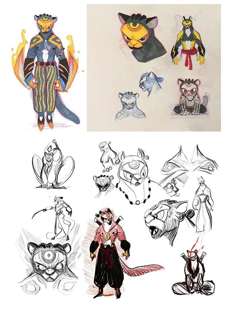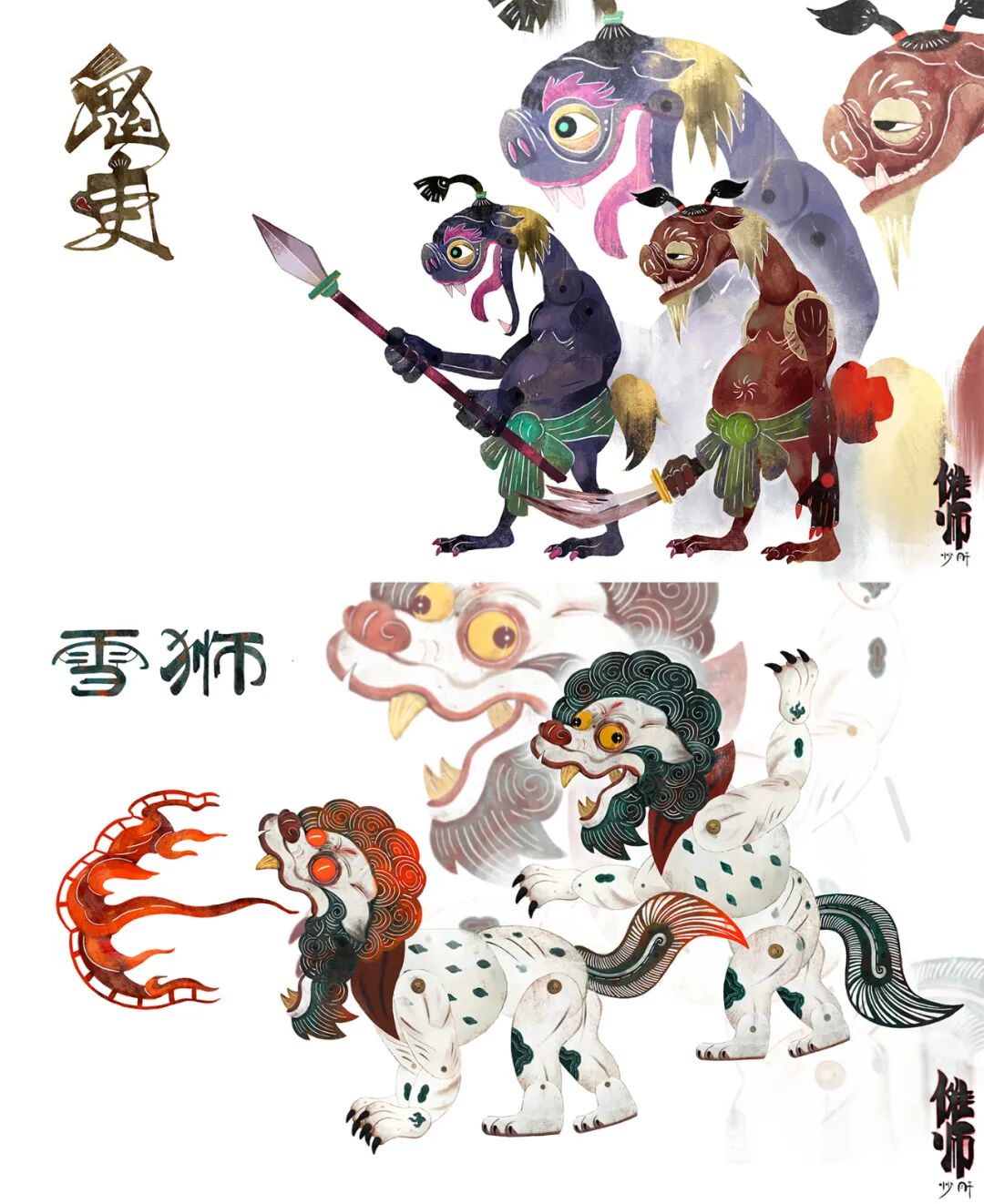 炒肝:我最近都在琢磨皮影、年画等等传统民间文化,并尝试着用这些文化作为美术表现形式,融入到游戏与动画开发当中。我本科毕业于中国传媒大学动画专业,后面到法国高布兰图像学院读研,读角色动画与动画导演。以前有为《罗小黑战记》TV剧和大电影设计角色,后面到Sony Picture南非工作室担任动画视觉开发艺术家,现在在网易游戏做一名角色原画。