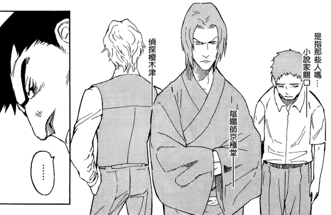 一旁的关口和鸟口也都看着榎木津有点无语,这货难道就没点身为侦探的职业道德吗?榎木津恬不知耻地回了一句,完全木有哦。