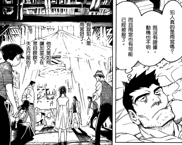 木场赶紧让他闭嘴,他在心里吐槽福本,这点还用你说,犯人明知加菜子受了重伤还要去绑架,这说明犯人的目标根本就不是绑架而是杀人啊。可木场怕这话说出来会让阳子伤心,所以就憋在心里。