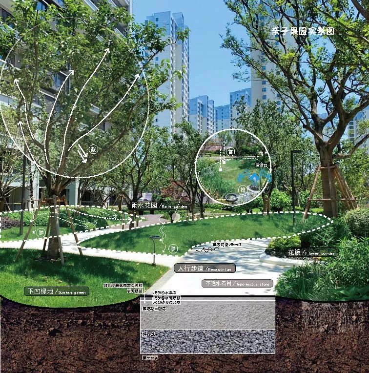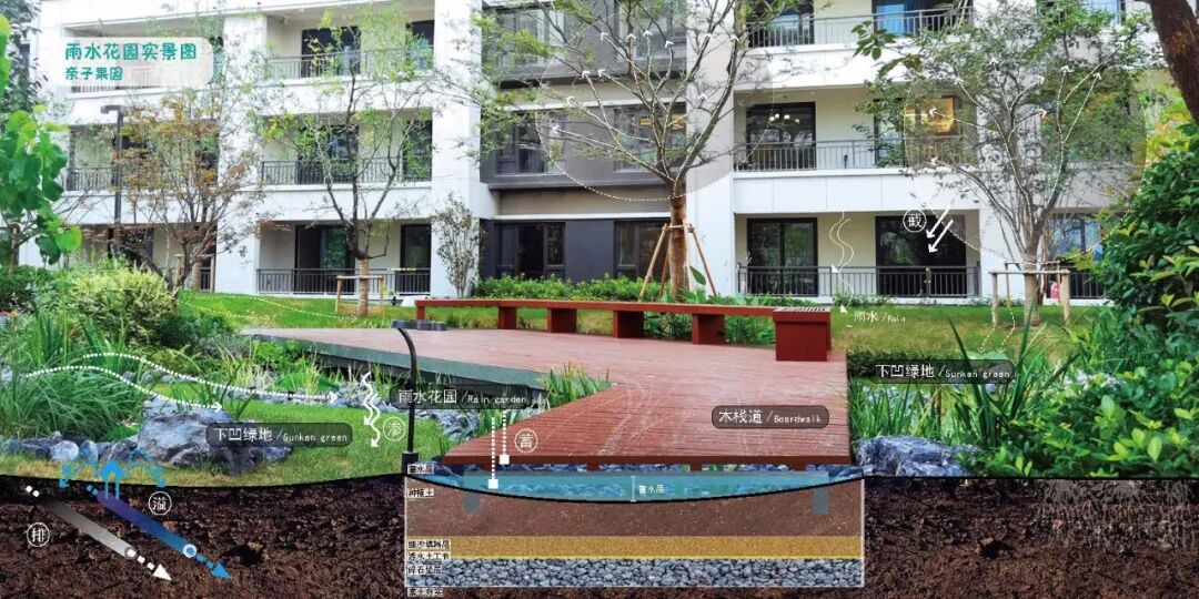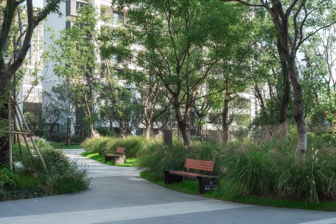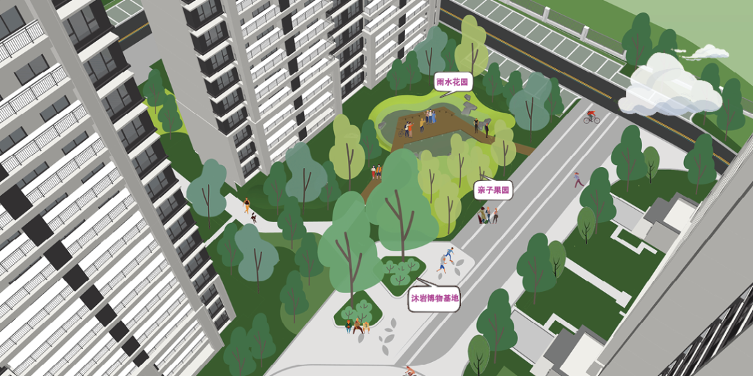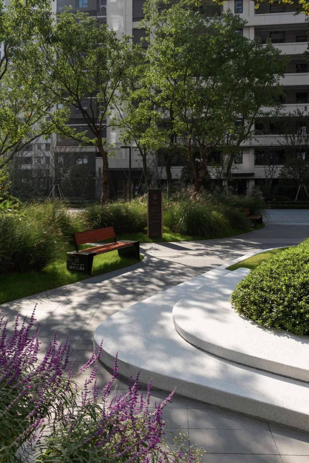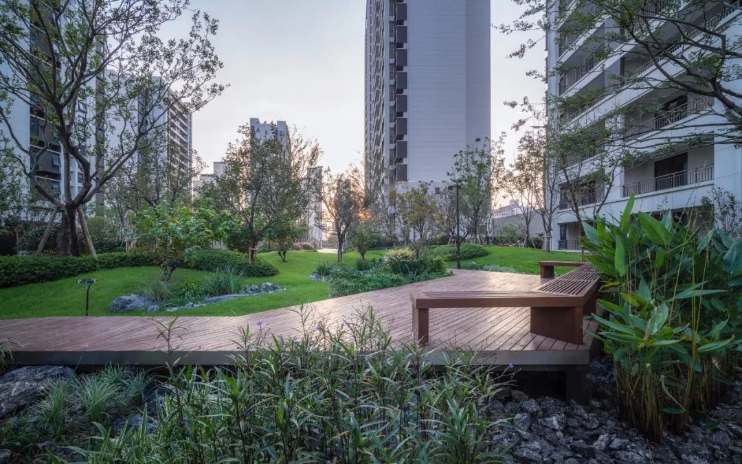 在设计九维空间场景的同时,我们还特别在生态景观的落位上融入了雨水花园、海绵城市的理念,雨水花园、景观石、宅间道路与绿地的多维景观组合,增加景观丰富性的同时,营造移步异景的空间,实现人与空间的链接,以自然花境抚慰人心。