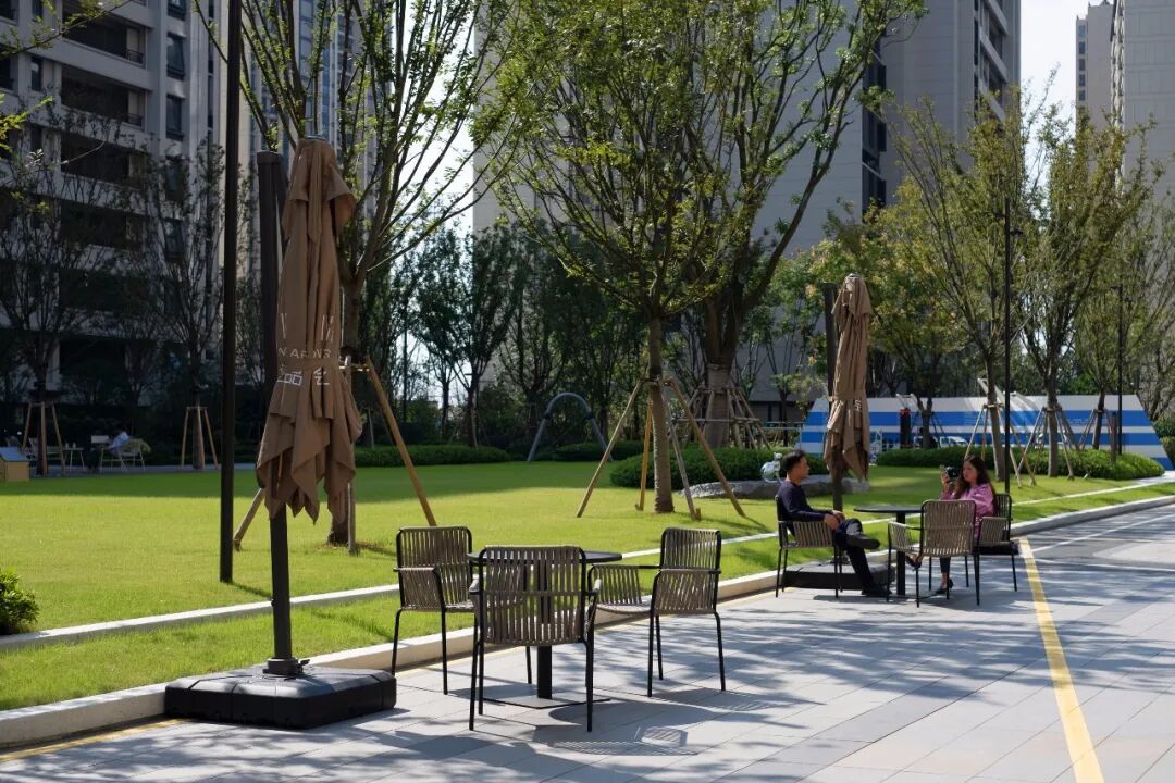 在近1100平米的鲜氧草坪上, 我们搭建了「芳草地生活馆」,为生活方式打开了更多可能性。在这个多空间多功能全龄复合的会客空间,可以满足居民休憩交友、邻里交流、节日活动等社交休闲需求,实现归家的放松与舒适。